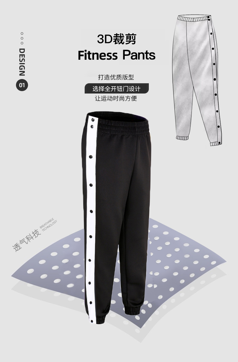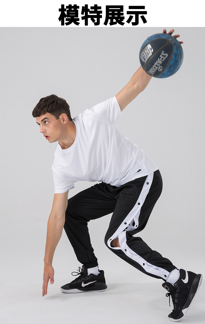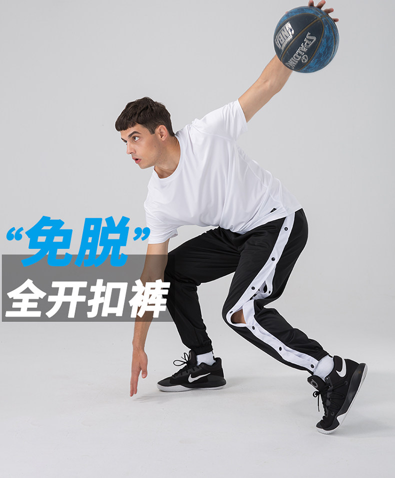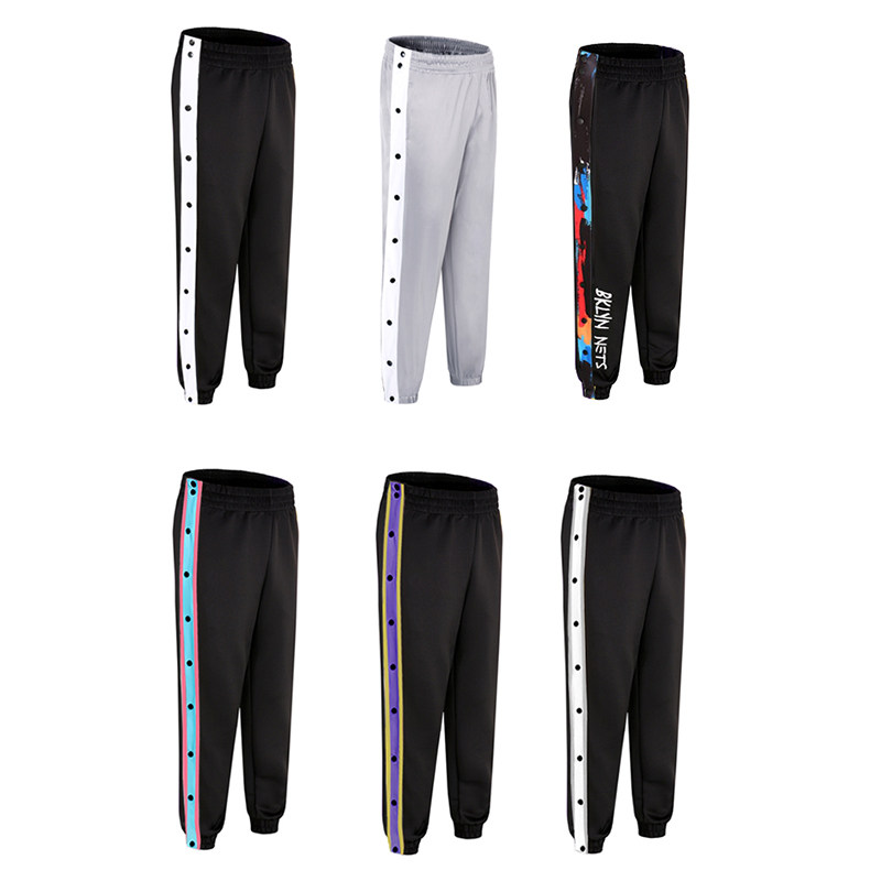 American-Style Basketball Side-Button Pants, Fully Unbuttoned for Quick Release, Basketball Court Appearance Sweatpants, Sports Training Long Pants, Men's Loose Fit with Cuffed Ankles