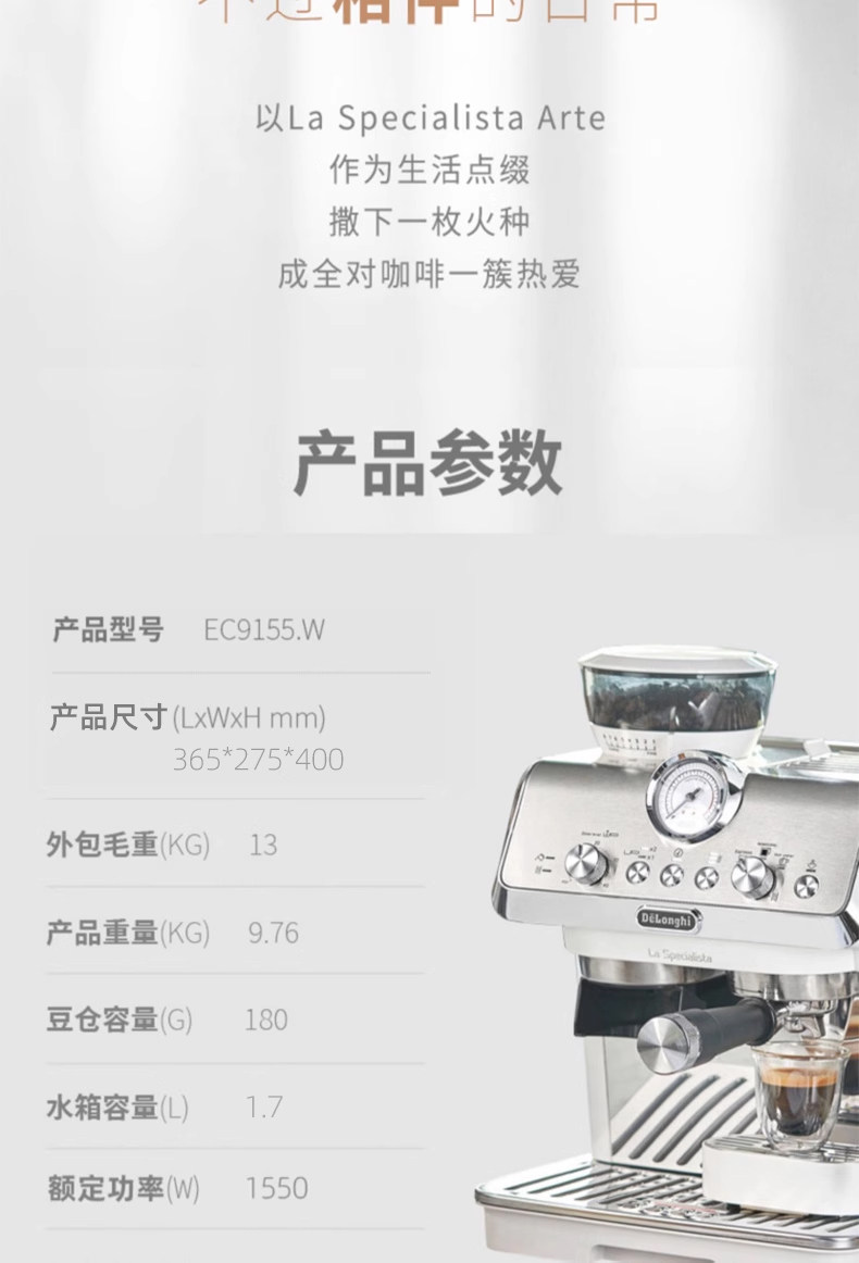 Delonghi/Delonghi Coffee Machine Ec9155.W Semi-Automatic Home Grinding Integrated Machine for Home and Office Gift
