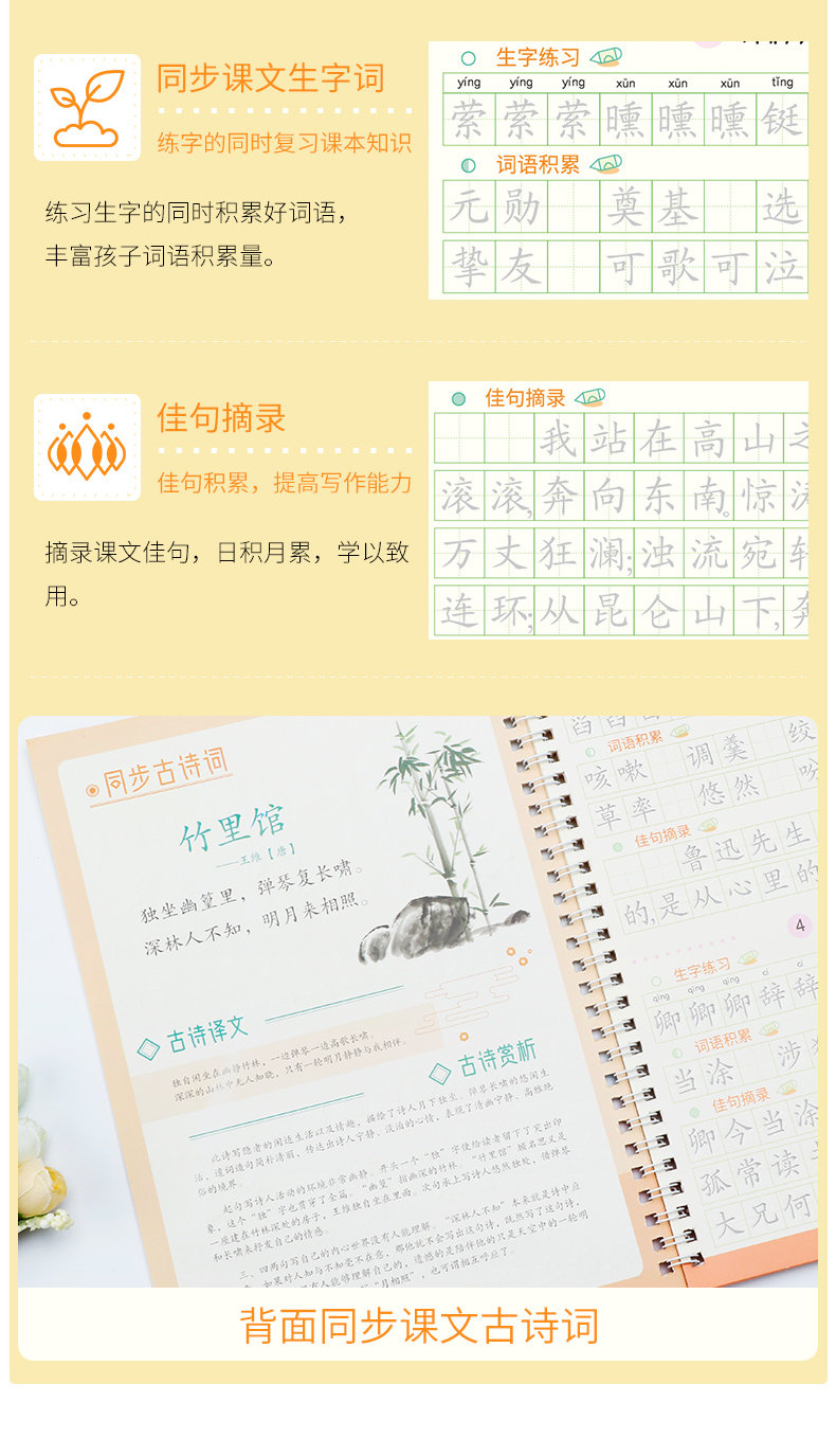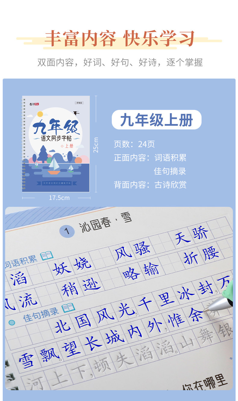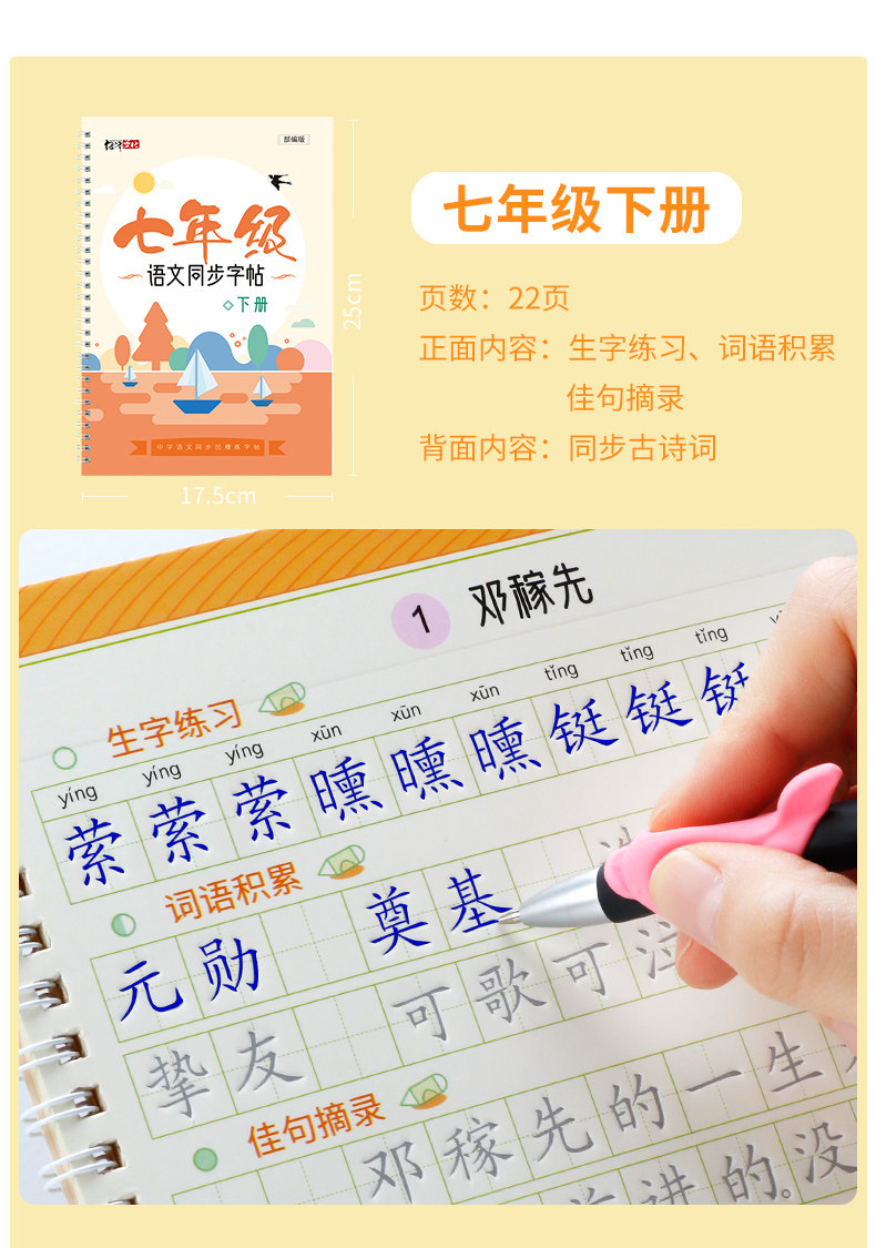 Light Luxury Mo Pin Groove Handwriting Practice Book for Junior High School Grades 7, 8, and 9, First and Second Semester, Synchronized with the People's Education Press Edition of the Chinese Textbook, Reusable Writing Practice Book, a Must-Have for Junior High School Students in Grades 7, 8, and 9