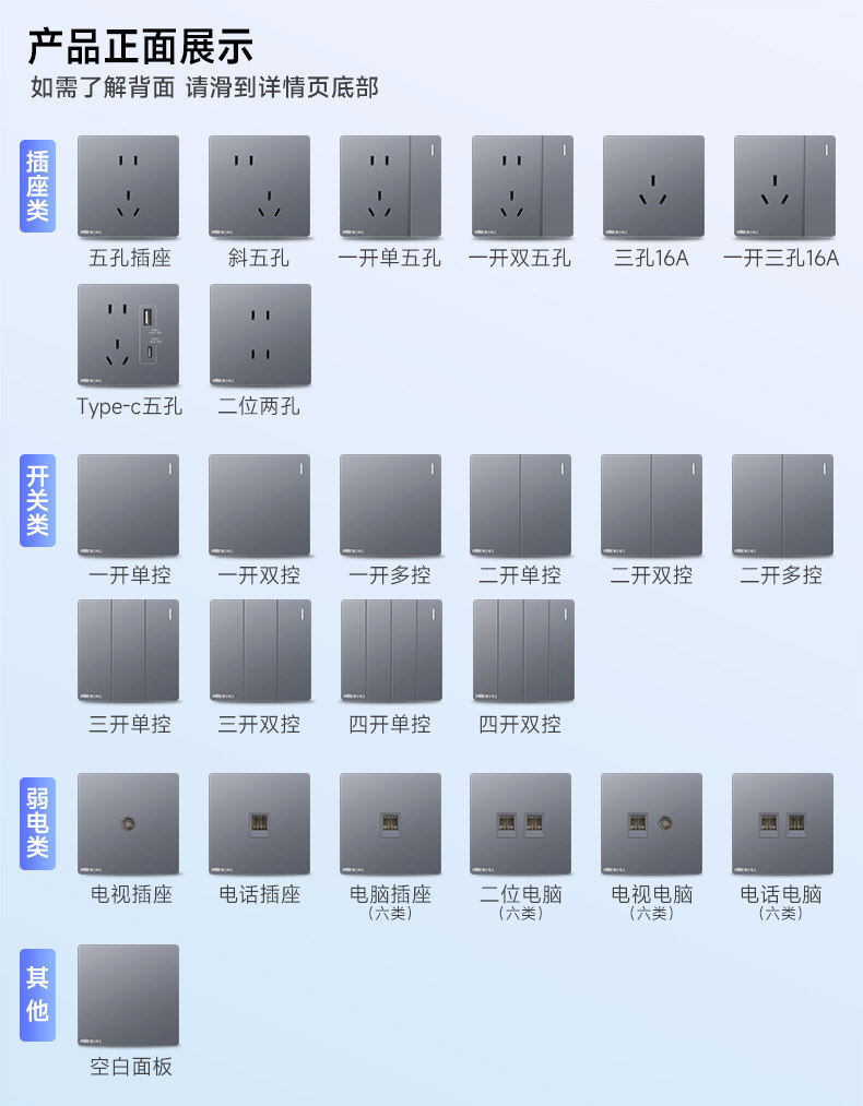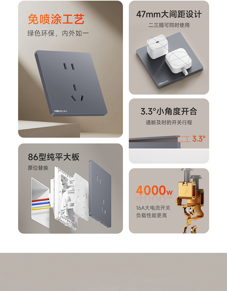 | Color Classification | Hot New Arrival! as Thin as 5mm. Contact Customer Service for Details (Standard Five-Hole Configuration Shipped by Default),⭐Another 15% Off on Top of the National Subsidy! Limited Slots Available, so Act Fast! Contact Customer Service for Details⭐,↓ ⭐ N25 Spray-Free Upgraded Model Berlin Gray ⭐ Ships with Standard Five-Hole Plug by Default,【Spray-Free Upgrade】True 5-Hole Socket - Berlin Grey,【Spray-Free Upgrade】 Angled 5-Hole Socket - Berlin Grey,[Free Spray Upgrade] Four-Hole Socket-Berlin Gray,[Free Spray Upgrade] One Open Single Control Five Holes-Berlin Gray,【Spray-Free Upgrade】One-Gang Double Five-Hole - Berlin Grey,[Free Spray Upgrade] 16A Three-Hole Socket-Berlin Gray,[Free Spray Upgrade] One Open Single Control Three Holes-Berlin Gray,[Free Spray Upgrade] Usb+Type-C Five-Hole Socket (35W)-Berlin Gray,[Free Spray Upgrade] Blank Panel-Berlin Gray,【Spray-Free Upgrade】Single Pole Single Throw - Berlin Grey,【Spray-Free Upgrade】Dual Control with One Switch - Berlin Grey,[Free Spray Upgrade] Two-Open Single Control-Berlin Gray,[Free Spray Upgrade] Two-Open Dual Control-Berlin Gray,[Free Spray Upgrade] Three-Open Single Control-Berlin Gray,【Spray-Free Upgrade】Three-Gang Dual Control - Berlin Grey,[Free Spray Upgrade] Four-Open Single Control-Berlin Gray,[Free Spray Upgrade] Four-Open Dual Control-Berlin Gray,【Spray-Free Upgrade】Multi-Control in One - Berlin Grey,【Spray-Free Upgrade】Dual Gang Multi-Control - Berlin Grey,[Free Spray Upgrade] Tv Socket-Berlin Gray,【Spray-Free Upgrade】Cat6 Ethernet Socket - Berlin Grey,【Spray-Free Upgrade】Dual Computer Outlets (Category 6) - Berlin Grey,【Spray-Free Upgrade】Tv & Computer Outlet (Category 6) - Berlin Grey,Six-Hole Socket (Not N25 Series),16A Five-Hole Socket (Non-N25 Series),Ten-Hole Socket,Fifteen Hole Socket,Twenty-Hole Socket,One Open Single Control Fifteen Holes,Gray Sensor-Activated Floor Lamp Socket,Call Switch,Snap-On Five-Hole 10A (Grey) | Suitable for Refrigerators, Washing Machines, Etc,Concealed Socket, Three-Prong, 16A (Specifically for Air Conditioners and Water Heaters),Leakage Protection Socket 10A,Leakage Protection Switch 32A (Specifically for Air Conditioners and Water Heaters),Leakage Protection Switch 40A (Specifically for Air Conditioners and Water Heaters),Four-Position Bathroom Heater Switch [Single Motor],Five-Position Bathroom Heater Switch [Dual Motor],Ip24 Waterproof Box (Transparent Gray),Ip24 Large Waterproof Box (Transparent Gray),Ip55 Waterproof Box (Transparent Gray),Panel with Threading Holes (Non-N25 Series Hole Blocking and Ugliness Covering Artifact),One-Touch Smart Main Switch,Two-Way Smart Main Switch,Three-Way Smart Main Switch,Smart Switch, Stick It Anywhere,↓----------N25 Flat Large Panel Matte Gray----------Ships with Standard Five-Hole Plug by Default,1,2,3,4,6,7,5,8,9,10,11,12,13,14,15,16,17,18,19,20,21,22,23,24,25,26,27,28,29,30,1.,2.,3.,4.,5.,6.,7. |