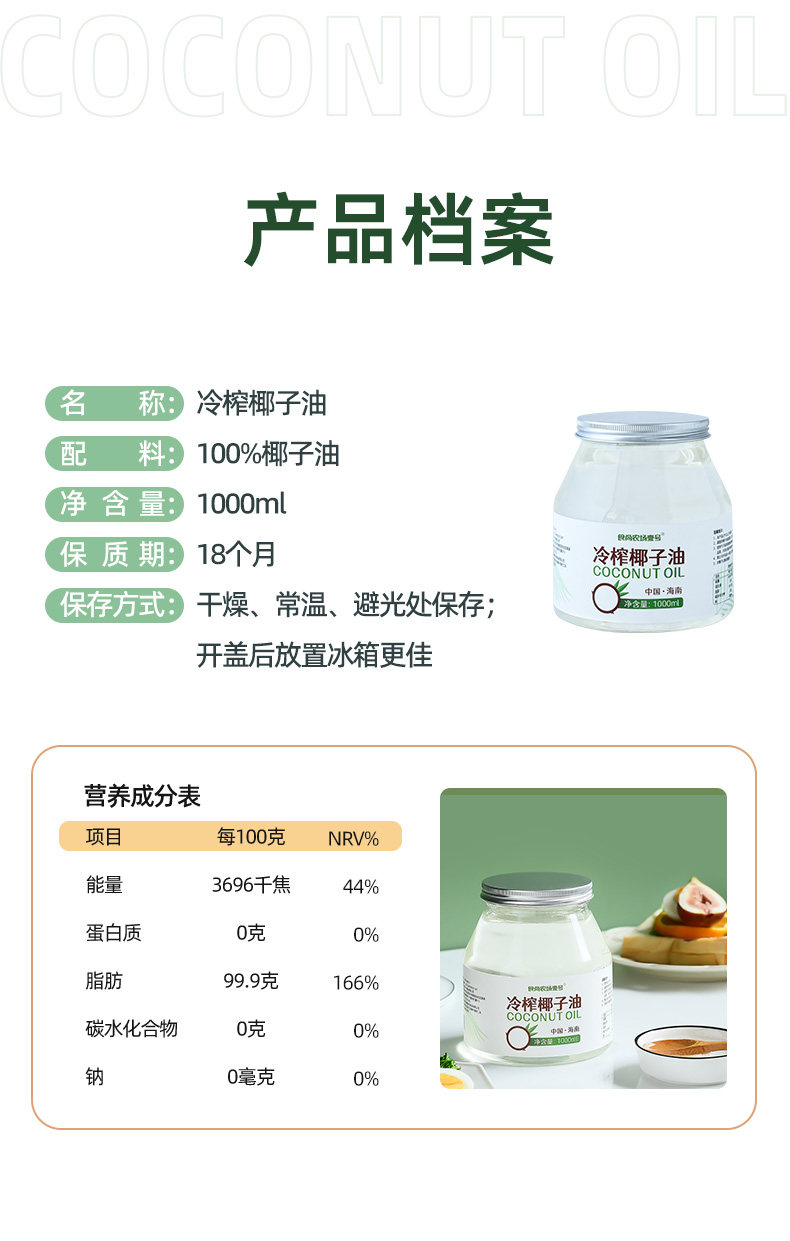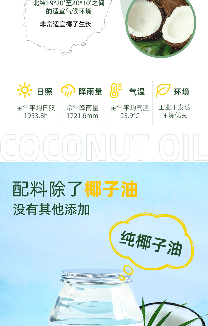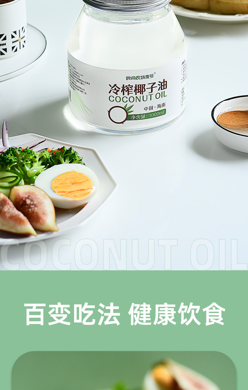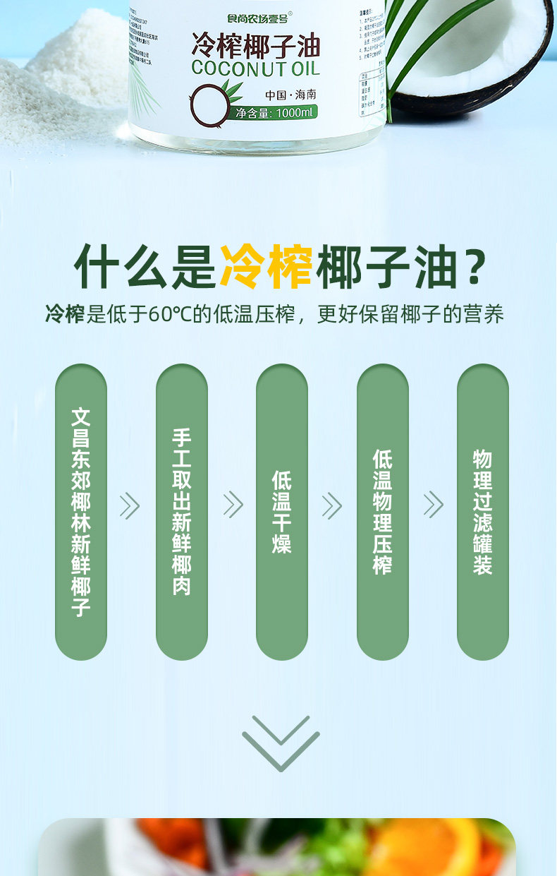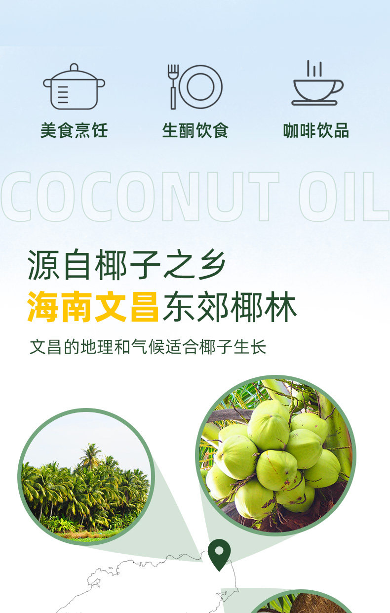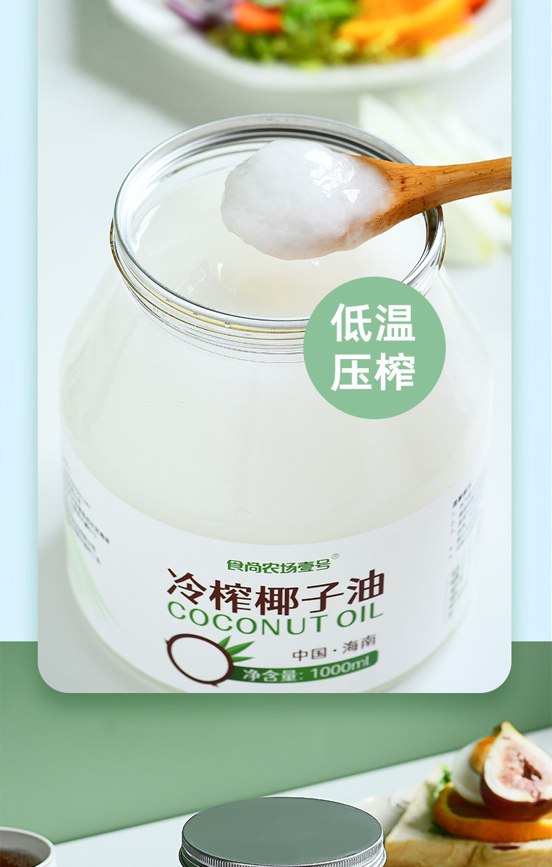 Coconut Oil Edible Oil 1000ml Hainan Fresh Cold-Pressed Virgin Organic Natural Hair Care Skin Care Makeup Remover Pure Mct Ketogenic