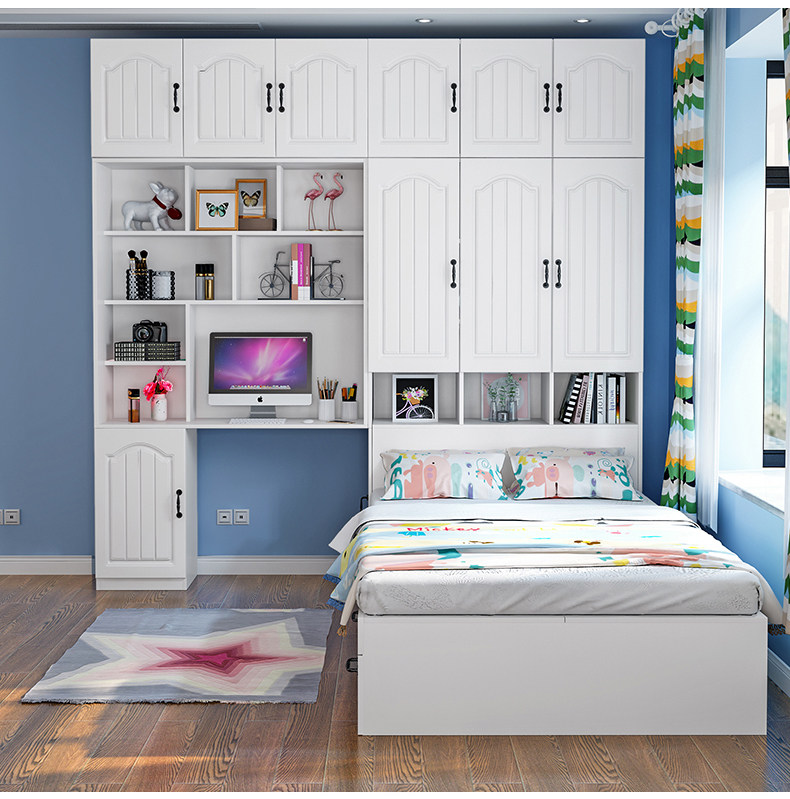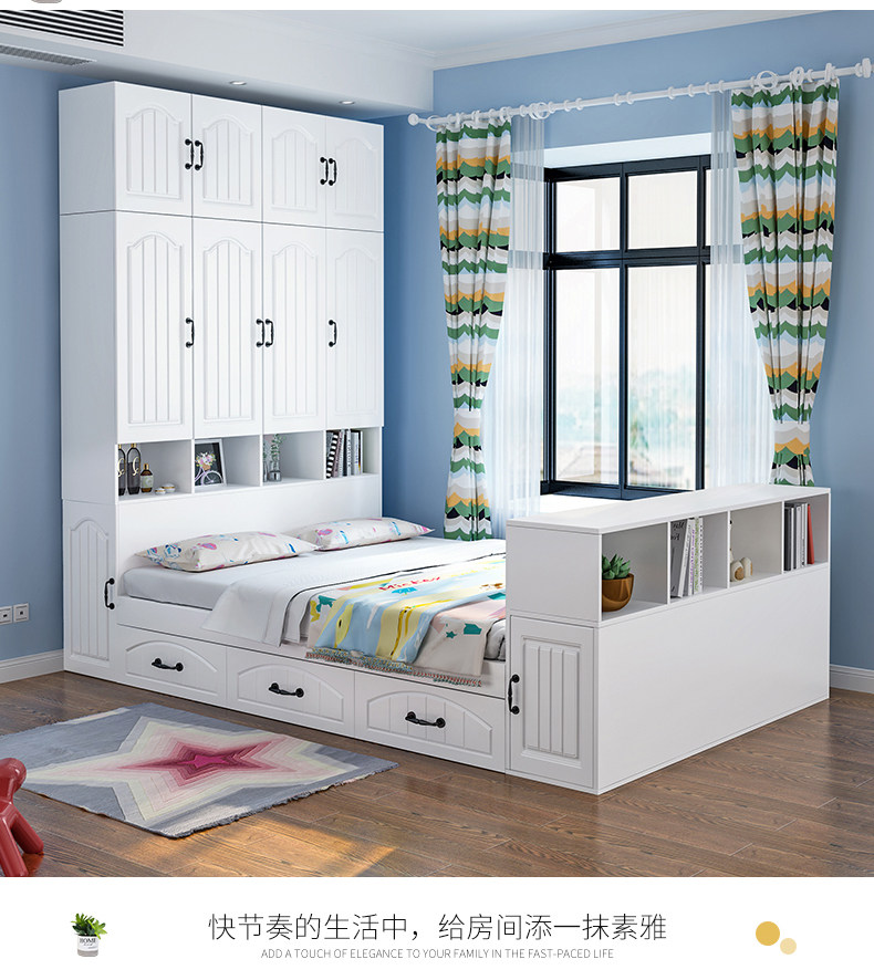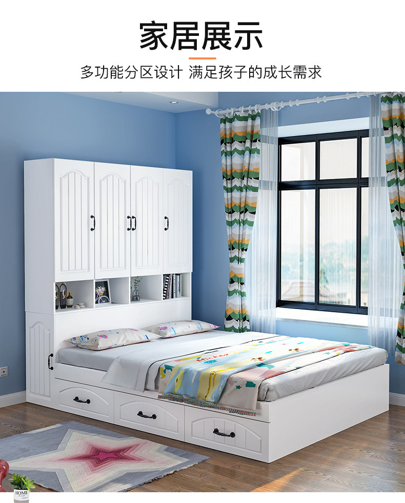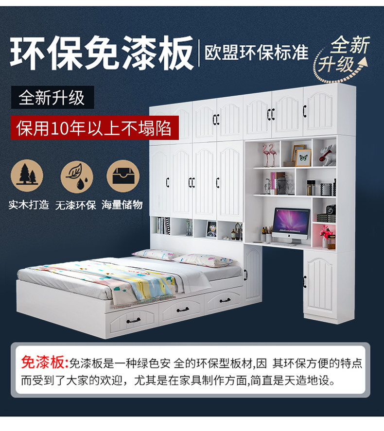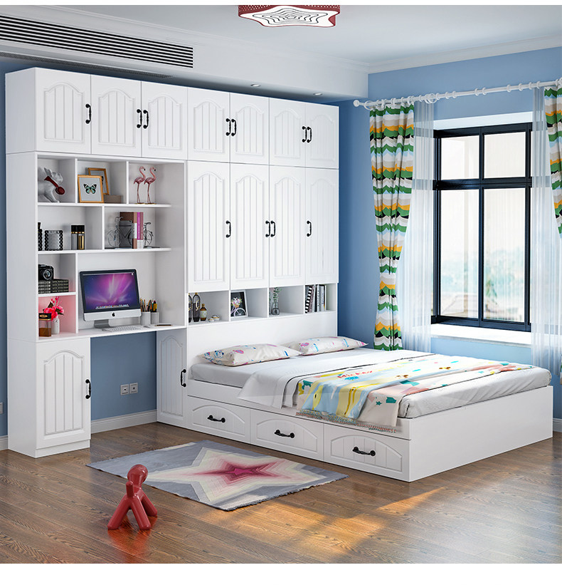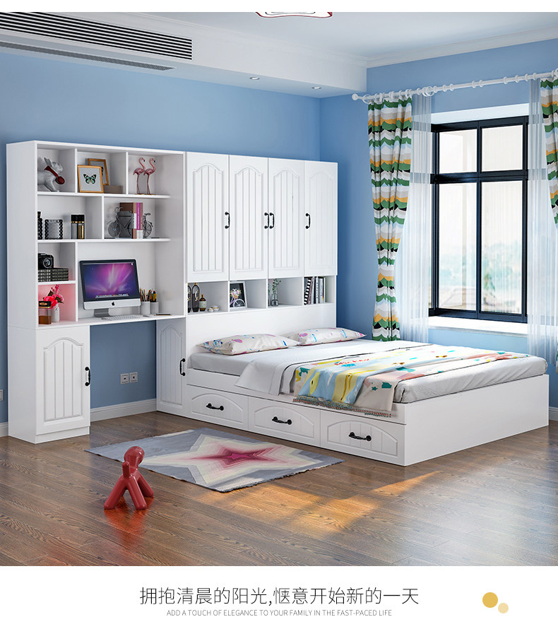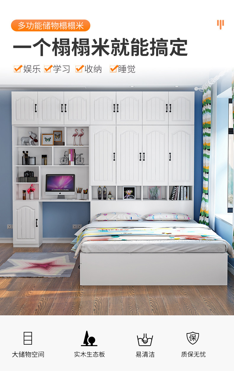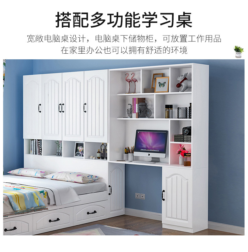 Wardrobe and Bed Integrated Multifunctional Children's Bed Desk Bookshelf Combination Small Apartment Bedroom Solid Wood Tatami Storage Bed