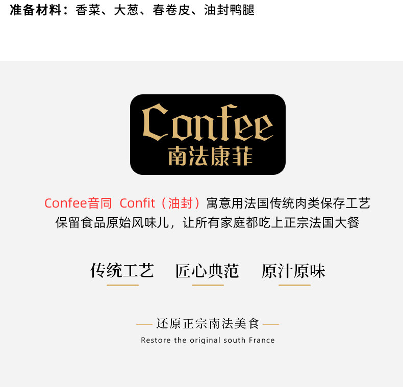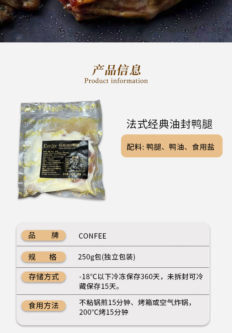 Confee French Classic Oil-Sealed Duck Leg with Thyme 250g Single French Roast Duck Leg Quick Meal Ready-To-Eat French Cuisine