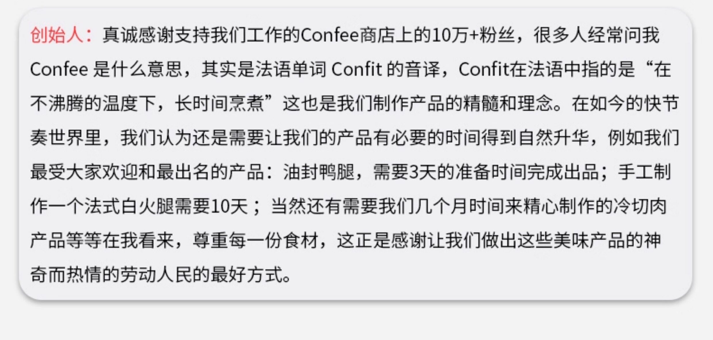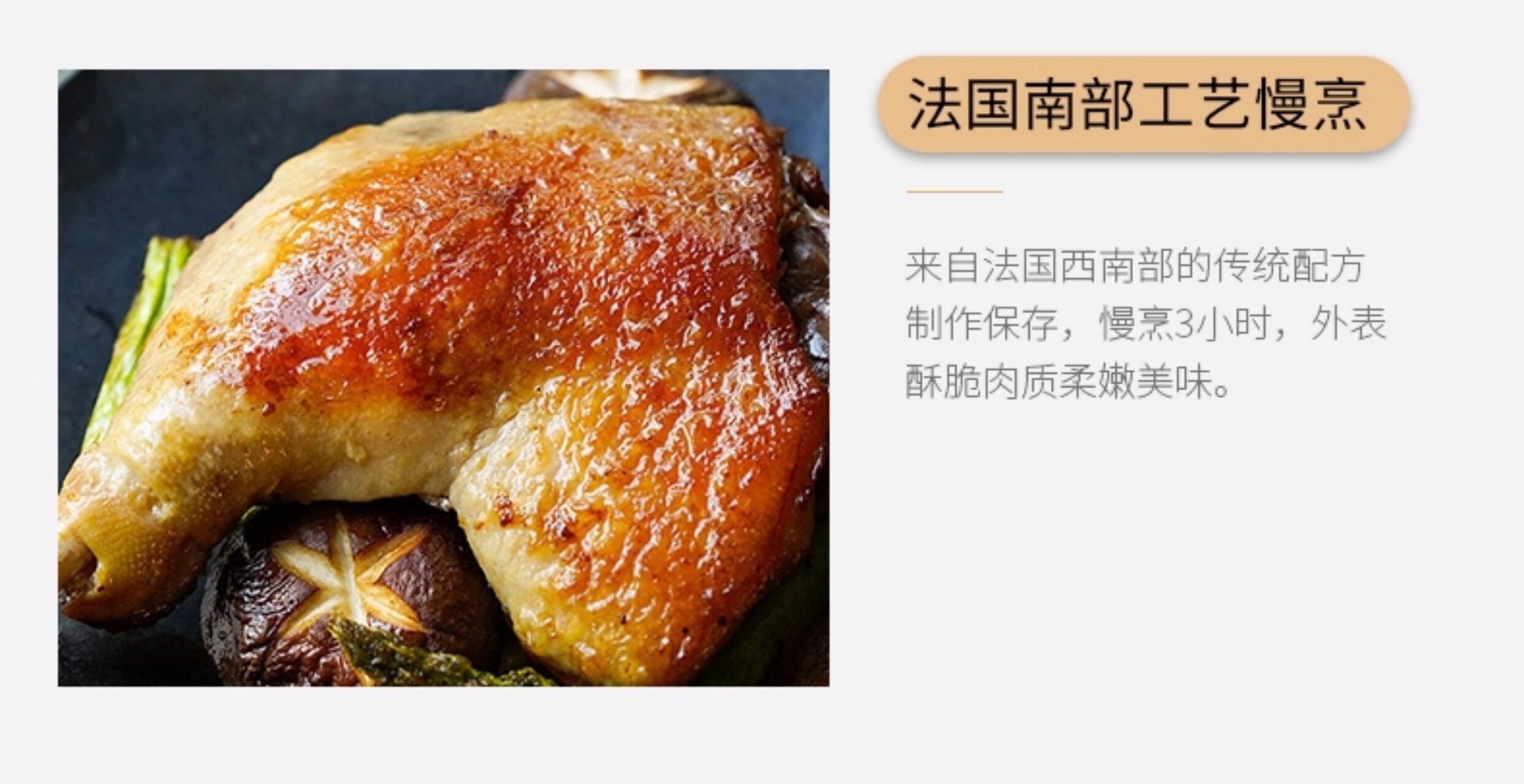 | Taste | Classic Oil-Sealed Duck Legs 250g,Thyme Oil-Sealed Duck Legs 250g,Classic Oil-Sealed Duck Legs 250g*2,Classic Oil-Sealed Duck Legs 250g*3,Classic Oil-Sealed Duck Legs 250g*4,Thyme Oil-Sealed Duck Legs 250g*2,Thyme Oil-Sealed Duck Legs 250g*3,Thyme Oil-Sealed Duck Legs 250g*4,Classic Oil-Sealed Duck Legs 250G*2+Thyme Oil-Sealed Duck Legs 250g,Classic Oil-Sealed Duck Legs 250G*2+Thyme Oil-Sealed Duck Legs 250g*2 |