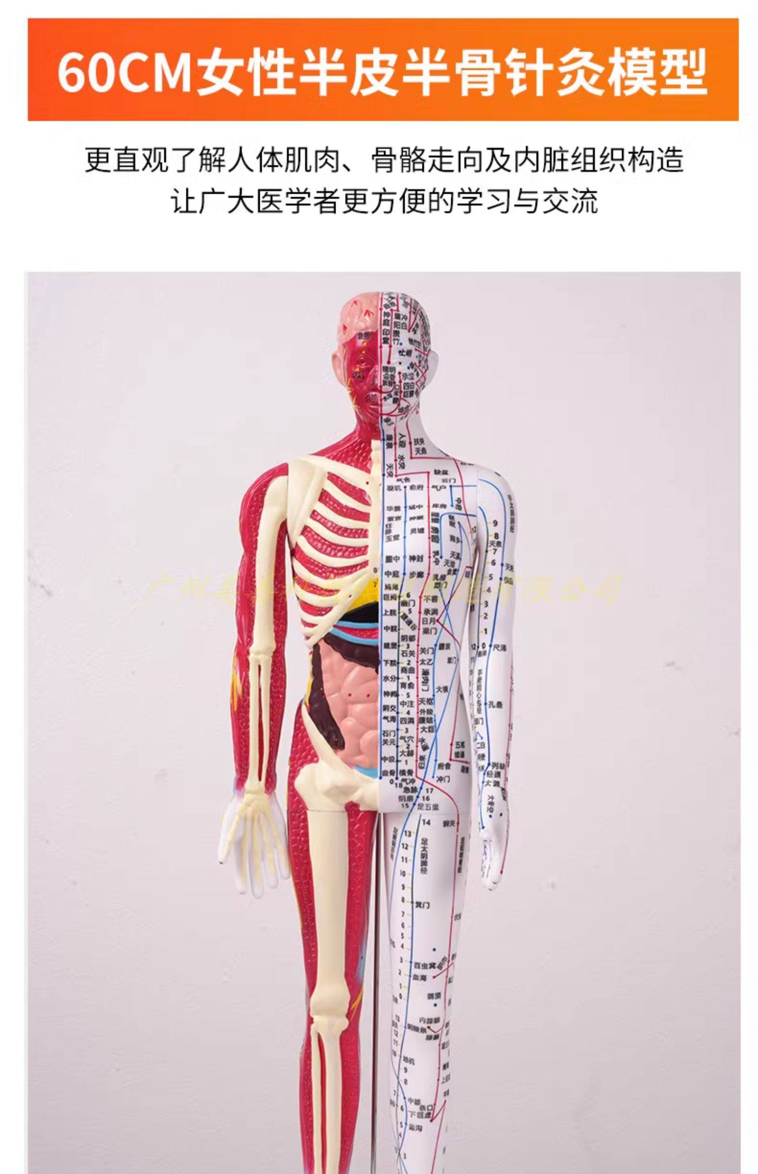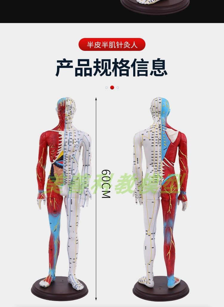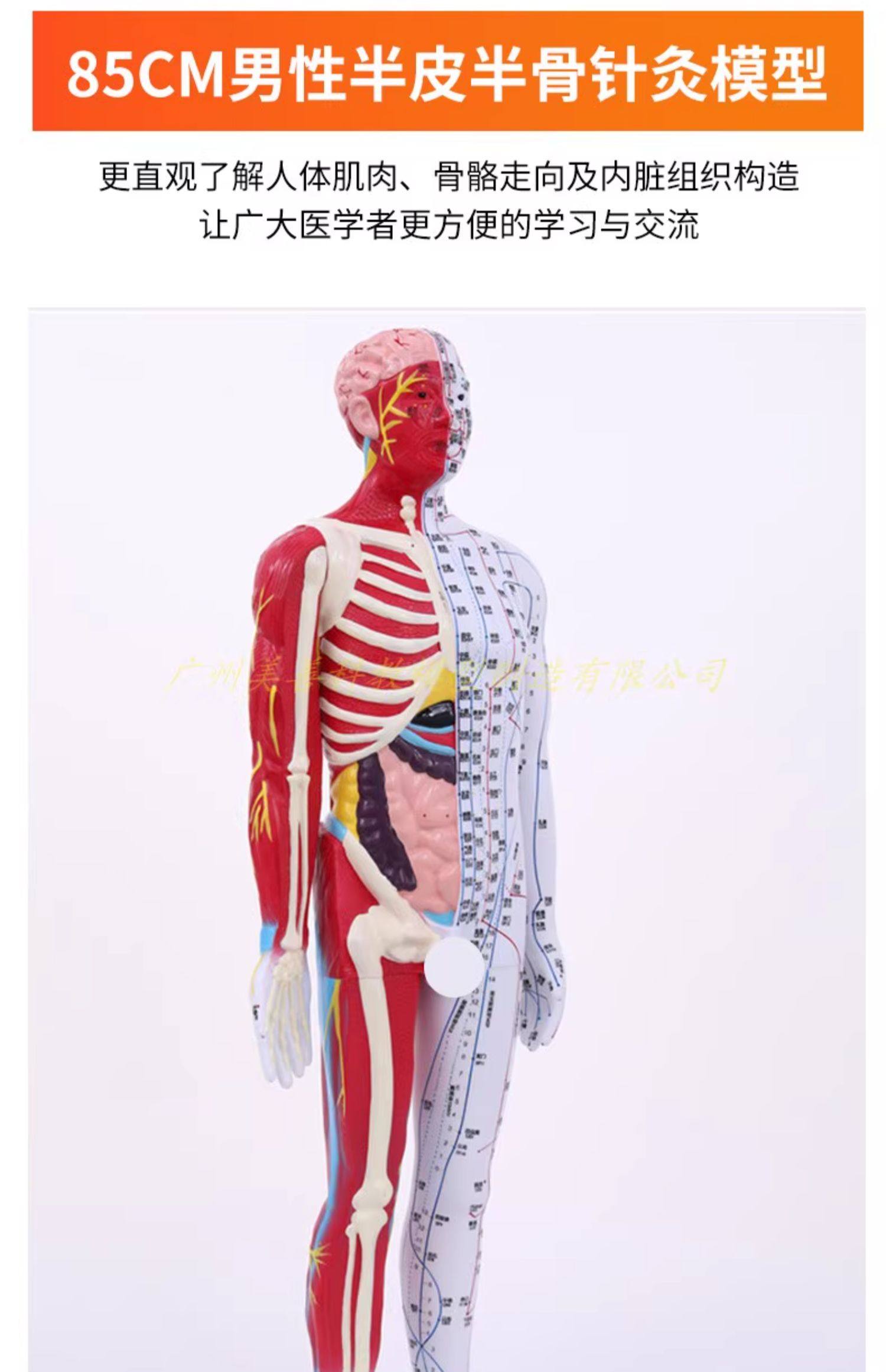 60-85cm Human Acupuncture Model Half-Skin Half-Muscle Skeletal Internal Organs Anatomy Traditional Chinese Medicine Meridian Acupoints High-Definition