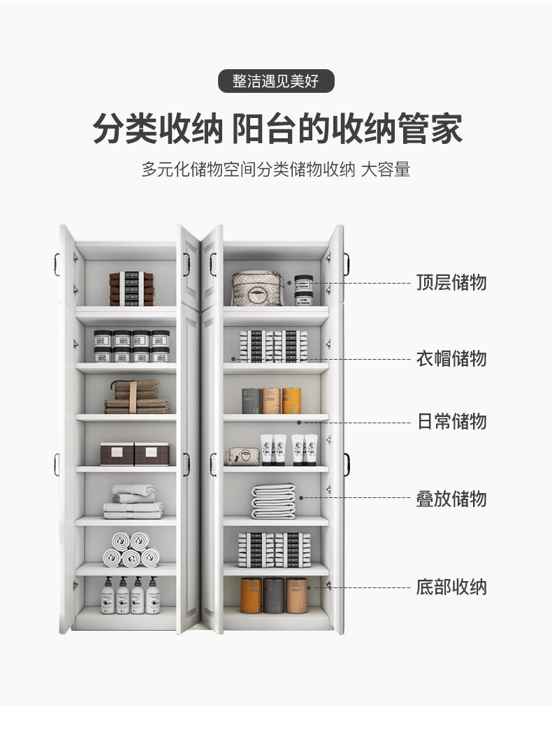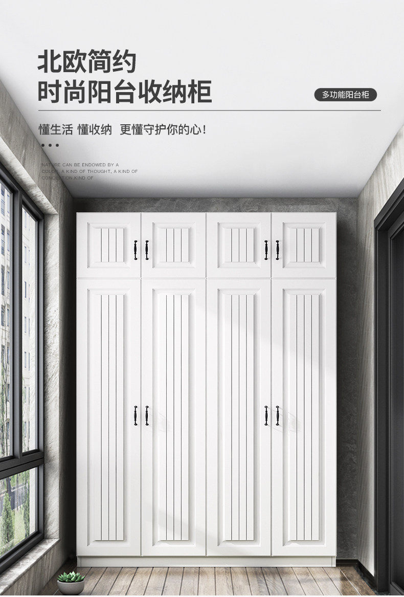 Balcony Storage Cabinet, Sun-Proof and Waterproof, High Cabinet Against the Wall, Large-Capacity Miscellaneous Storage Cabinet, Household Floor-Standing Bay Window Storage Cabinet