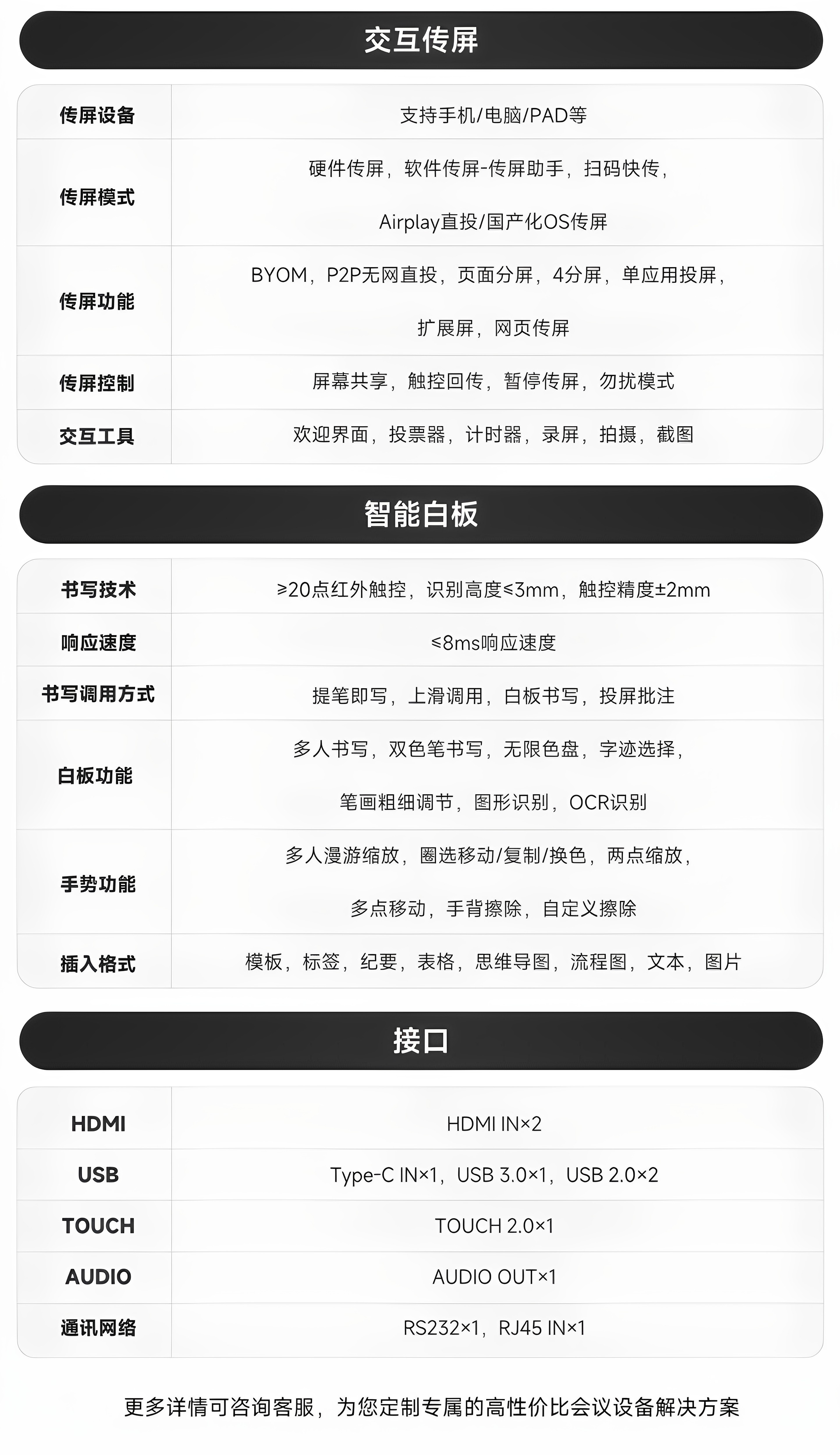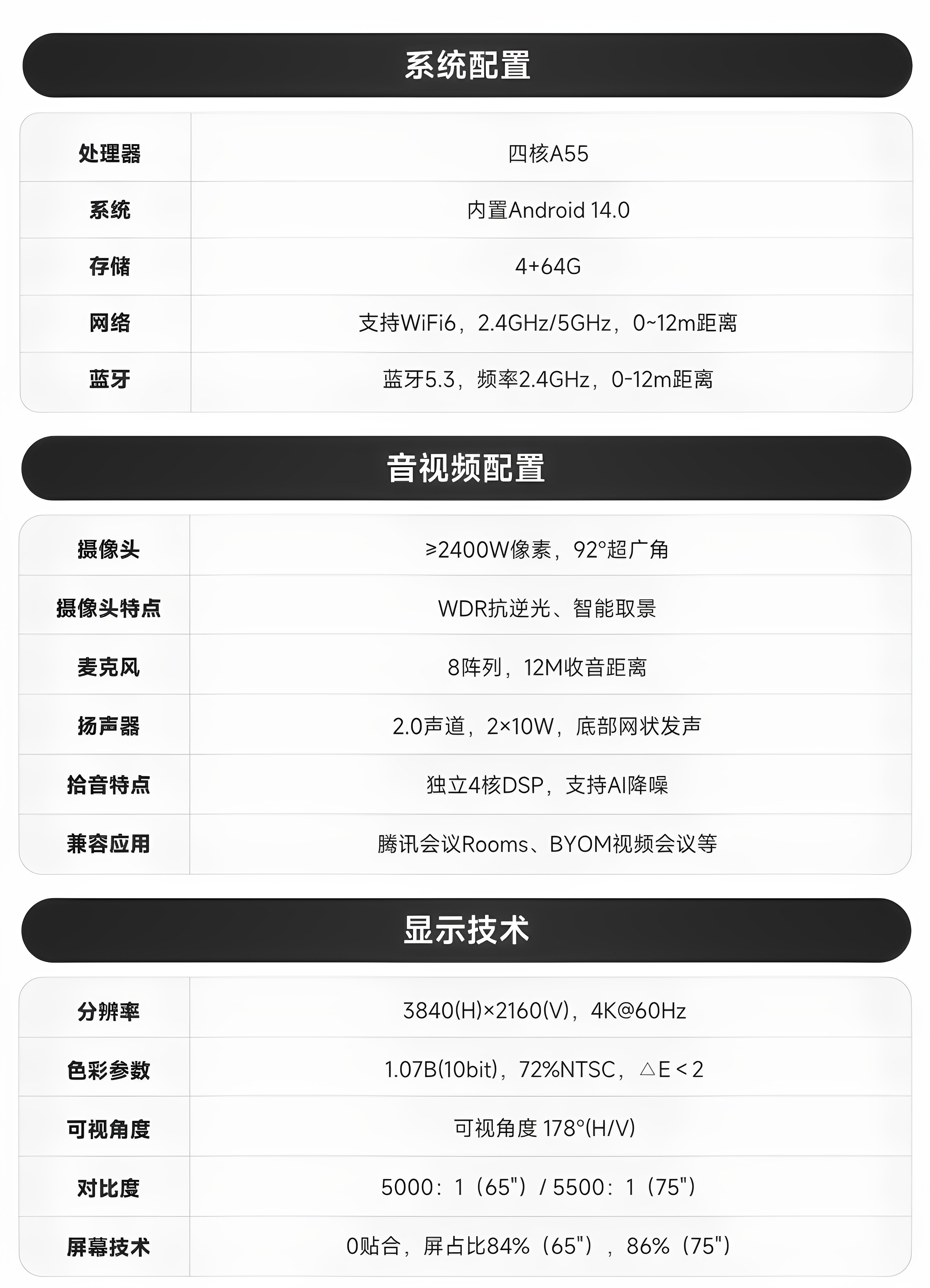 | Color Classification | 【4+64G】 55inch -Touch Writing,【4+64G】 55inch + Writing Pen*2 + Wall Bracket,【4+64G】 55inch + Writing Pen*2 + Simple Stand,【4+64G】 55inch + Smart Pen + Screen Mirroring Device + Wall Mount Bracket,【4+64G】 55inch + Smart Pen + Screen Mirroring Device + Minimalist Stand,【4+64G】 55inch + Smart Pen + Screen Mirroring Device + Stylish Stand (White/Gray Options Available),【4+64G】 55inch + Smart Pen + Screen Mirroring Device + Business Stand,[Ai Conference] 65inch + Writing Pen*2 + Wall Mount [New Product Launched],[Ai Conference] 65inch + Smart Pen + Screen Projector + Wall Mount,[Ai Conference] 65inch + Smart Pen + Screen Projector + Simple Stand,[Hot Sale for Meetings] 65inch + Smart Pen + Screen Projector + Simple Stand,[Ai Conference] 65inch + Smart Pen + Screen Projector + Fashion Stand,[Ai Conference] 65inch + Smart Pen + Screen Projector + Business Stand,[Ai Conference] 75inch + Writing Pen*2 + Wall Mount [New Product Launched],[Ai Conference] 75inch + Smart Pen + Screen Projector + Wall Mount,[Ai Conference] 75inch + Smart Pen + Screen Projector + Fashion Stand,[Ai Conference] 75inch + Smart Pen + Screen Projector + Business Stand,[Ai Noise Reduction] 86inch + Writing Pen*2 + Wall Bracket,[Ai Noise Reduction] 86inch + Screen Projector + Smart Pen + Wall Mount,[Ai Noise Reduction] 86inch + Screen Projector + Smart Pen + Fashion Stand (White/Grey Optional),[Ai Noise Reduction] 86inch + Screen Projector + Smart Pen + Business Stand,Xinrui 65inch + Writing Pen*2+ Wall Mount [4+64g],Cutting-Edge Version 65inch + Writing Pen*2 + Simple Stand,Cutting-Edge Version 65inch + Writing Pen*2 + Fashionable Stand (White/Grey Optional),Cutting-Edge Version 65inch + Writing Pen*2 + Screen Projector + Wall Mount,Cutting-Edge Version 65inch + Writing Pen*2 + Screen Projector + Simple Stand,Cutting-Edge Version 65inch + Writing Pen*2 + Screen Projector + Fashionable Stand (White/Grey Optional),Cutting-Edge Version 65inch + Writing Pen*2 + Screen Projector + Business Stand,Cutting-Edge Version 65inch + Smart Pen + Screen Projector + Wall Mount,Cutting-Edge Version 65inch + Smart Pen + Screen Projector + Simple Stand,Cutting-Edge Version 65inch + Smart Pen + Screen Projector + Fashionable Stand (White/Grey Optional),Cutting-Edge Edition 65inch + Smart Pen + Screen Mirroring Device + Business Stand,Cutting-Edge Version 55inch + Writing Pen*2 + Simple Stand,Cutting-Edge Version 55inch + Writing Pen*2 + Fashionable Stand (White/Grey Optional),Cutting-Edge Version 55inch + Writing Pen*2 + Screen Projector + Wall Mount,Cutting-Edge Version 55inch + Writing Pen*2 + Screen Projector + Simple Stand,Cutting-Edge Version 55inch + Writing Pen*2 + Screen Projector + Fashionable Stand (White/Grey Optional),Cutting-Edge Version 55inch + Writing Pen*2 + Screen Projector + Business Stand |