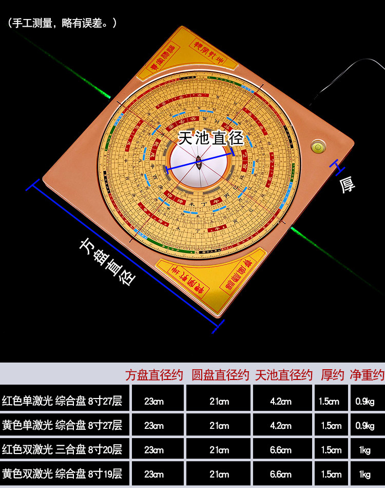 | Color Classification | Single Laser Comprehensive Disk 8 Inches 27 Layers Red,Single Laser Comprehensive Disk 8 Inches 27 Layers Yellow,Dual Laser Three-In-One Disk 8 Inches 20 Layers Red,Dual Laser Comprehensive Disk 8 Inches 19 Layers Yellow,Classic Laser Compass |