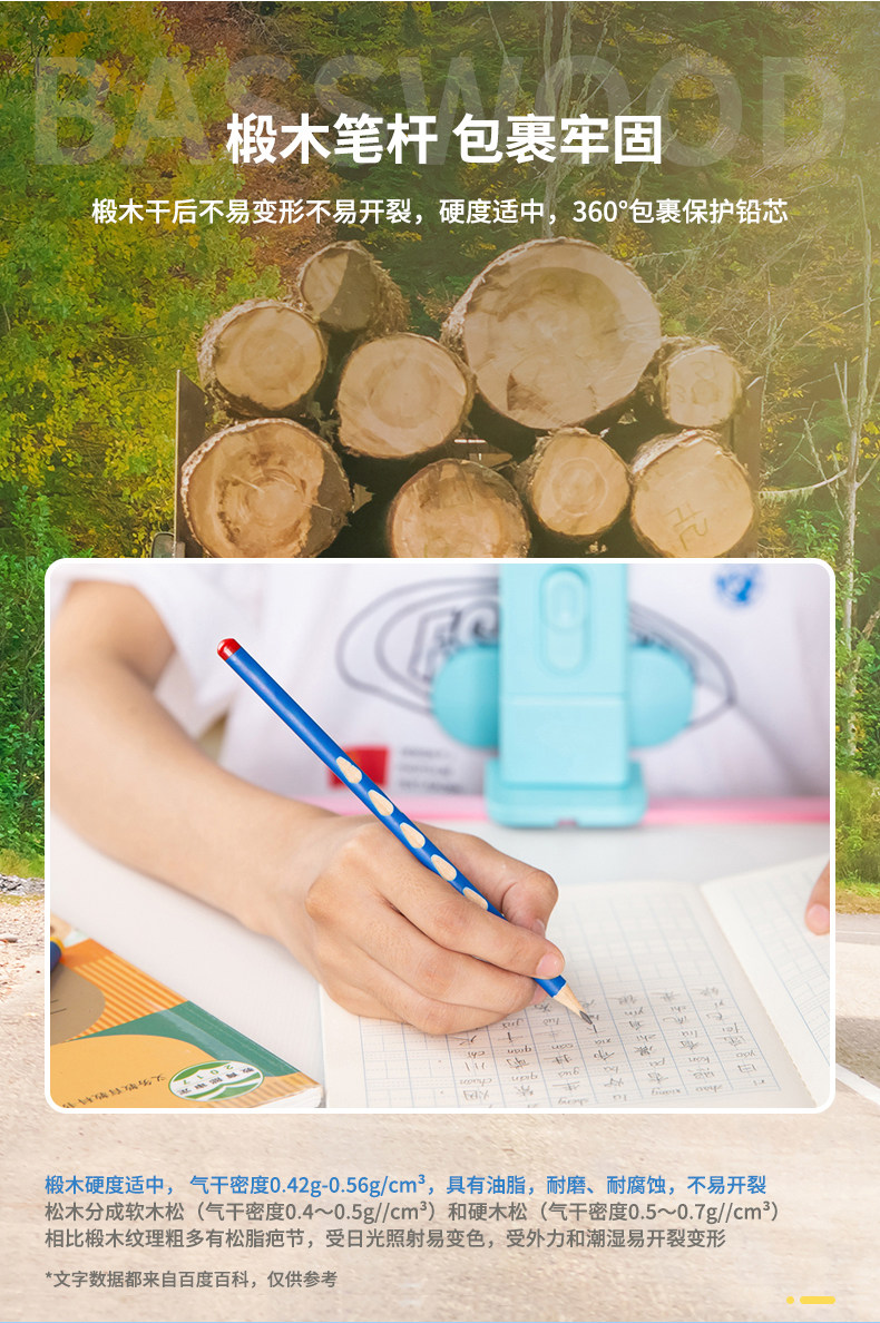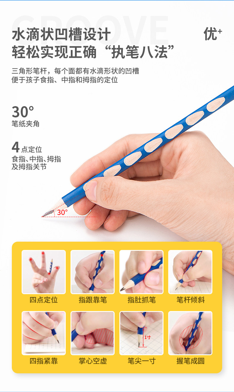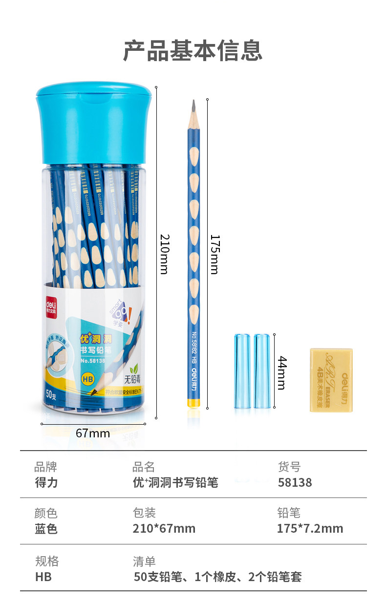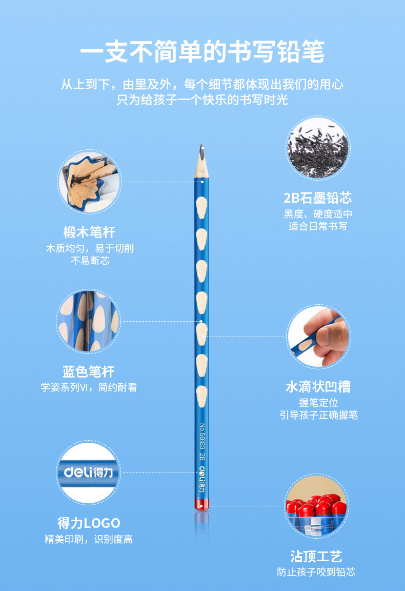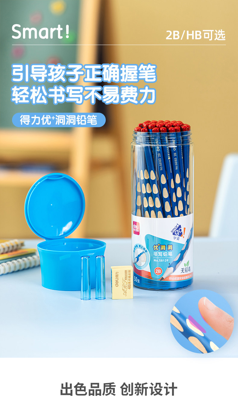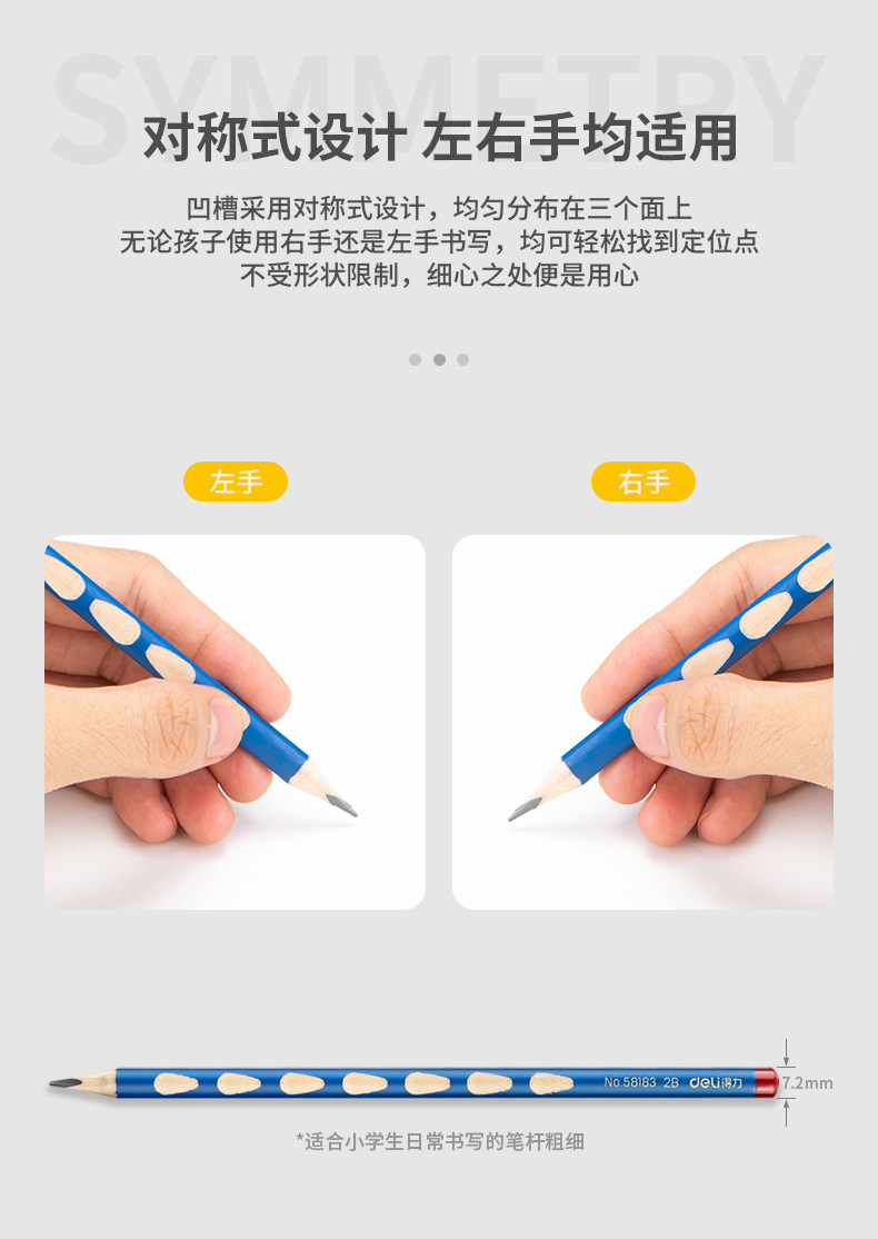 Deli Hole Pencil for Correcting Grip Posture, Triangular Barrel, Non-Toxic Lead-Free Hb Pencil, 2B Pencil, Exam Hb Pencil, Children's Pencil, Kindergarten Writing Stationery Supplies