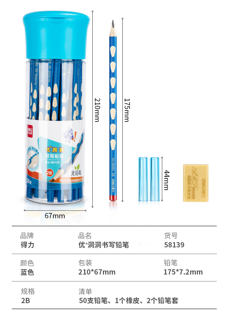 | Color Classification | 2B-2 Box of 24 Pieces Comes with 2 Erasers and 2 Pencil Sharpeners,Hb-2 Box of 24 Pieces Comes with 2 Erasers and 2 Pencil Sharpeners,2B-1 Tube of 30 Pieces Comes with 1 Eraser and 1 Pencil Sharpener,Hb-1 Tube of 30 Pieces Comes with 1 Eraser and 1 Pencil Sharpener,Hb-1 Tube of 50 Pieces Comes with 1 Eraser, 1 Pencil Sharpener and 2 Pencil Cases,2B-1 Tube of 50 Pieces Comes with 1 Eraser, 1 Pencil Sharpener and 2 Pencil Cases,Hb-2 Tube, 100 Pieces, Comes with Two Erasers, 1 Pencil Sharpener, 4 Pencil Cases,2B-2 Tube of 100 Pieces Comes with Two Erasers, 1 Pencil Sharpener and 4 Pencil Cases,Hb-50 Pieces + 2B-50 Pieces Come with Two Erasers, 1 Pencil Sharpener and 4 Pencil Cases |