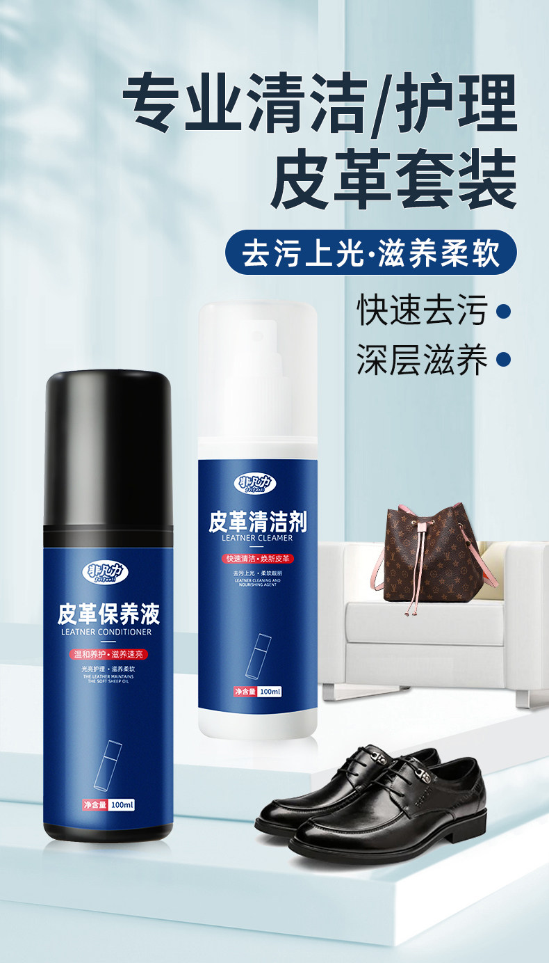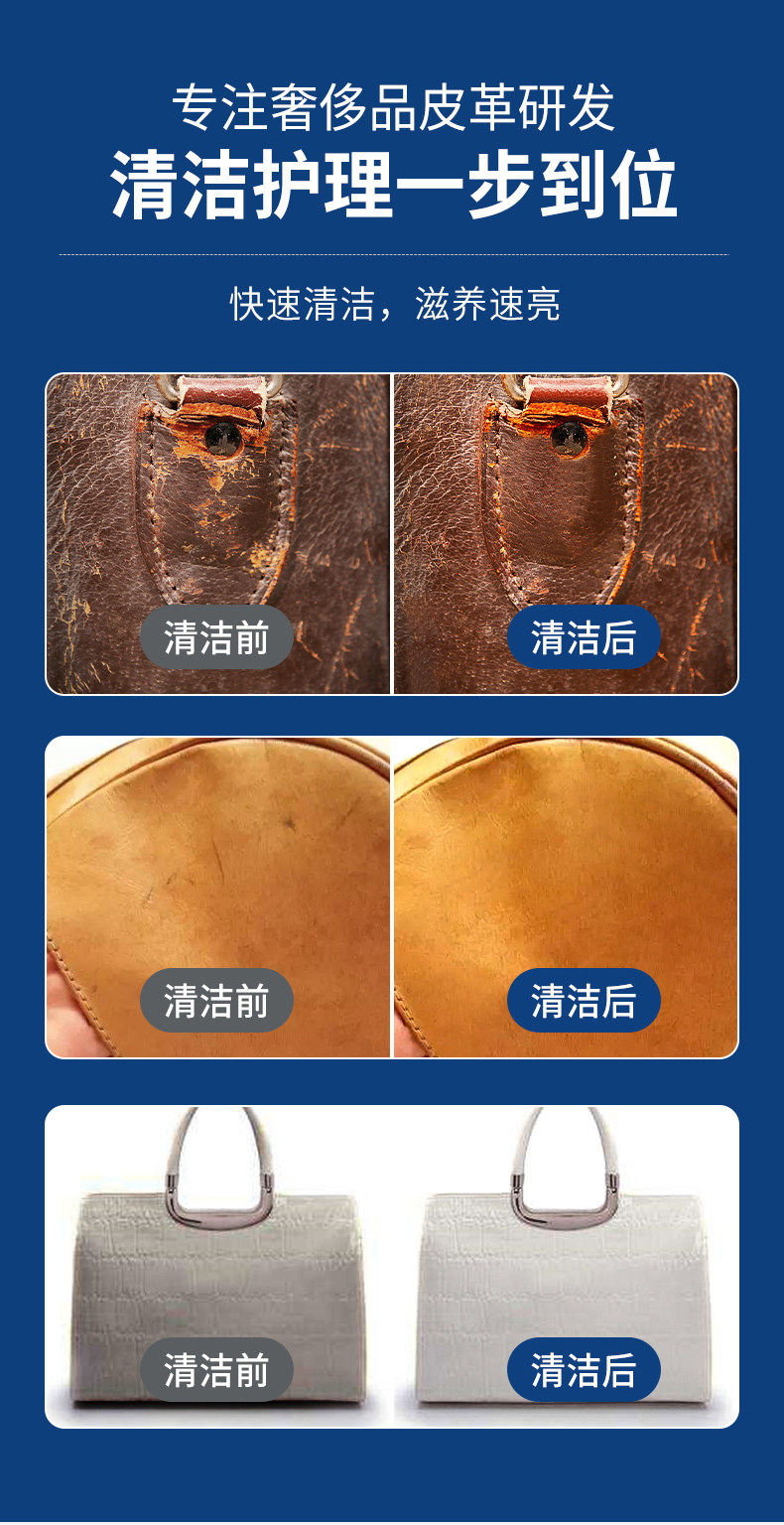 Leather Care Solution for Luxury Leather Bags, Sofas, Leather Shoes, Mildew Removal, Powerful Stain Removal, Maintenance, No-Wash Cleaning Agent