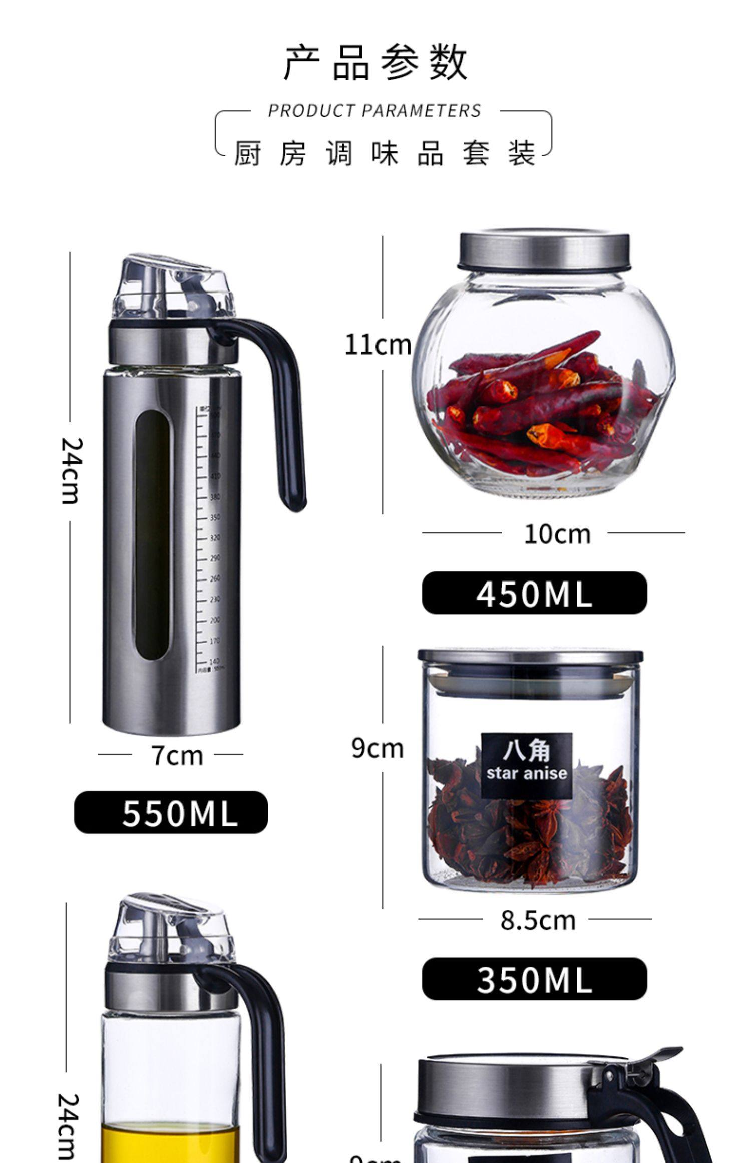 | Color Classification | 5 Silver Self-Opening Oil Cans + 4 Leather-Covered Seasoning Jars + 4 Jiadao + Black Shelf + Labeling,5 Silver Self-Opening Oil Cans + 4 Plastic Handle Cans + 4 Jiadao + Black Shelf + Labeling,5 Self-Opening Jars + 4 Black Handle Jars + 4 Jars + Shelves + Labels,New Arrival Special Price (5 500ml Soda-Lime Silica Gel Oil Bottles + 4 Open Handles + 4 Tinplate Sealed Jars + Shelf,5 350ml Large Bottom Silver + 4 Stainless Steel Handles + 4 Jiadao + Silver Shelf + Label,5 Silver Self-Opening Oil Cans + 5 Spoon Lids + 4 Jiadao + Black Shelf + Labeling,5 Silver Self-Opening Oil Cans + 5 Integrated Spoon Lids + 4 Leather-Closed Spice Jars + Black Spots + Labeling,4 Silver Self-Opening Oil Cans + 4 Integrated Spoon Lids + 4 Plastic Handle Cans + Black Shelf + Labeling,[Add to Favorites & Add to Cart]Send Sticker Label |