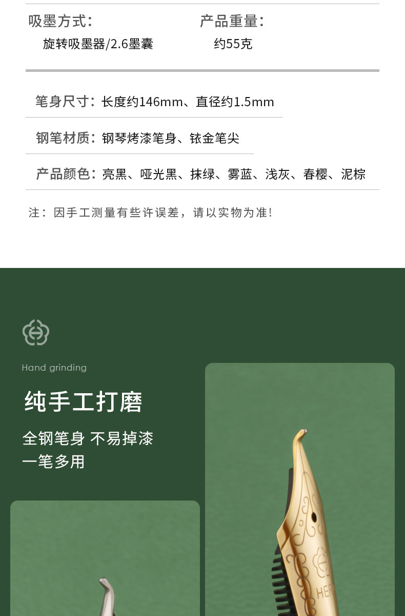| Color Classification | Recommended for Personal Use: Apply Green\Give Away 24 Ink Bags + 1 Bottle of Ink + Acrylic Box,Recommended for Personal Use: Light Gray\24 Ink Bags + 1 Bottle of Ink + Acrylic Box,Recommended for Personal Use: Misty Blue. Includes 24 Ink Cartridges + 1 Bottle of Ink + Acrylic Display Case,Recommended for Personal Use: Lotus Root Color, Comes with 24 Ink Cartridges + 1 Bottle of Ink + Acrylic Case,Recommended for Personal Use: Matte Black. Includes 24 Ink Cartridges + 1 Bottle of Ink + Acrylic Display Case,Matt Black-Morandi Heaven and Earth Cover Gift Box,Mottled Green - Morandi Lid and Base Gift Box,Light Grey - Morandi Lid and Base Gift Box,Misty Blue - Morandi Lid and Base Gift Box,Lotus Root - Morandi Lid and Base Gift Box |