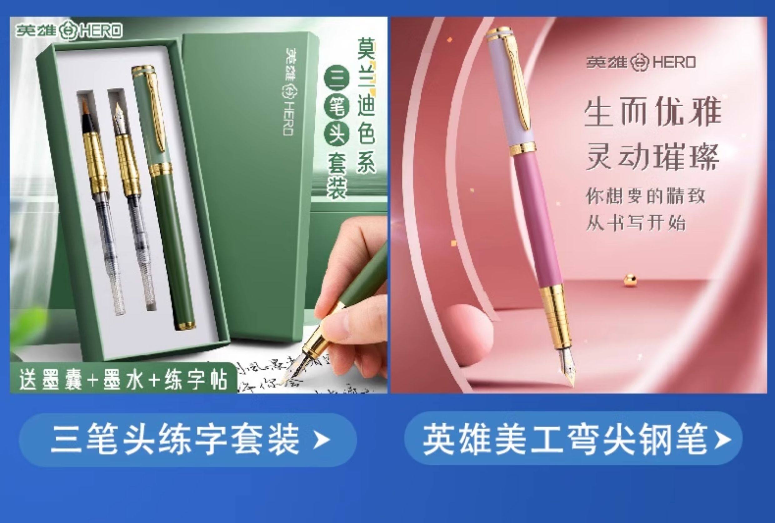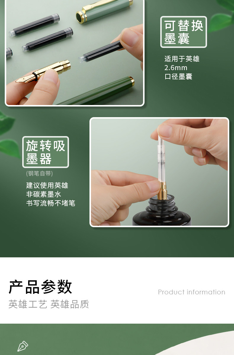 Hero Brand Fountain Pen for Students, Suitable for Practicing Calligraphy, High-End and Exquisite for Men and Women, Fairy-Like Hard-Tipped Calligraphy Pen, High Aesthetic Value, Artistic Signature Pen, Ink Cartridge, Genuine Product from Official Flagship Store
