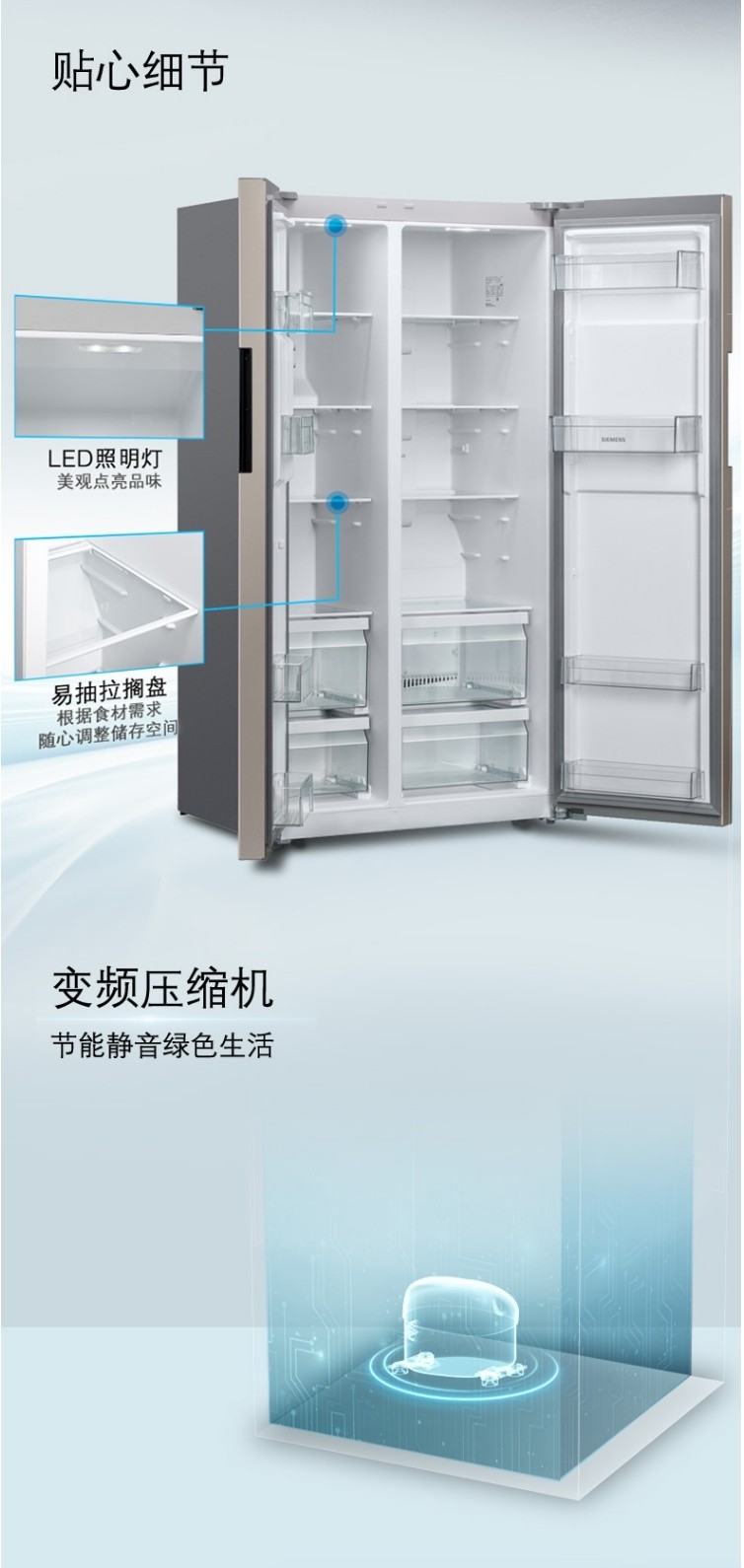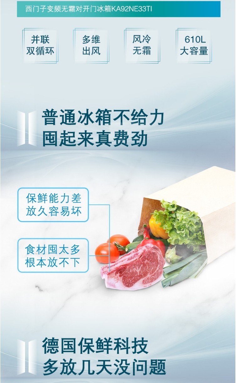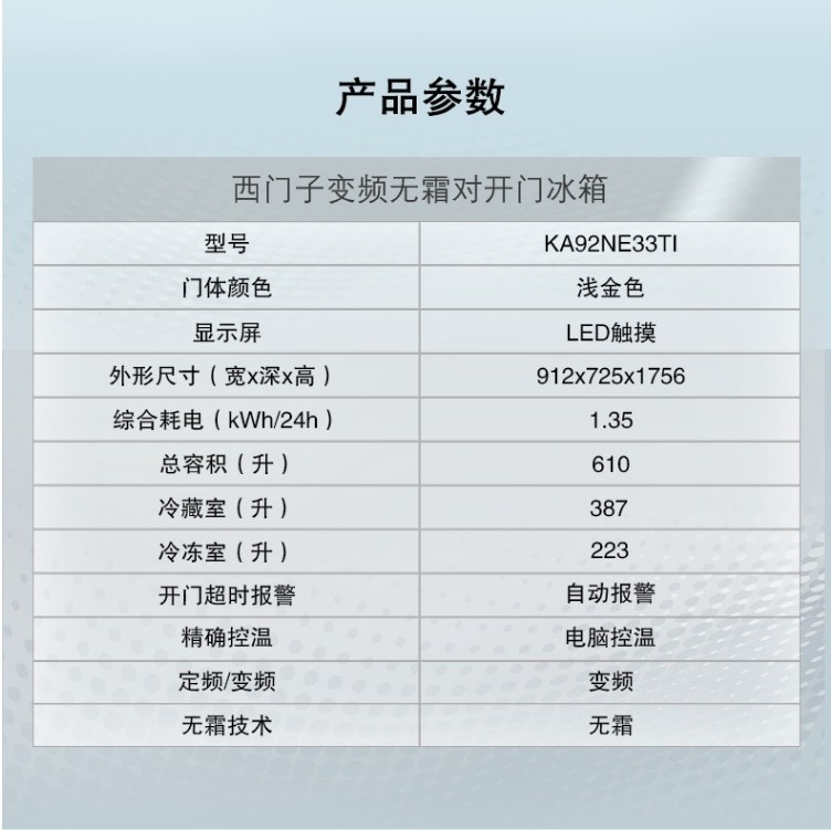 Siemens Bcd-610W (Ka92Ne33Ti) Household Inverter Air-Cooled Frost-Free Double-Cycle Side-By-Side Refrigerator
