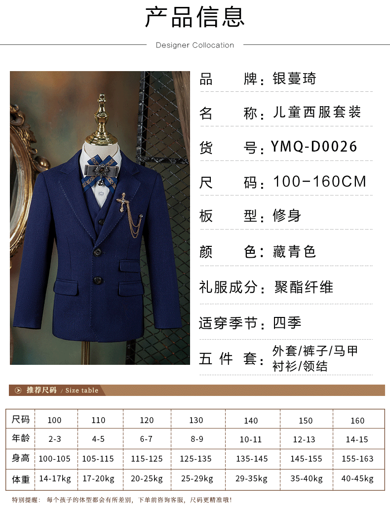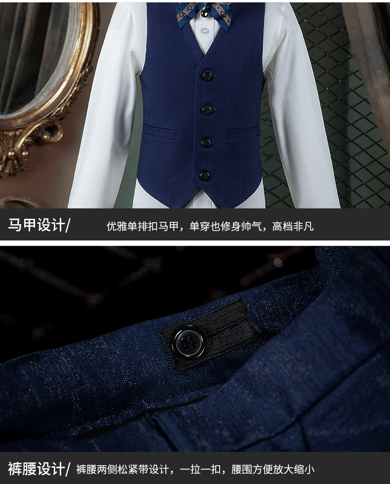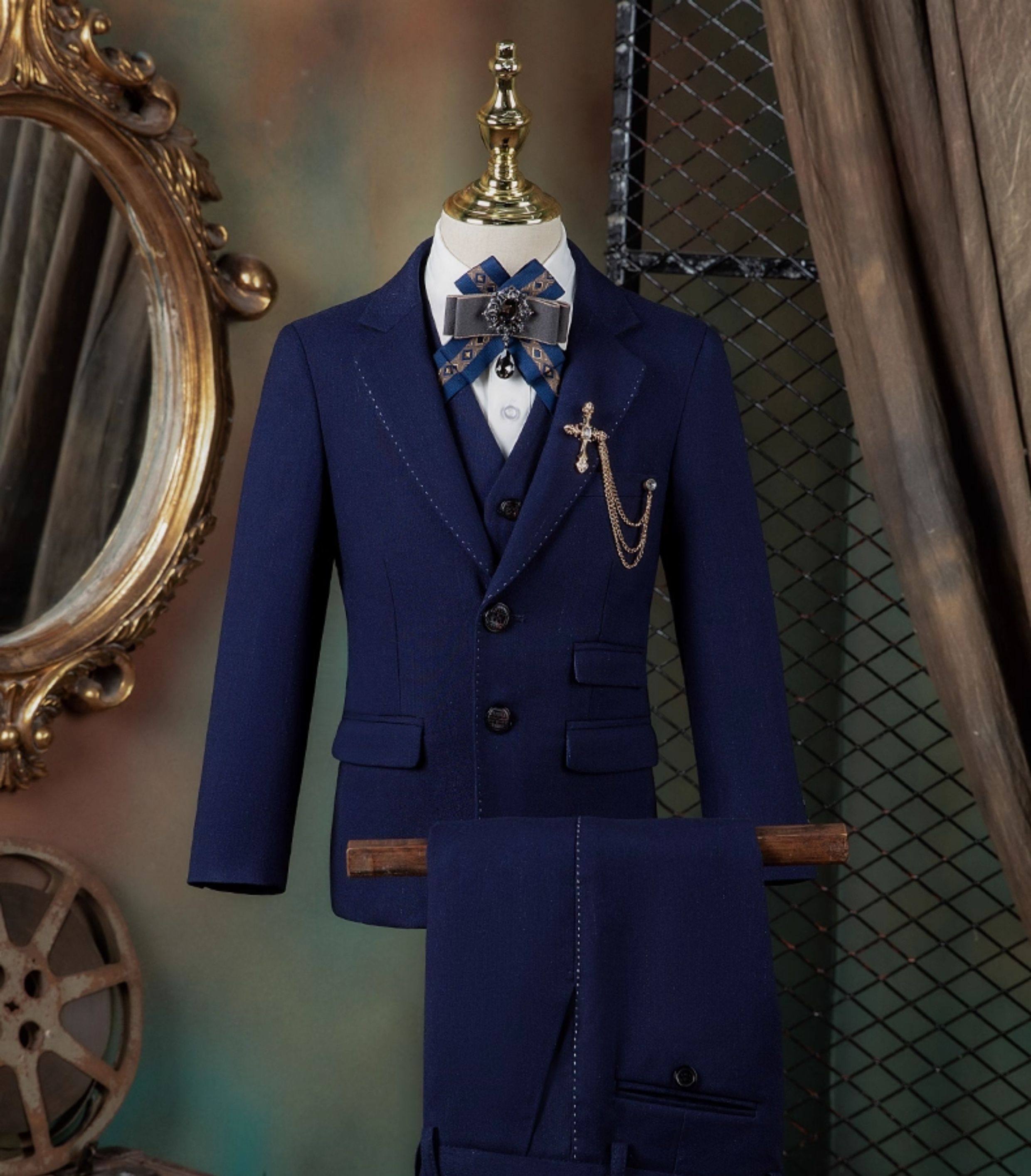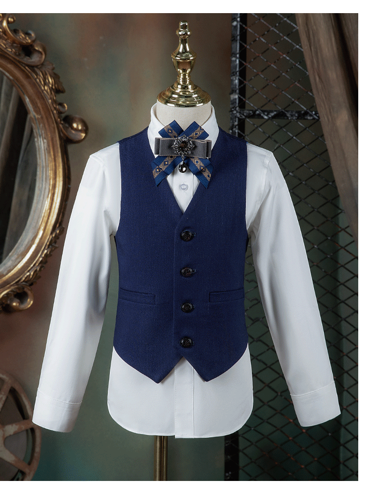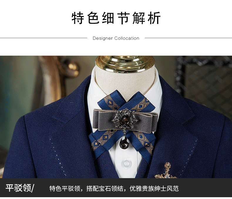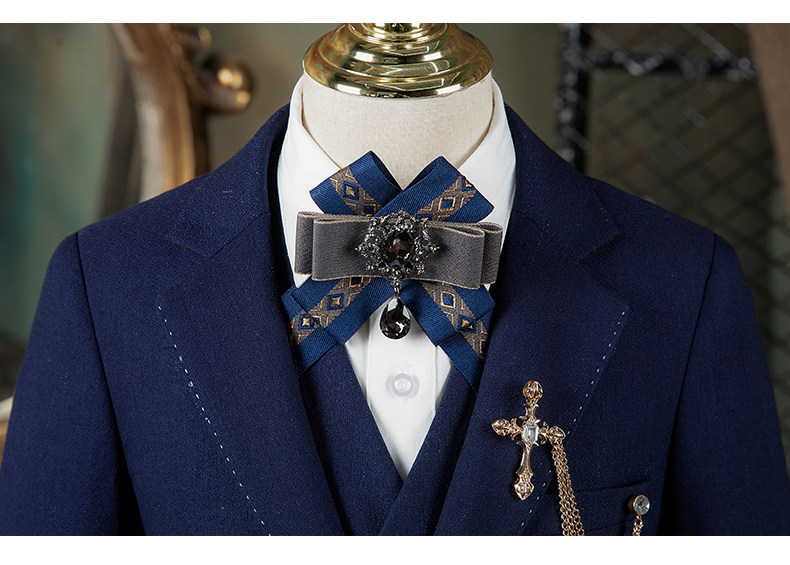 | Color Classification | Three-Piece Suit (Suit + Pants + Vest),Three-Piece Suit (Suit + Vest + Pants),Five-Piece Suit (Suit + Vest + Pants + Shirt + Bow Tie),Six-Piece Set (Suit + Vest + Pants + Shirt + Bow Tie + Brooch) |