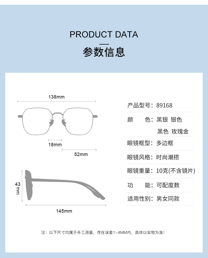 | Lens Refractive Index | Frame,Flat Light and Anti-Blue Light [No Degree],Equipped with 1.56 Anti-Blue Light Lenses [Can Be Equipped with 0-300 Degrees, Astigmatism 0-200 Degrees],Equipped with 1.60 Anti-Blue Light Lenses [Can Be Equipped with 0-500 Degrees, Astigmatism 0-200 Degrees],Equipped with 1.67 Anti-Blue Light Lenses [Can Be Equipped with 0-800 Degrees, Astigmatism 0-200 Degrees],Equipped with 1.74 Anti-Blue Light Lenses [Can Be Equipped with 0-1200 Degrees, Astigmatism 0-200 Degrees],Equipped with 1.60 Ultra-Thin Lenses [Can Be Equipped with 0-500 Degrees, Astigmatism 0-200 Degrees],Equipped with 1.67 Ultra-Thin Lenses [Can Be Equipped with 0-800 Degrees, Astigmatism 0-200 Degrees],Equipped with 1.67 Ultra-Thin Double-Sided Aspherical Lenses [Suitable for 300-1000 Degrees, Astigmatism 0-200 Degrees],Equipped with 1.56 Gray Lenses [Myopia 0-300 Degrees, Astigmatism 0-200 Degrees],Equipped with 1.56 Brown Lenses [Myopia 0-300 Degrees, Astigmatism 0-200 Degrees],Equipped with 1.60 Anti-Blue Light Gray Lenses [Myopia 0-500 Degrees, Astigmatism 0-200 Degrees],Equipped with [Zeiss Special] 1.56 Aspheric Surface (0-600 Degrees, Astigmatism 0-200 Degrees),Equipped with [Zeiss Special] 1.60 Aspheric Surface (0-600 Degrees, Astigmatism 0-200 Degrees),Equipped with [Zeiss Special] 1.67 Aspheric Surface (0-800 Degrees, Astigmatism 0-200 Degrees),Equipped with Zeiss 1.56 Anti-Blue Light Lenses [Myopia 0-400 Degrees, Astigmatism 0-200 Degrees],Equipped with Zeiss 1.60 Anti-Blue Light Lenses [Myopia 0-600 Degrees, Astigmatism 0-200 Degrees],Equipped with Zeiss 1.67 Anti-Blue Light Lenses [Myopia 0-800 Degrees, Astigmatism 0-200 Degrees],Equipped with Zeiss a Series 1.56 Aspherical Lenses [Myopia 0-400 Degrees, Astigmatism 0-200 Degrees],Equipped with Zeiss a Series 1.60 Aspherical Lenses [Myopia 0-600 Degrees, Astigmatism 0-200 Degrees],Equipped with Zeiss a Series 1.67 Aspherical Lenses [Myopia 0-800 Degrees, Astigmatism 0-200 Degrees],Equipped with Zeiss Diamond Cube 1.56 Aspheric Anti-Blue Light [Myopia 0-400 Degrees, Astigmatism 0-200 Degrees] |