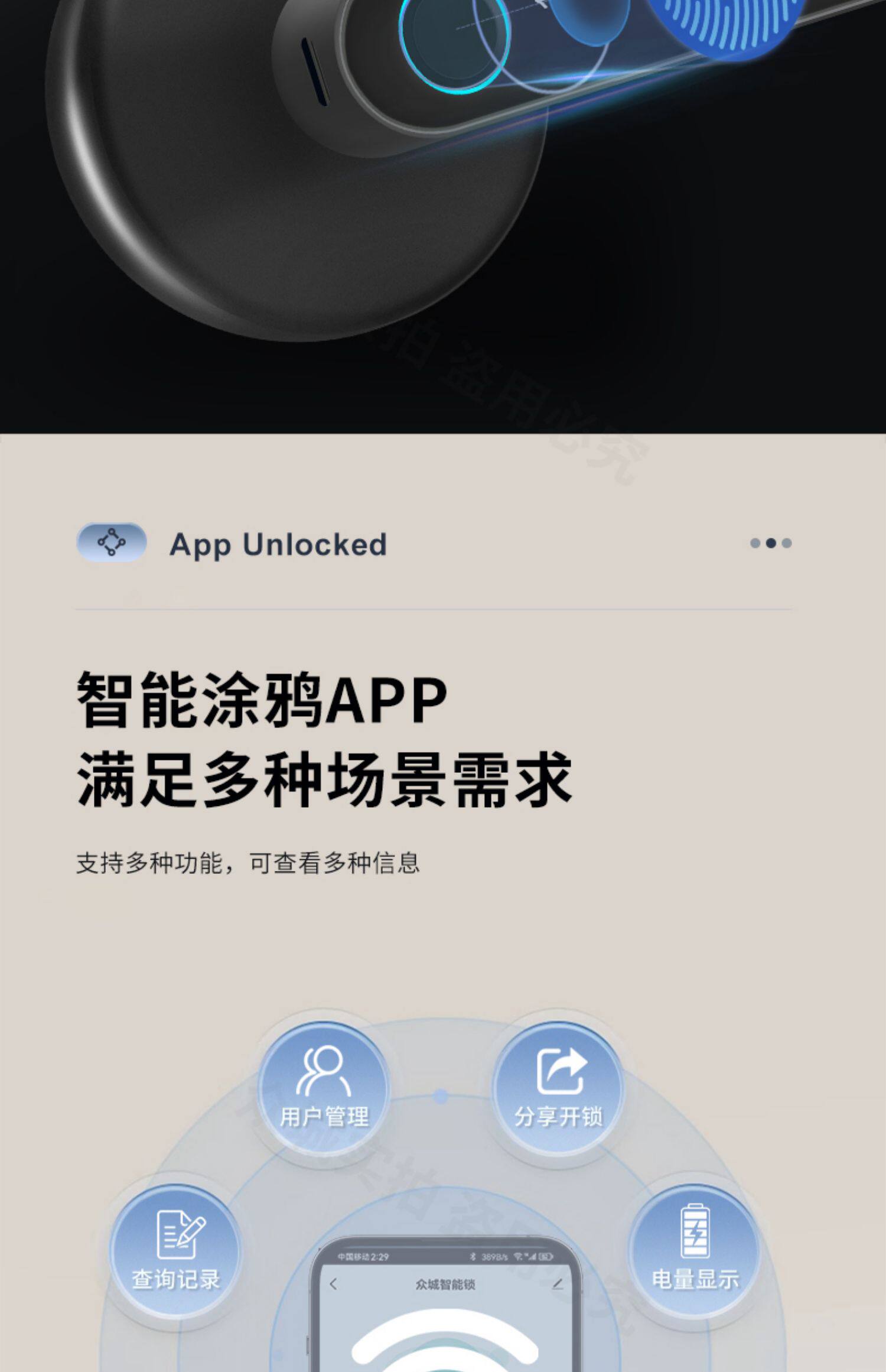 | Finish Color | Black-Standard Edition,Black-Graffiti Edition (App),Black - Graffiti Remote Edition (Remote App),Black - All-In-One Lock (App),Black - Tongtong Lock Remote Version (Remote App),Black - Tongtong Lock Remote Control Version (Remote + App),Silver-Standard Edition,Silver - Graffiti Edition (App),Silver - Graffiti Remote Edition (Remote App),Silver - Tongtong Lock (App),Silver - Tongtong Lock Remote Version (Remote App),Silver - Tongtong Lock Remote Control Version (Remote + App),Black Regular Version (Fingerprint + Key),Silver Regular Version (Fingerprint + Key) |