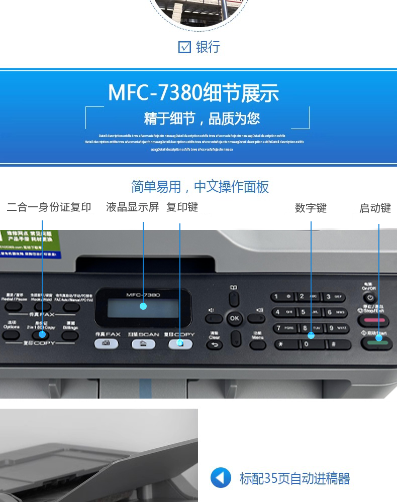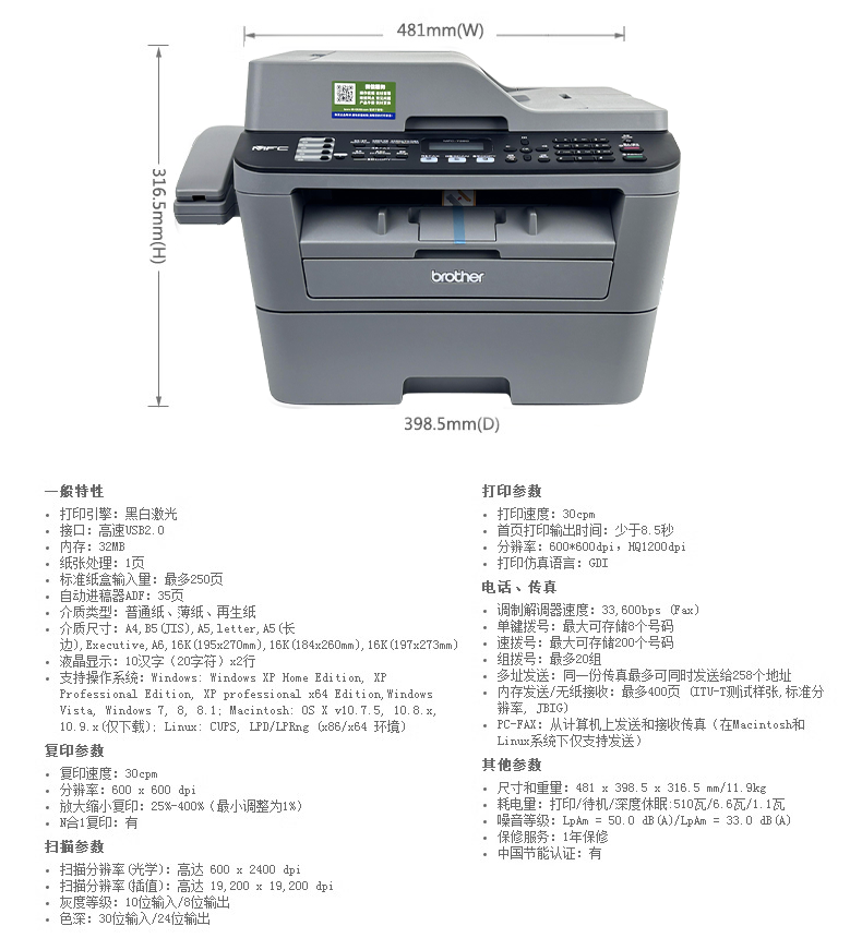 Brother Laser Printer Mfc-7380/7480D/7880Dn Wireless High-Speed Duplex Four-In-One Fax Machine
