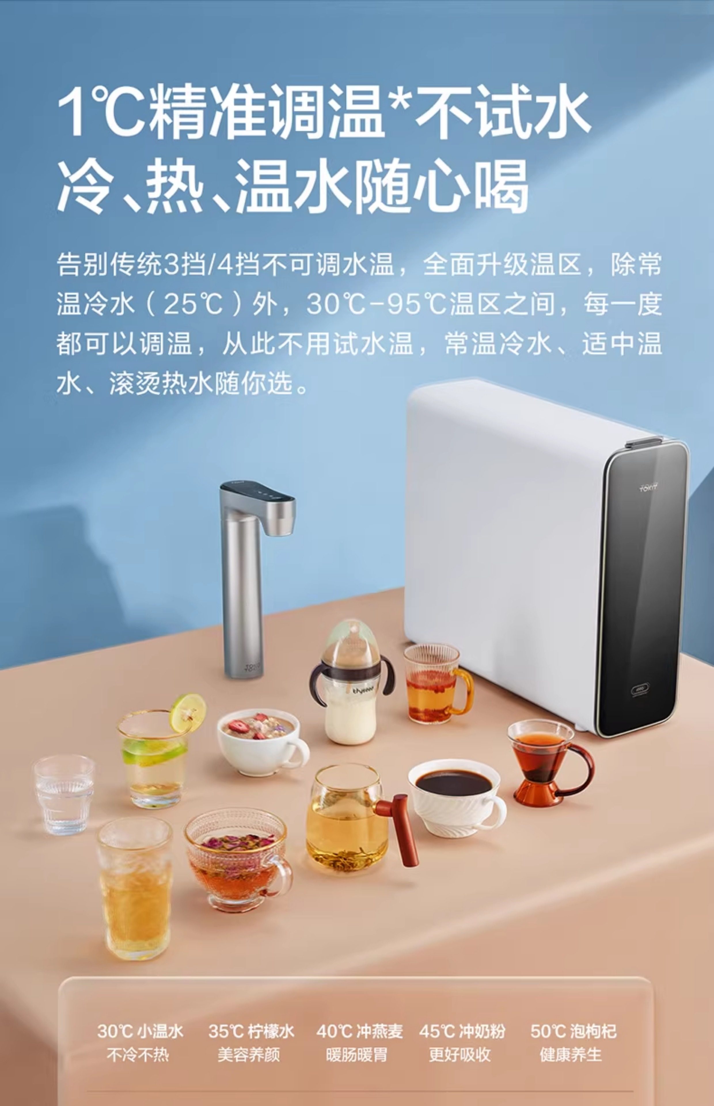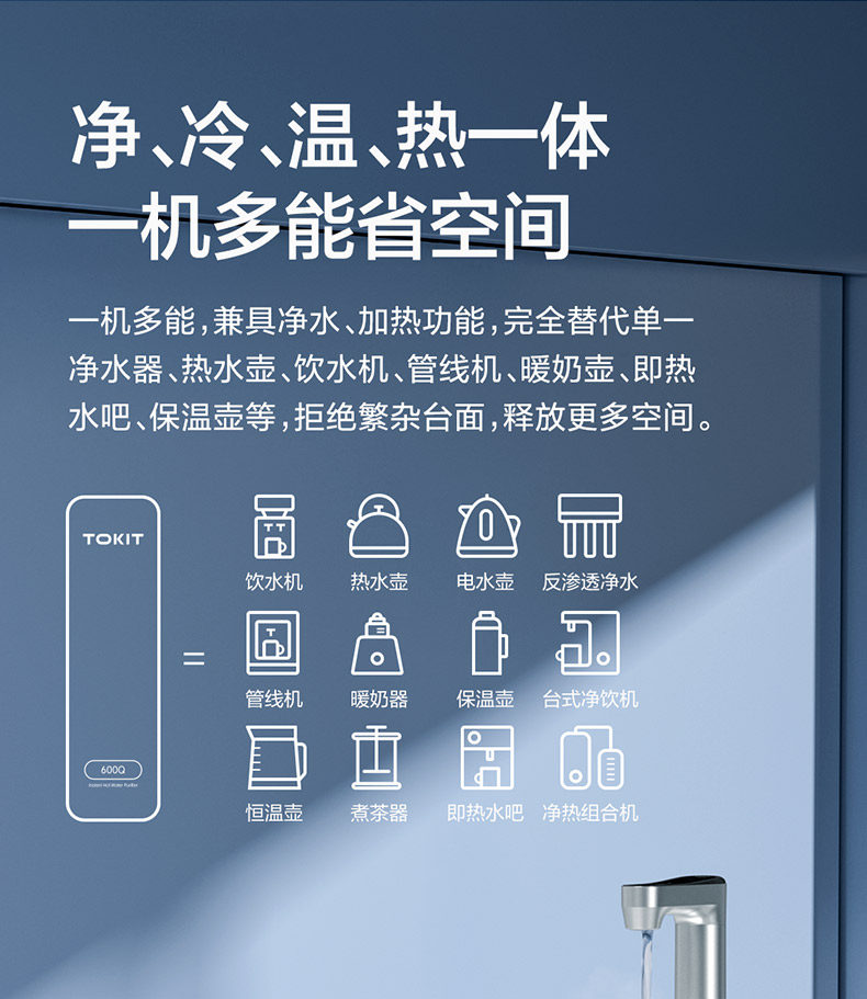 Tokit Kitchen Counter 600Q Dual-Use Hot and Cold Water Dispenser Under-Sink Ro Reverse Osmosis Water Purifier