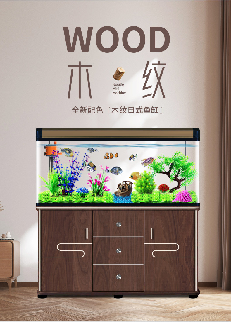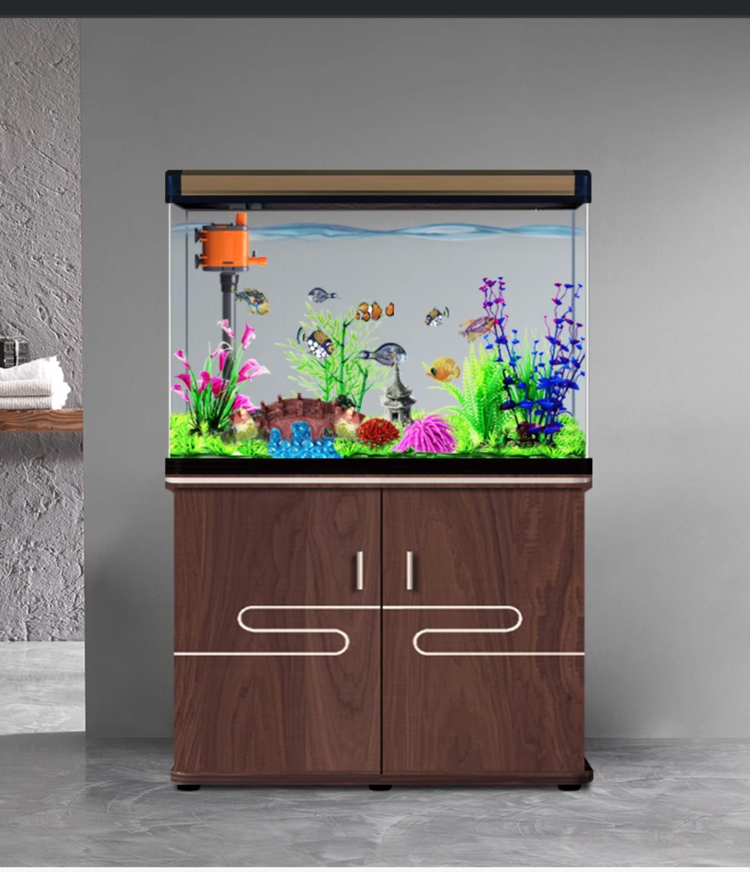 Fish Tank for Living Room, Large, Medium, and Small Sizes, Household Floor-Standing with Base Cabinet, Ecological, No Water Change Needed, Creative Aquarium, Ultra-White Goldfish Tank