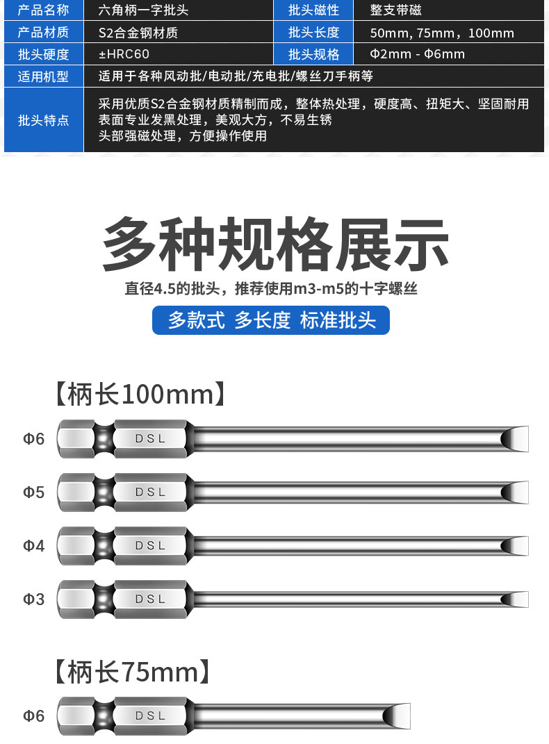 High-Hardness, Strong Magnetic Bit Set for Imported Electric Screwdrivers, Drill Bits, and Impact Drivers, Ultra-Hard Industrial Grade