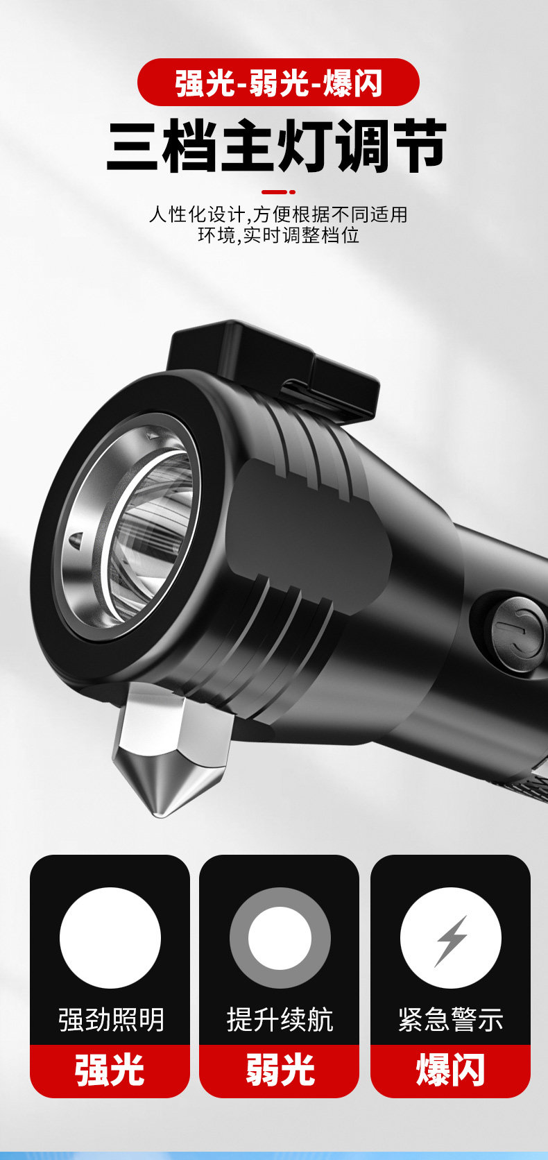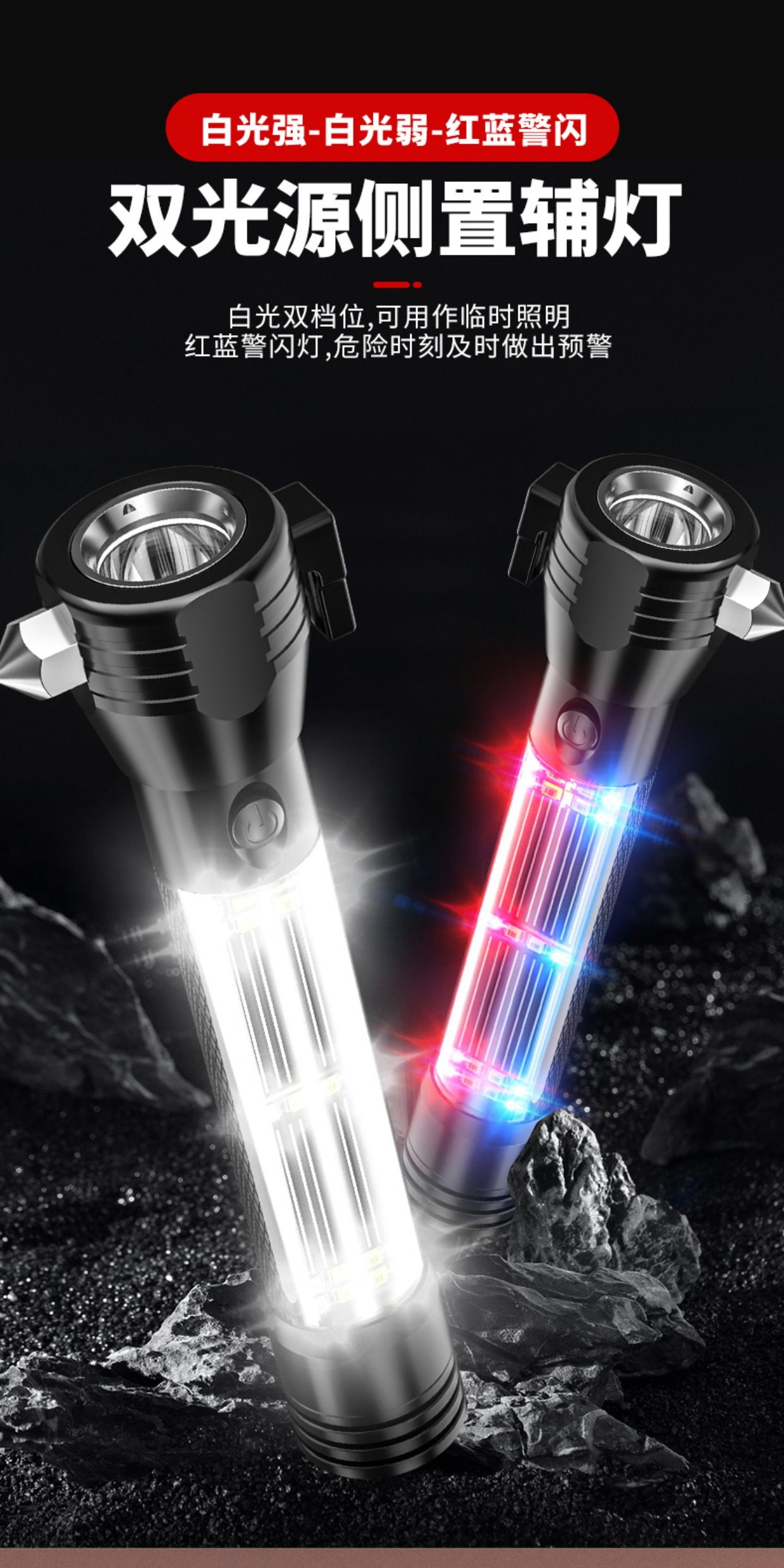 Solar-Powered Four-In-One Flashlight, Car Emergency Light, Multifunctional Car Safety Hammer, Anti-Wolf Tool for Women, Window-Breaking Tool