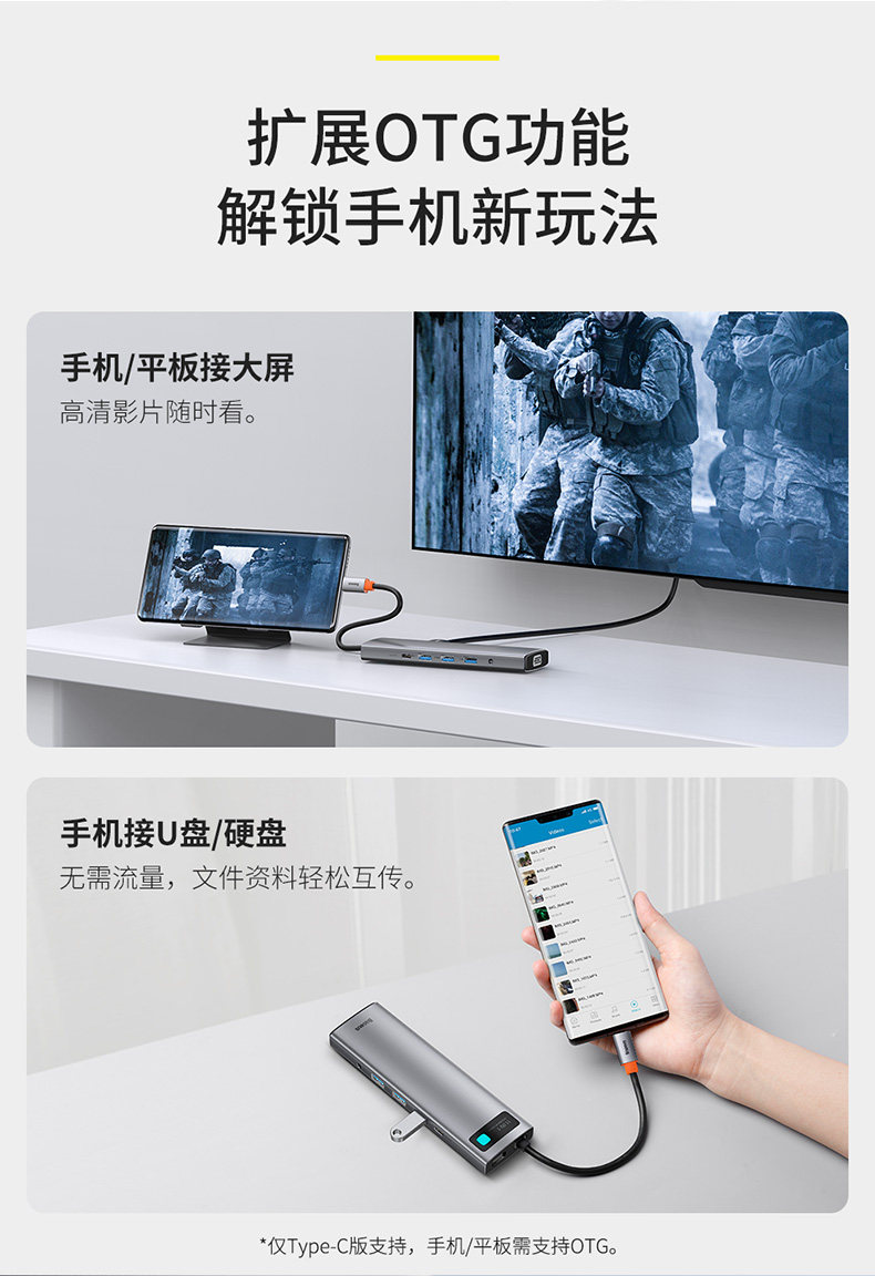 Baseus Type-C Docking Station USB Expansion Multi-Port Adapter Suitable for Desktop Computers, Laptops, and Mobile Phones, Thunderbolt 4 Hub, Multi-Interface HDMI Converter, Network Port Hub