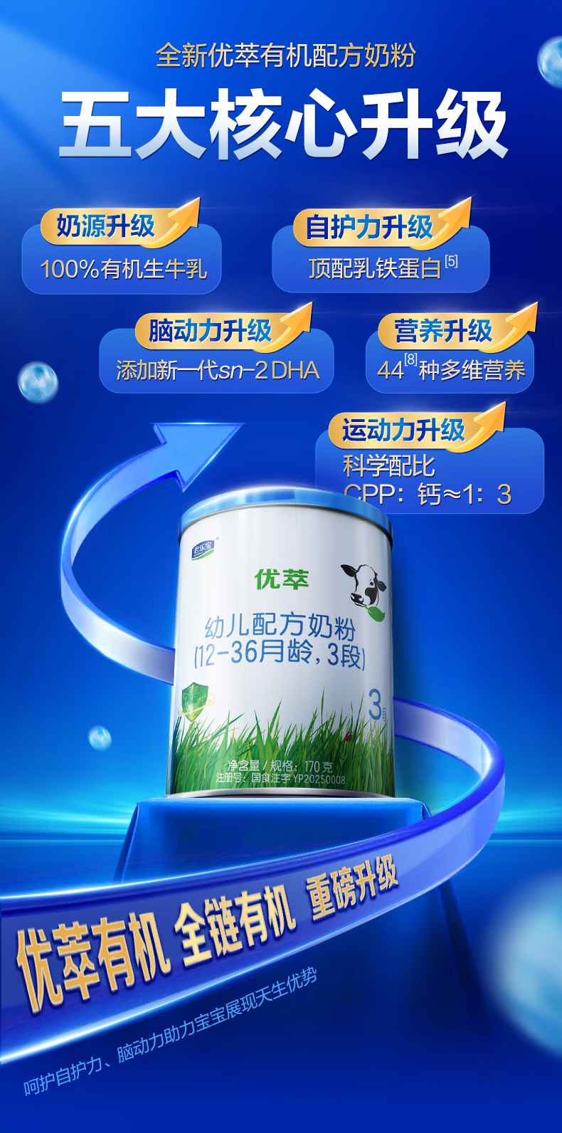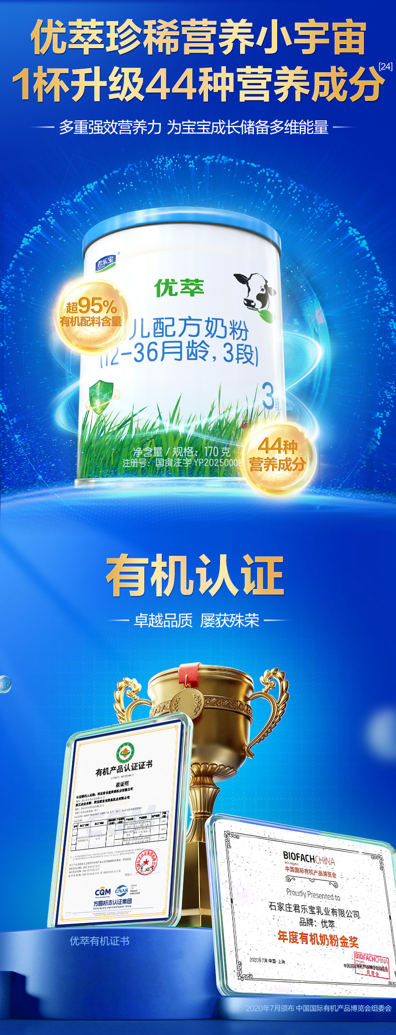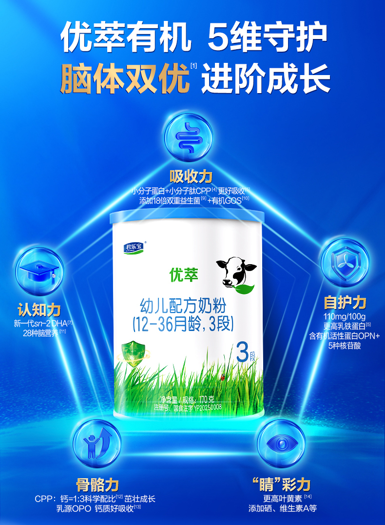 [No Spoon Included] Junlebao Youcui Organic Infant Formula Milk Powder Suitable for 12-36 Months, Stage 3, 170g*1