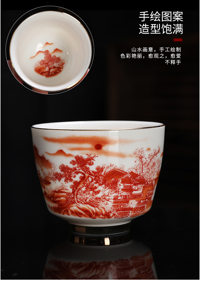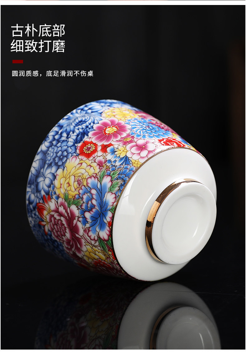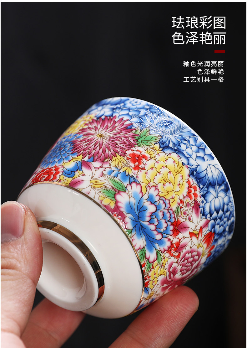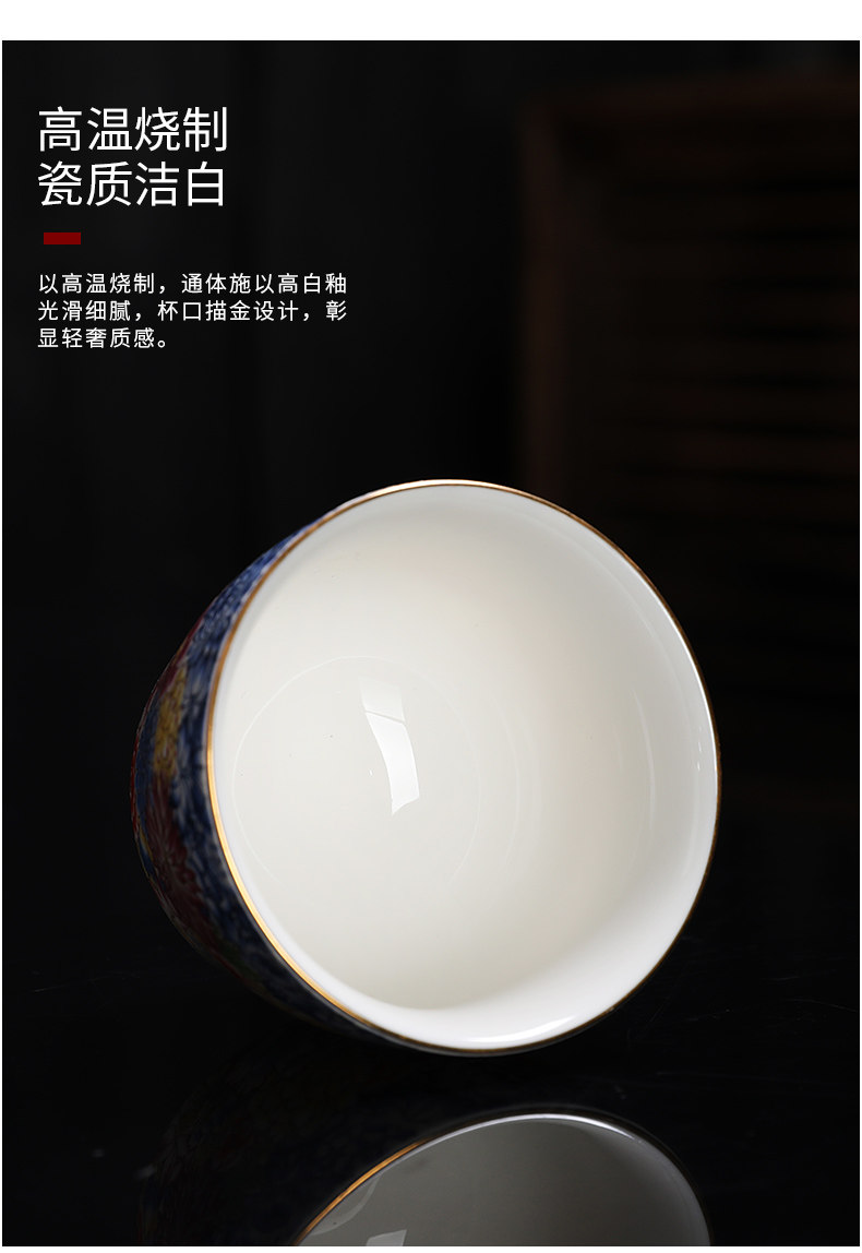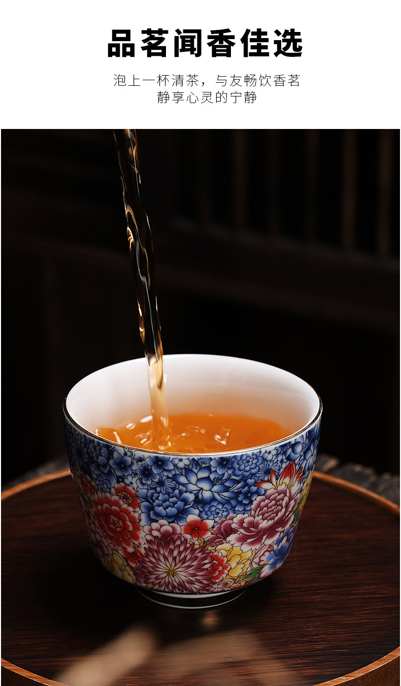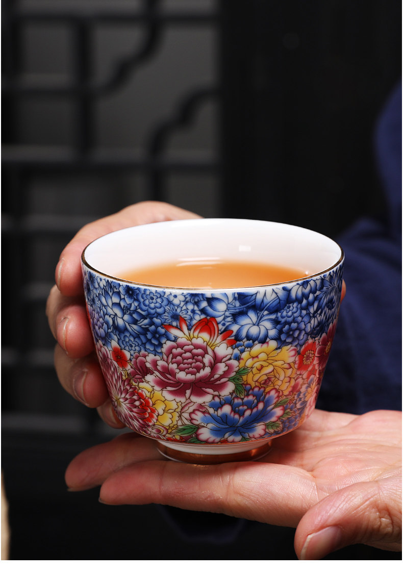 Enamel Kung Fu Tea Cup, Ceramic Tea Tasting Cup, Tea Set Set, Light Luxury Household Cup, Gold-Painted Master Single Cup for Men and Women