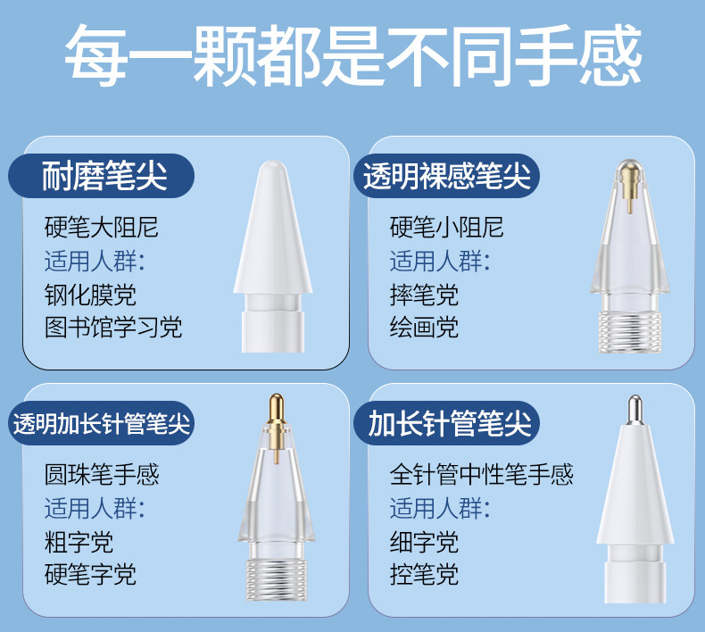 | Color Classification | Standard Nib[2],Super Wear-Resistant Pen Tip[2],Naked Transparent Pen Tip[2],2B Silent Pen Tip[2],4.0 Extra Long Needle Tip (360 Degrees of Writing Without Dead Ends)[2],Family Portrait Package[4]One of Each Style |
