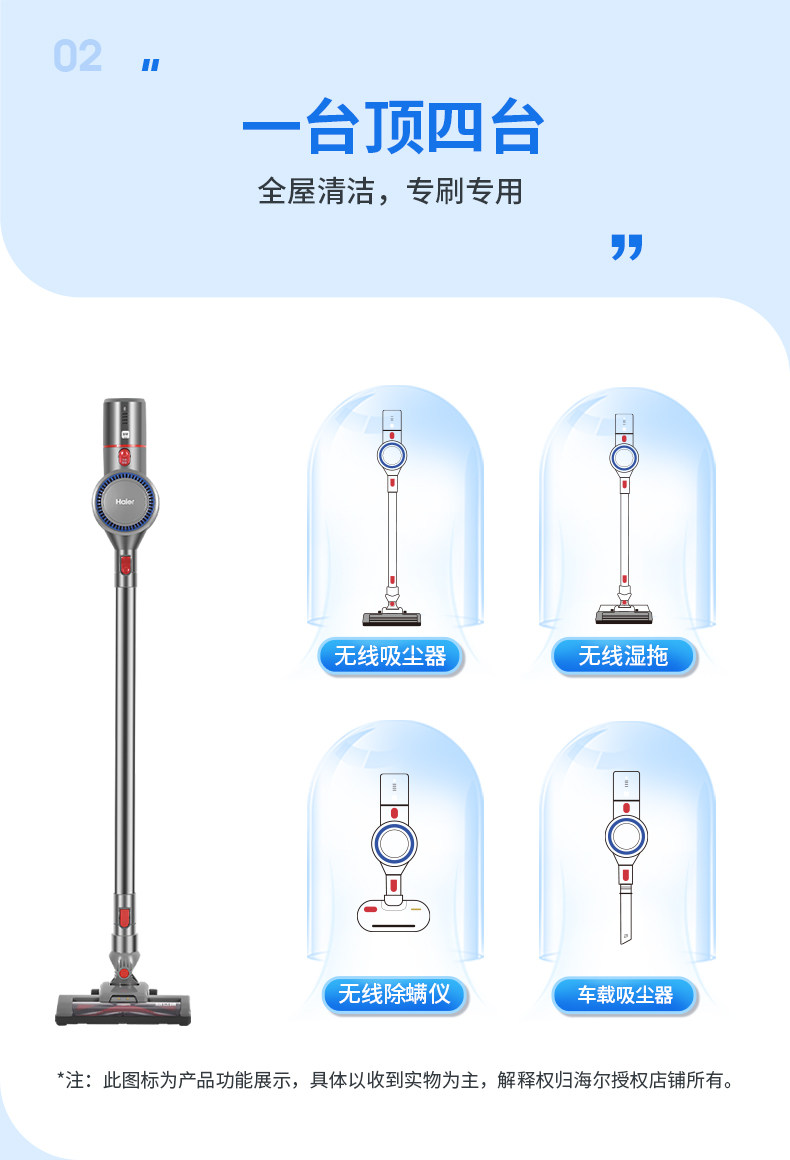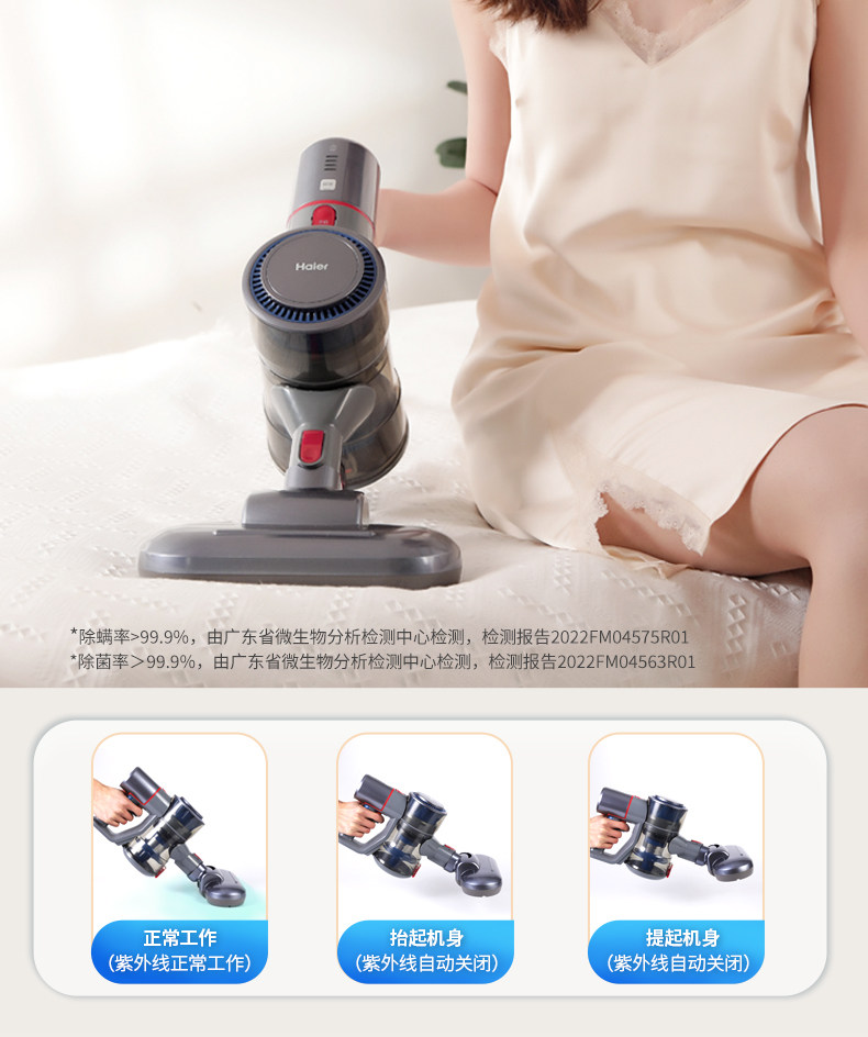 Haier Wireless Vacuum Cleaner for Home Use, Large Suction Power, Ultraviolet Mite Remover, Small Handheld Vacuum Cleaner, Suction and Mopping All-In-One Machine