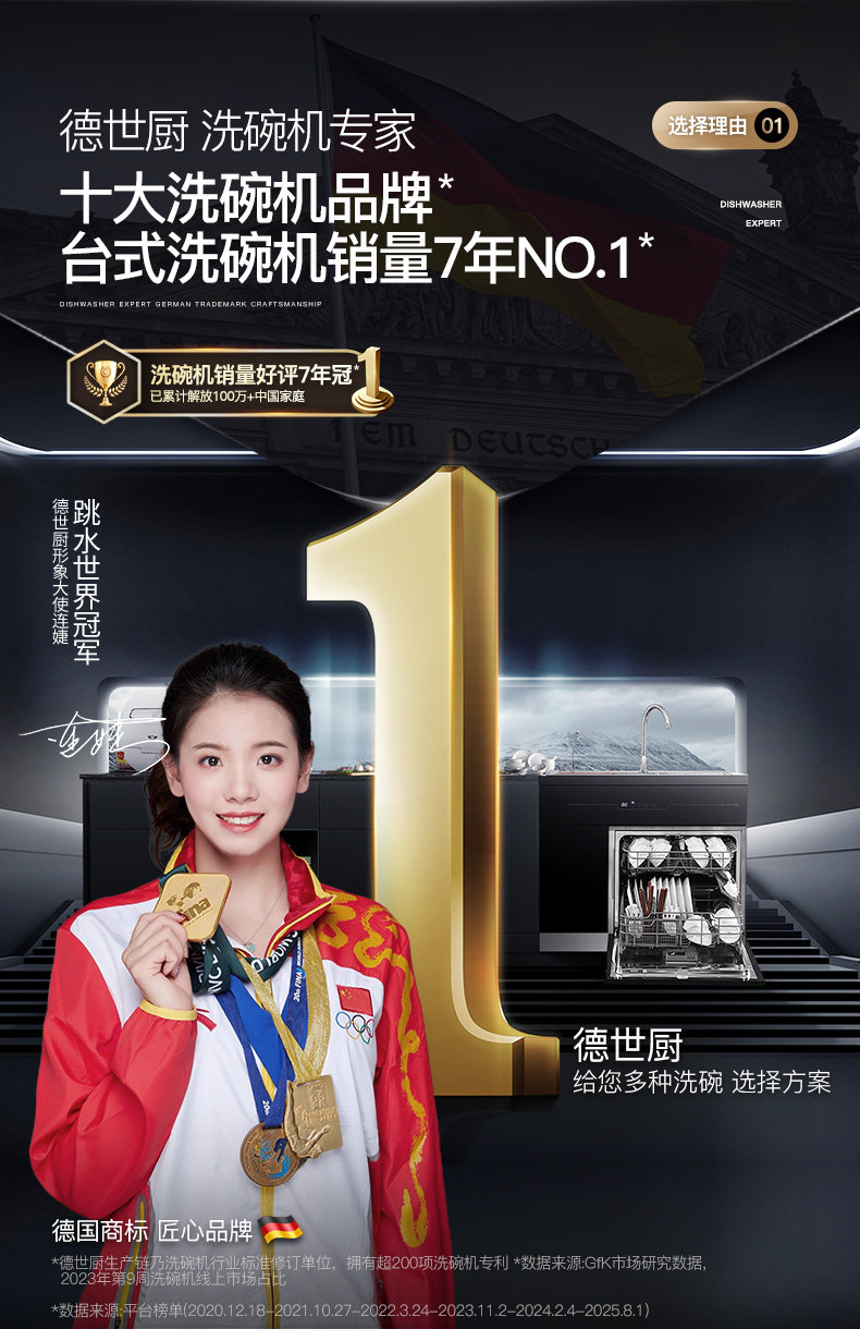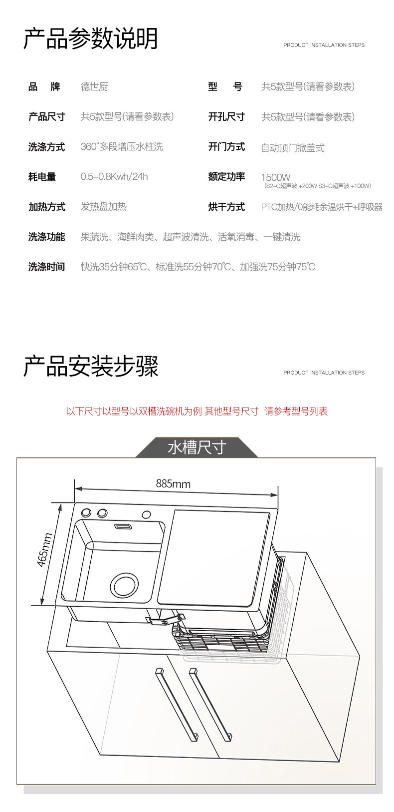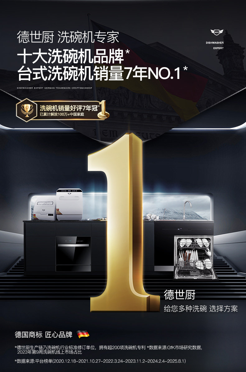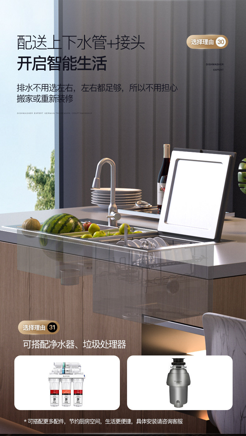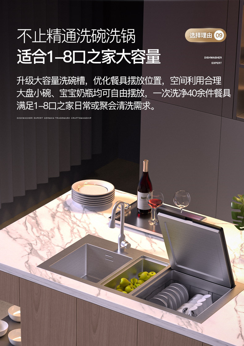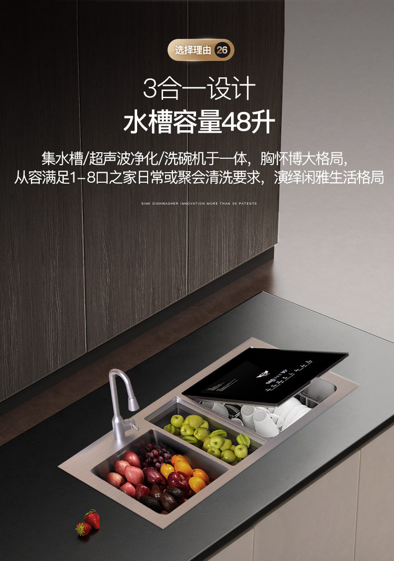 Deshi Kitchen Sink Dishwasher 8-Person Set Smart Home Fully Automatic Drying and Disinfecting Ultrasonic Fruit and Vegetable Machine