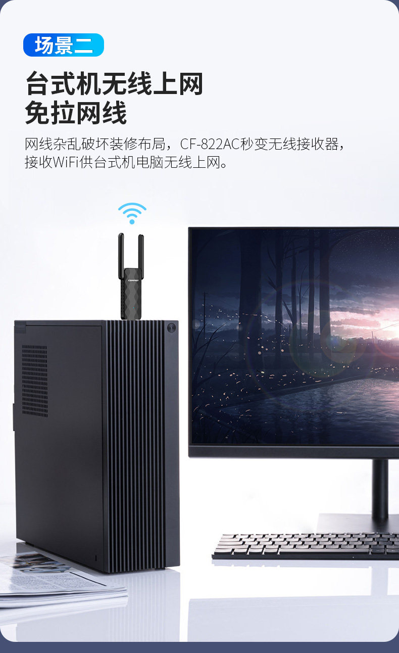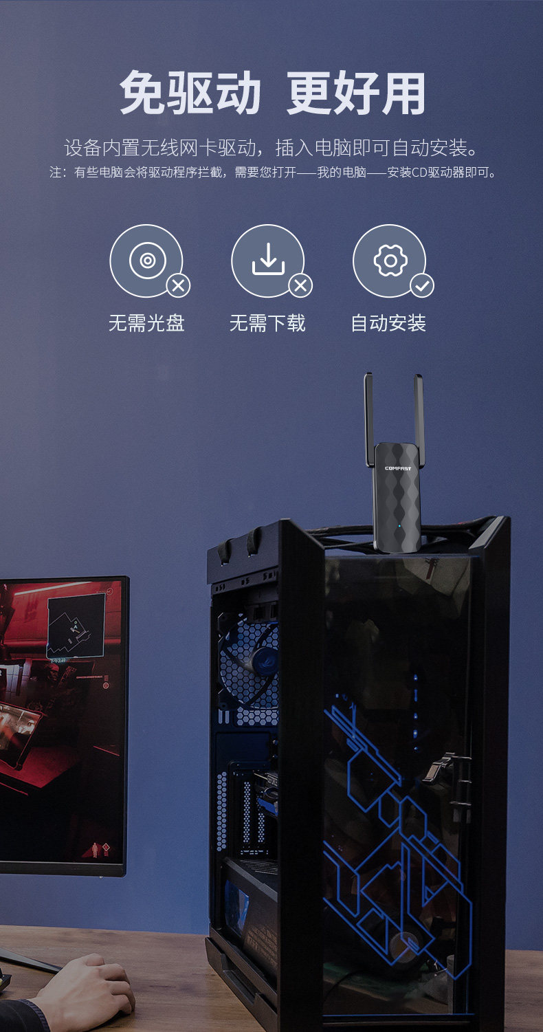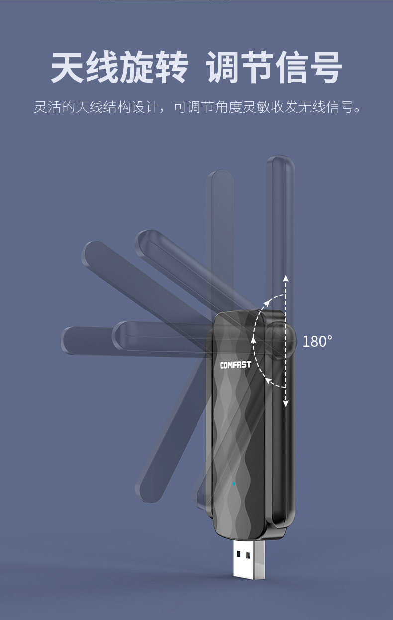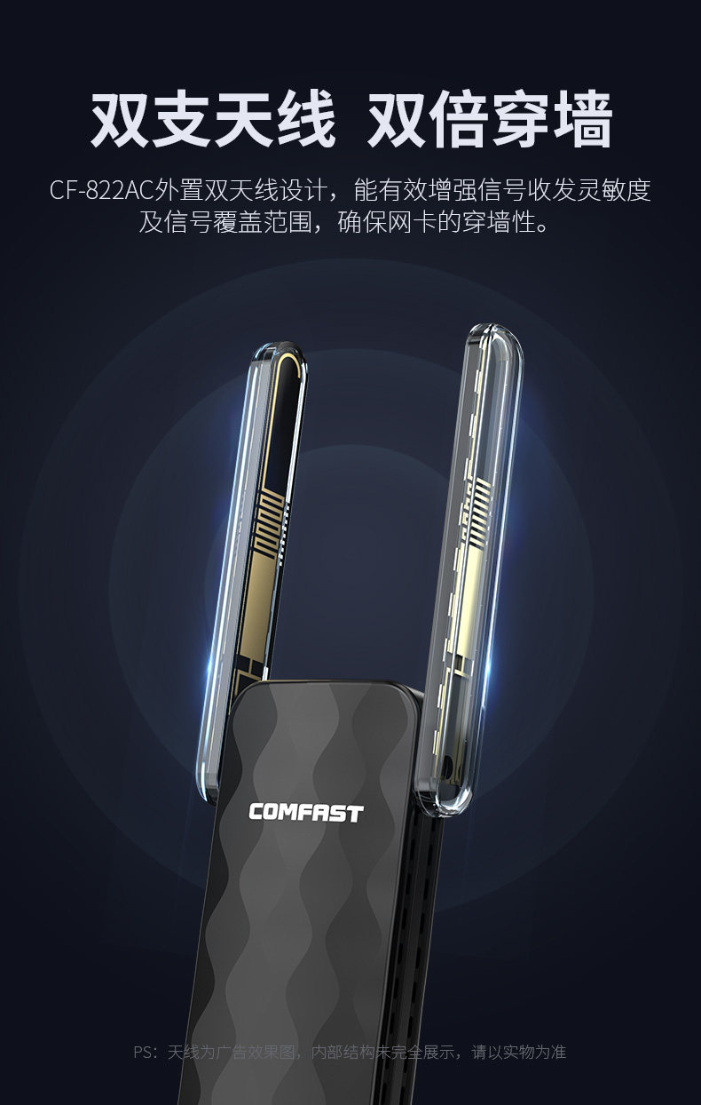 [Plug and Play] Cf-822Ac Comfast Dual-Band 650m Driver-Free Wireless Network Card Desktop Computer Wifi Receiver Laptop External 5g High-Power Wall-Penetrating Wireless Network Card
