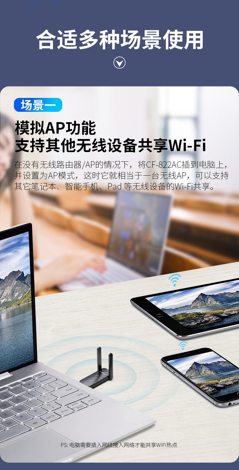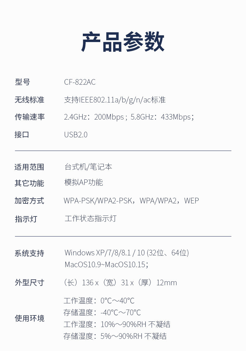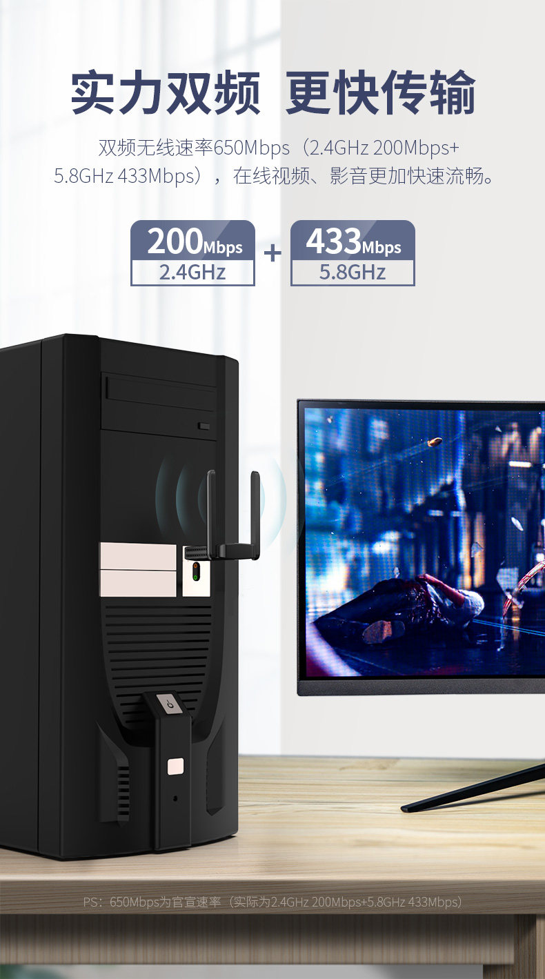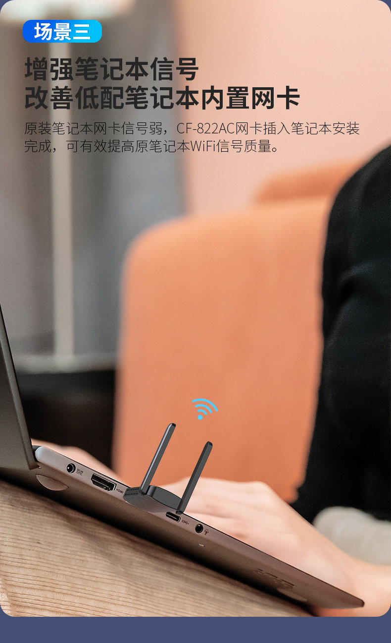 [Plug and Play] Cf-822Ac Comfast Dual-Band 650m Driver-Free Wireless Network Card Desktop Computer Wifi Receiver Laptop External 5g High-Power Wall-Penetrating Wireless Network Card