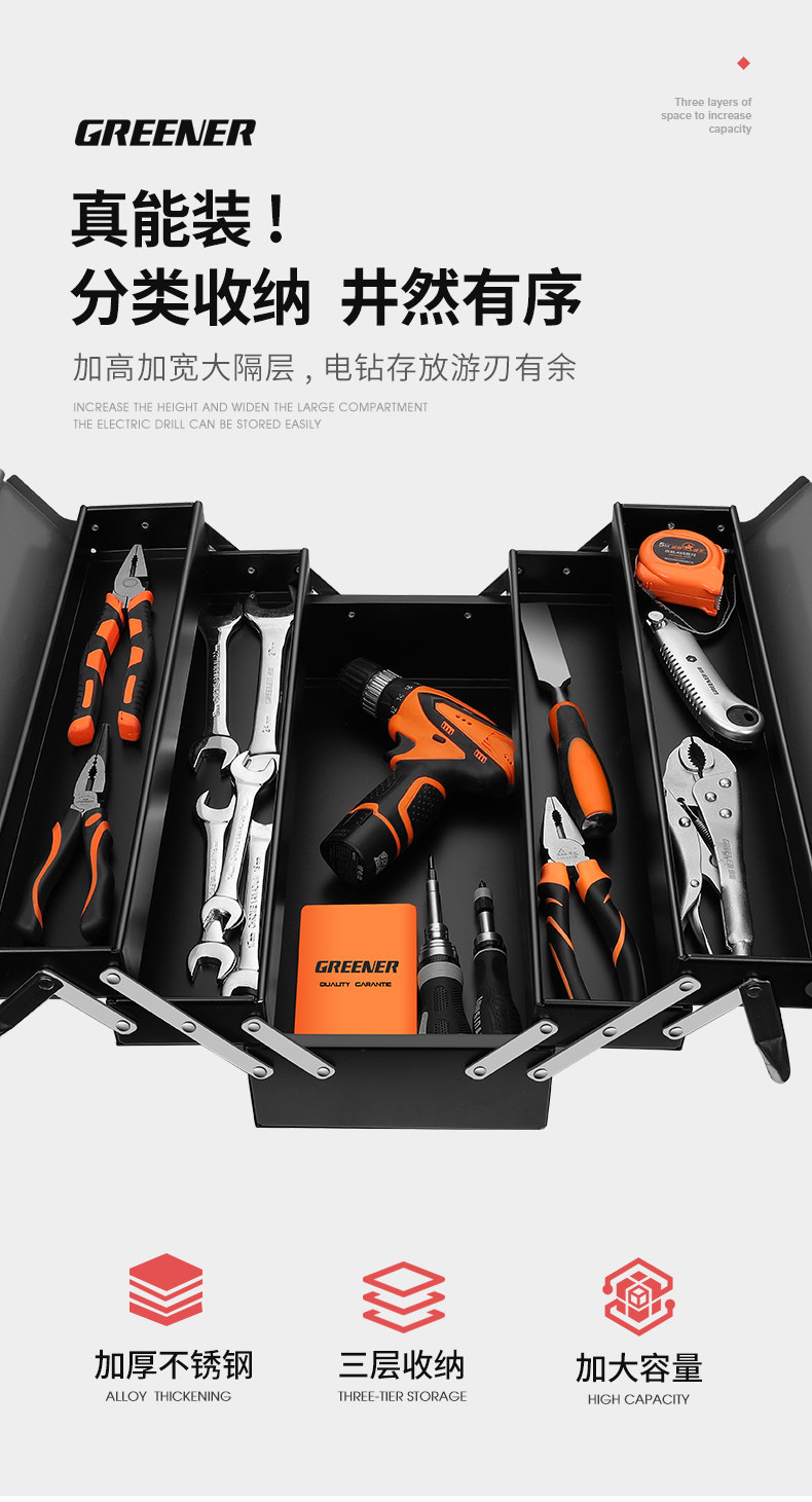 Green Forest Stainless Steel Tool Box Multifunctional Storage Folding Car Set Multi-Layer Thickened Hardware Extra Large Household Use