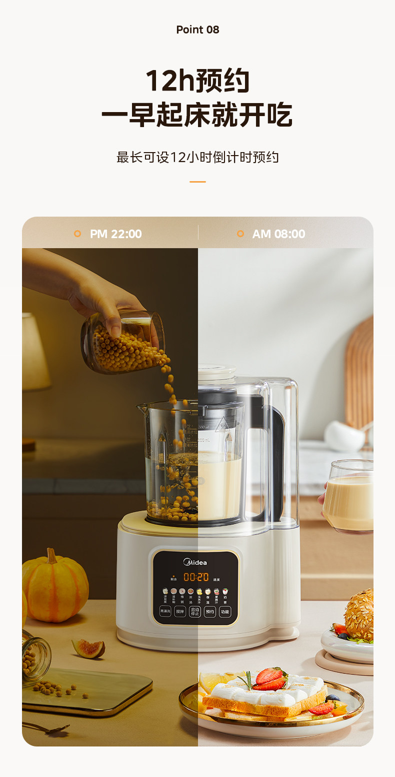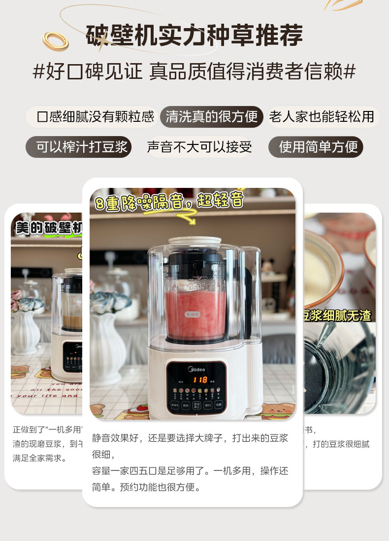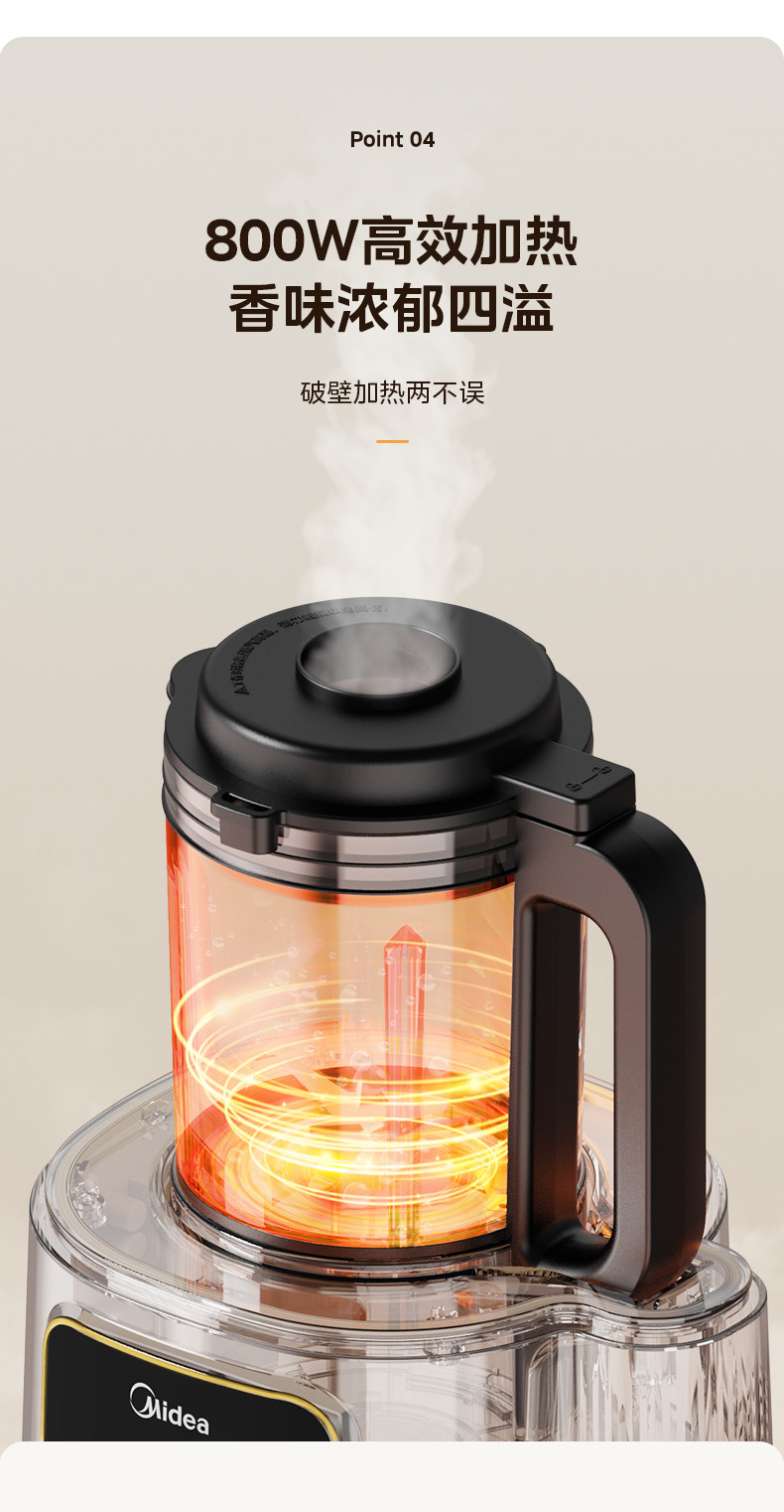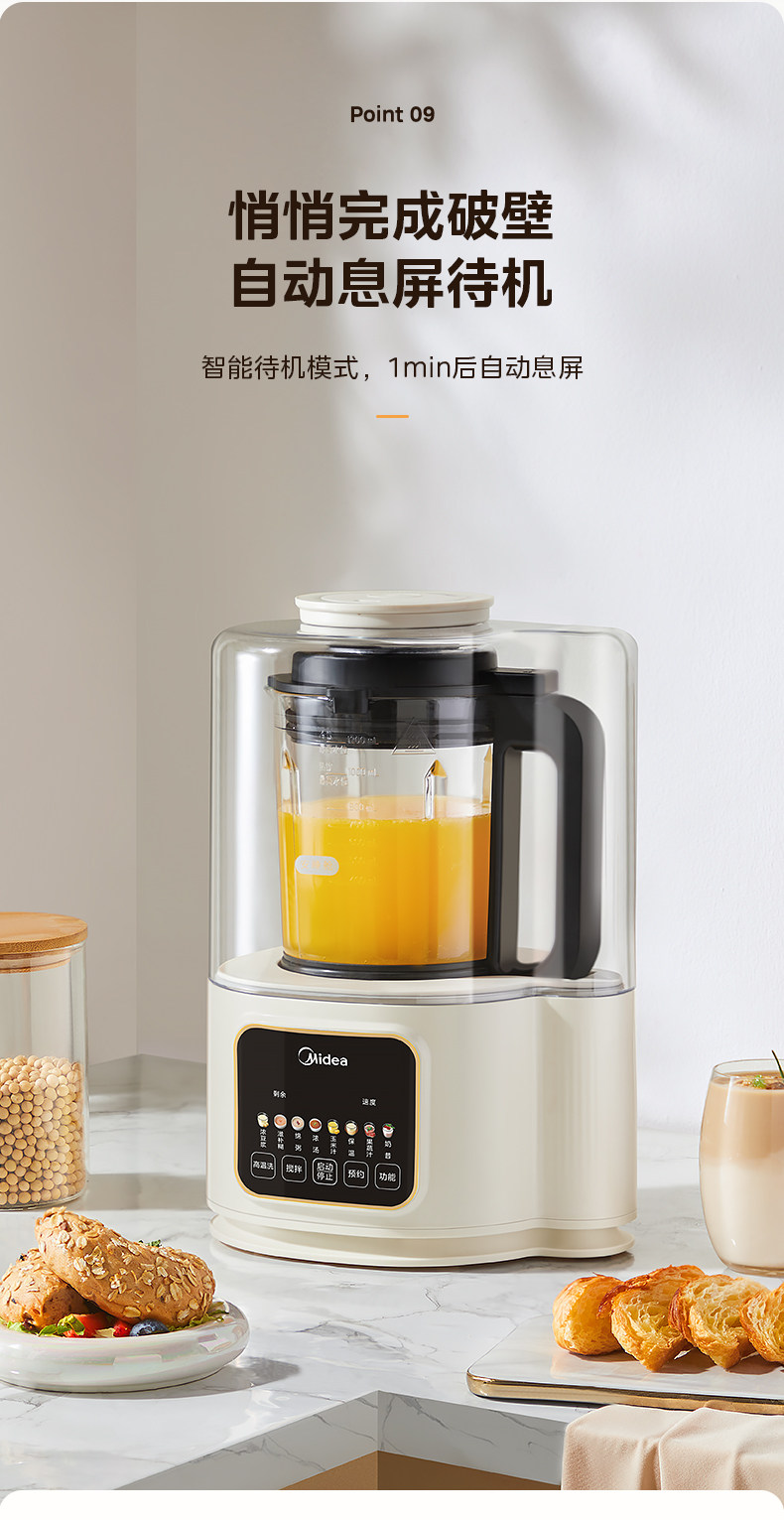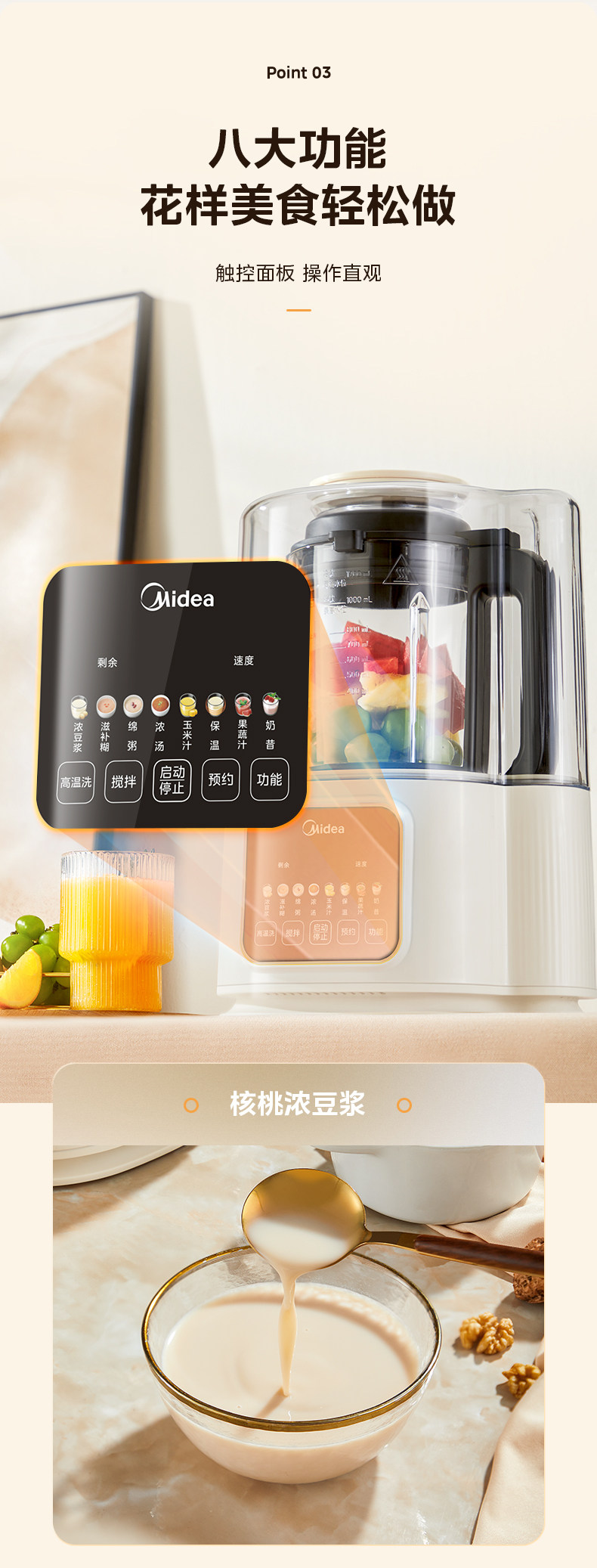 Midea Blender for Home Use, Fully Automatic, Residue-Free, Multifunctional, for Making Soy Milk, Cooking, and Juicing, Quiet, 2025 New Model
