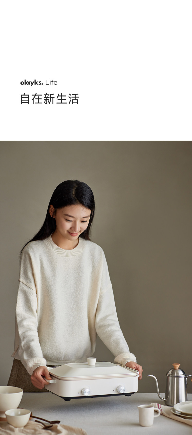 Olayks Instant Multi-Functional Cooking Pot for Home Use, Grilling and Boiling All-In-One Pot, Barbecue, Steaming, Frying, Stewing, Electric Hot Pot