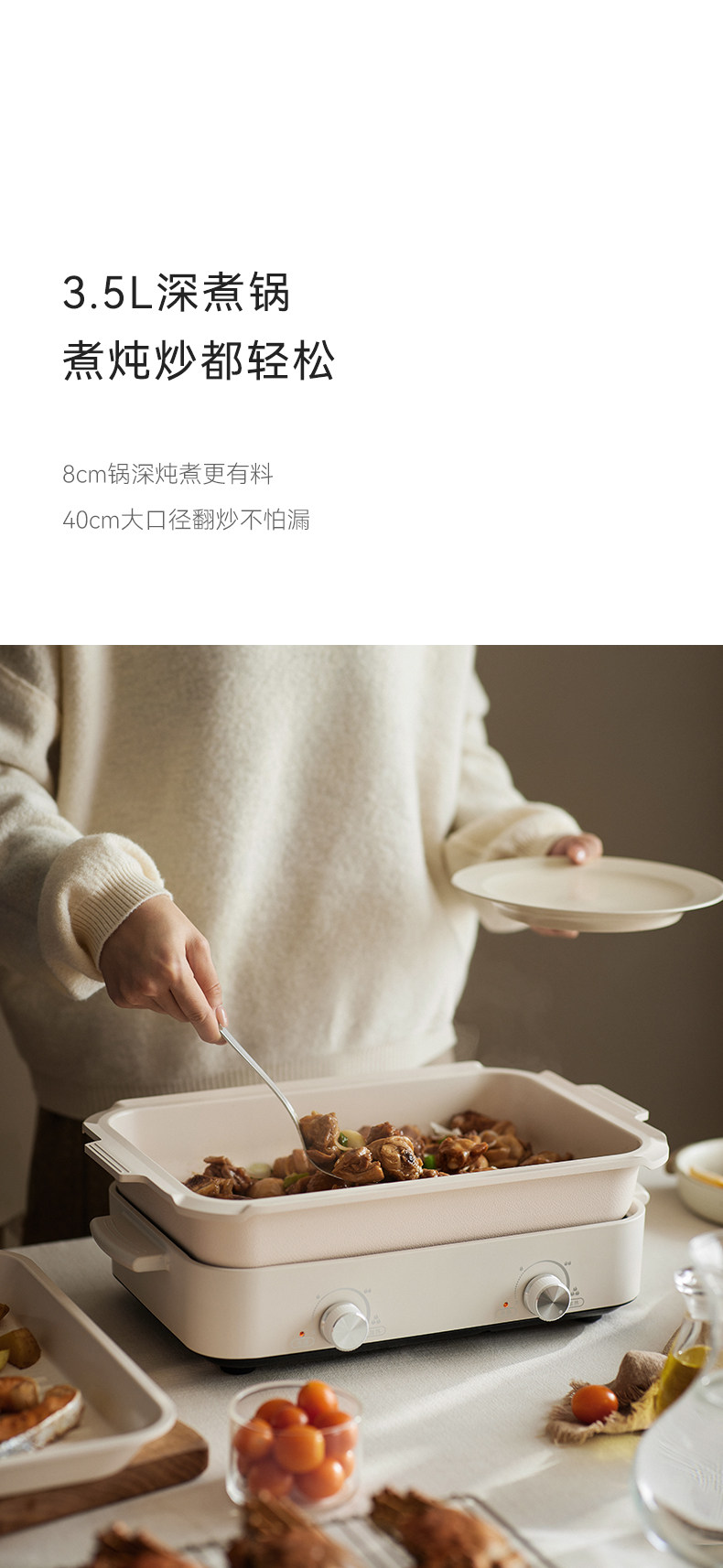 | Color Classification | Creamy White - Long Skillet,Tao White-4L Yuanyang Hot Pot,Earthy White - Long Skillet + 3.5L Deep Cooking Pan + Steam Rack,Creamy White - Long Skillet + 3L Divided Hot Pot,Pottery White-3.5L Deep Cooking Pan + 2 Short Frying Pans + Steaming Rack + Meatball Pan + Four Round Plates |