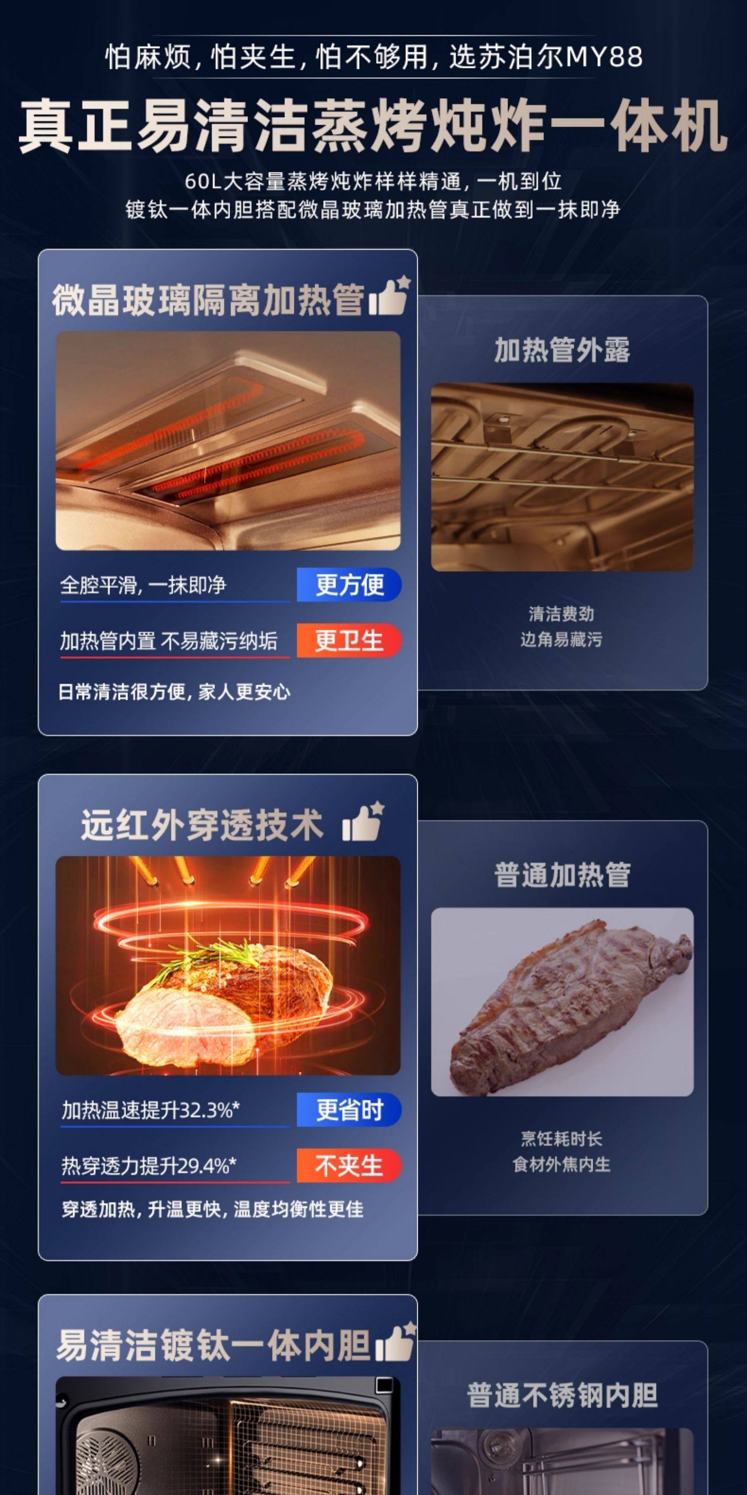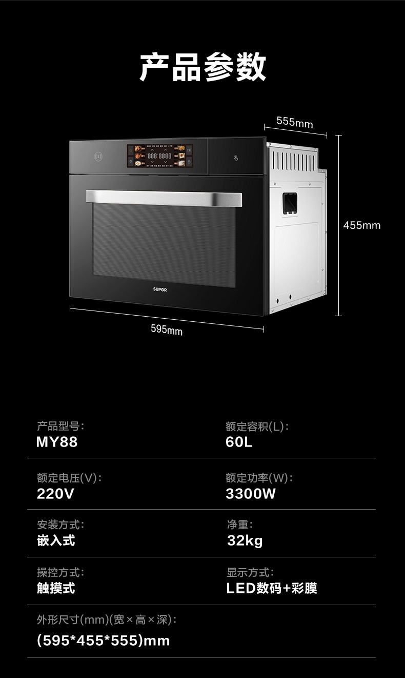 Supor My88 Steaming and Baking All-In-One Machine, Household Embedded Steaming Oven, Far-Infrared Household Electric Oven, Electric Steamer