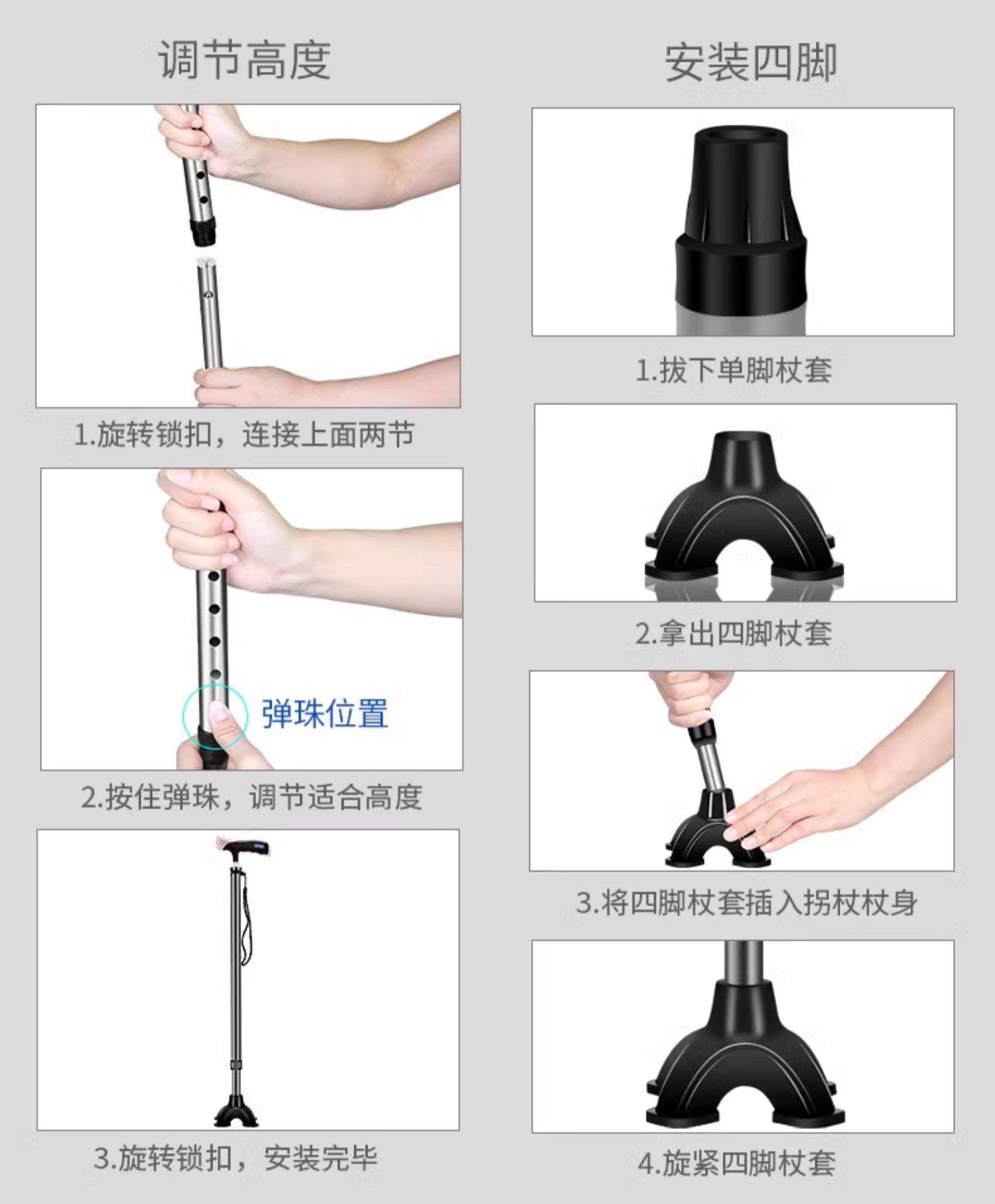 | Color Classification | Matte Black - Single Leg - Lighted Handle - Height Adjustable,Matte Black - Mini Four-Legged - Light-Up Handle - Height Adjustable,Coffee Brown - All-Aluminum Four-Legged - Light-Up Handle - Height Adjustable,Silver - All-Aluminum Four-Legged - Illuminated Handle - Height Adjustable,Silver - All-Aluminum Four-Legged - Non-Illuminated Handle - Height Adjustable |