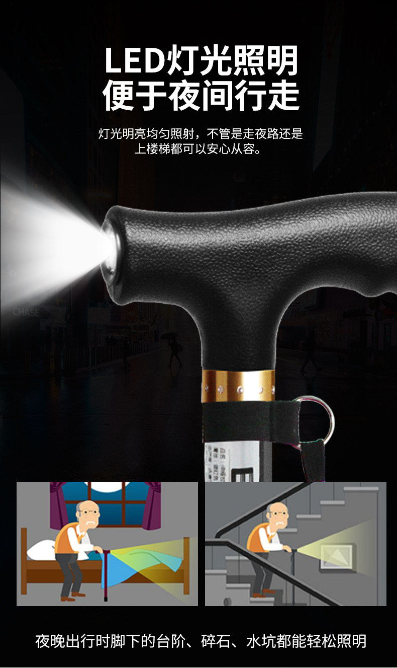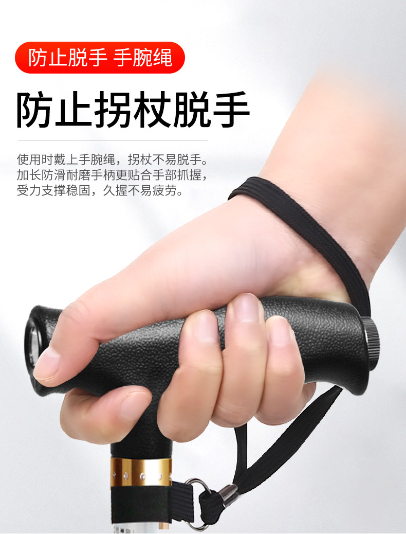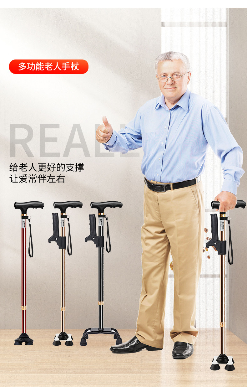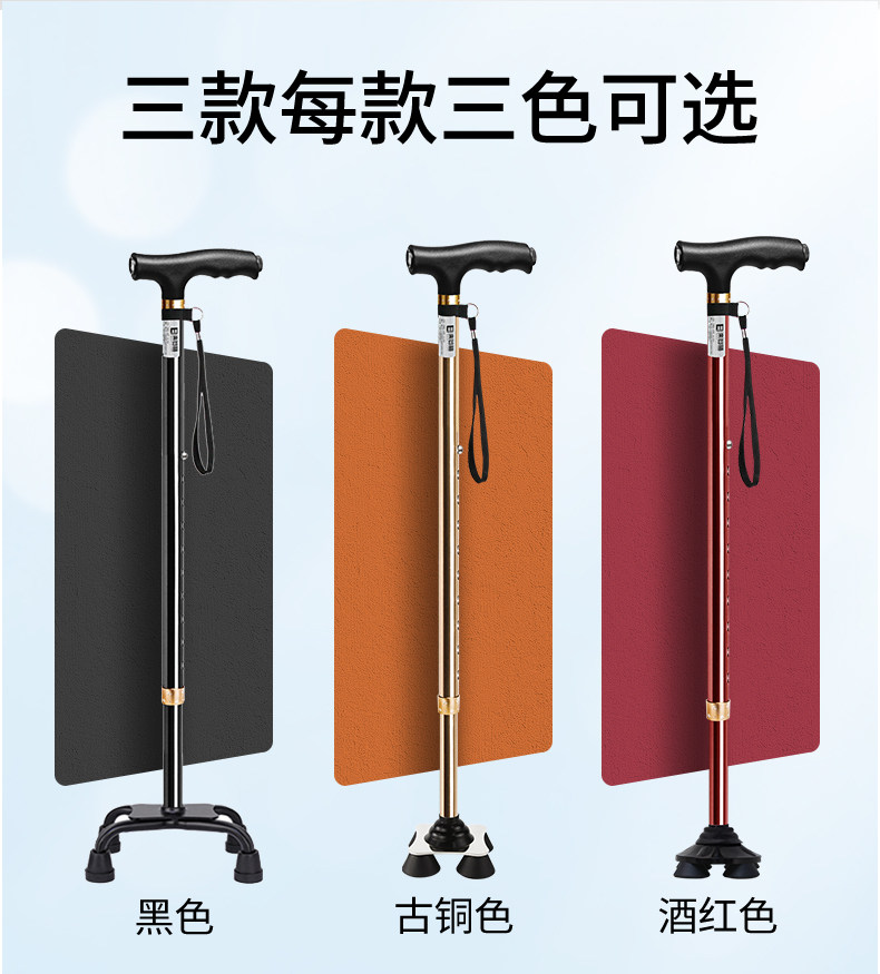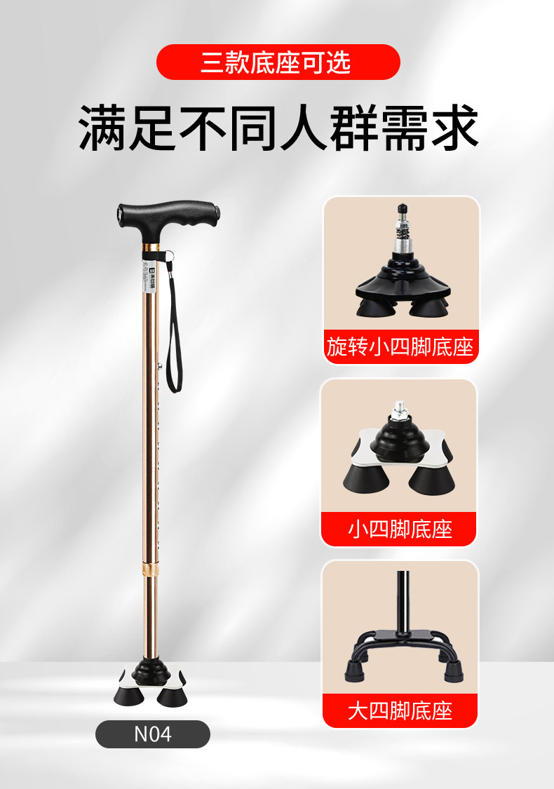 Japanese Leilai Fu Elderly Walking Stick, Lightweight Four-Legged Non-Slip Cane, Telescopic with Light, Portable Walking Stick for Seniors