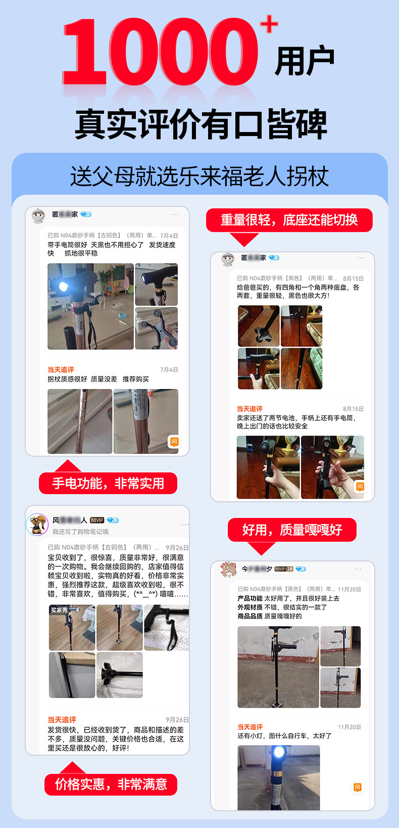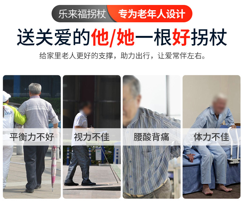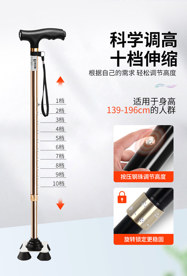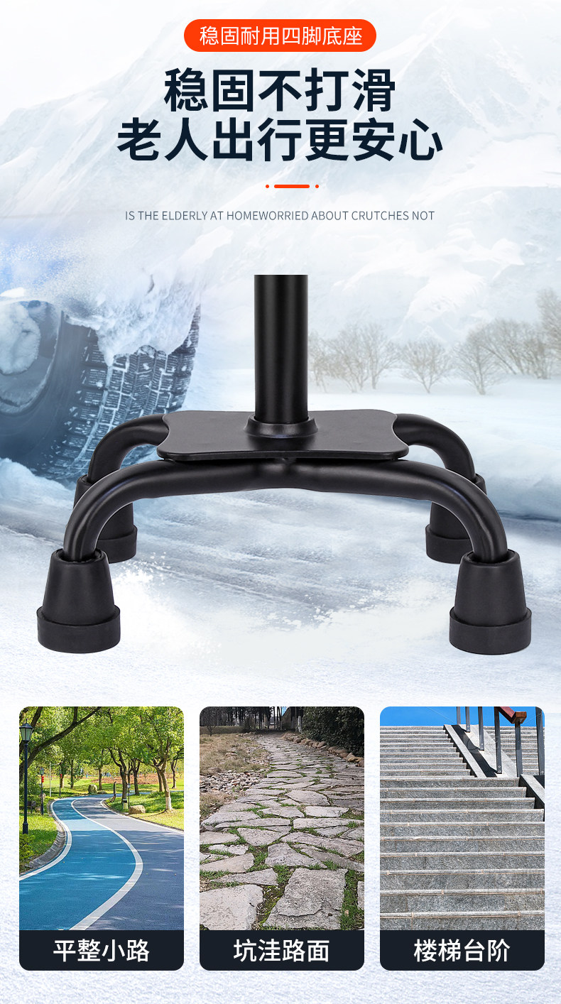 Japanese Leilai Fu Elderly Walking Stick, Lightweight Four-Legged Non-Slip Cane, Telescopic with Light, Portable Walking Stick for Seniors