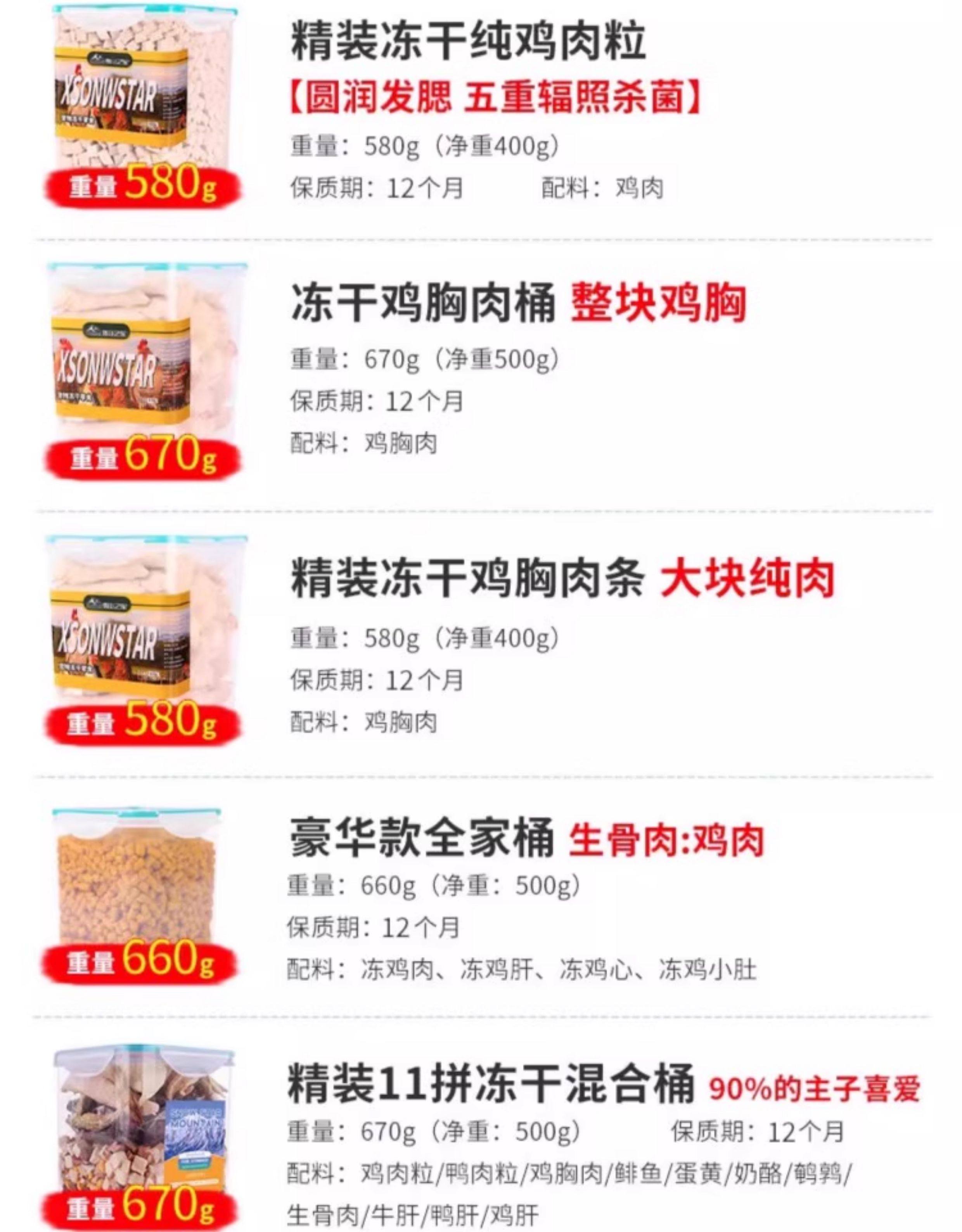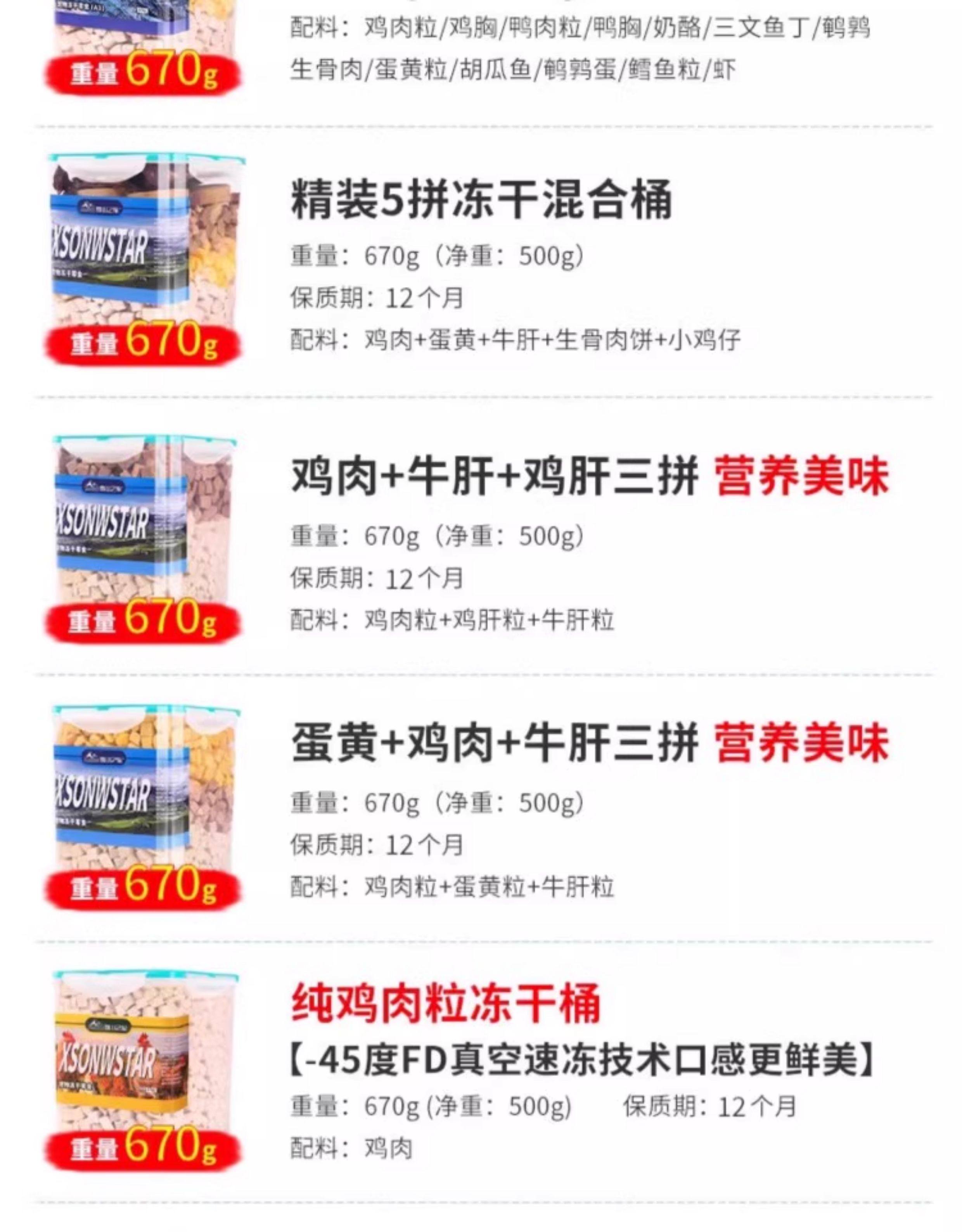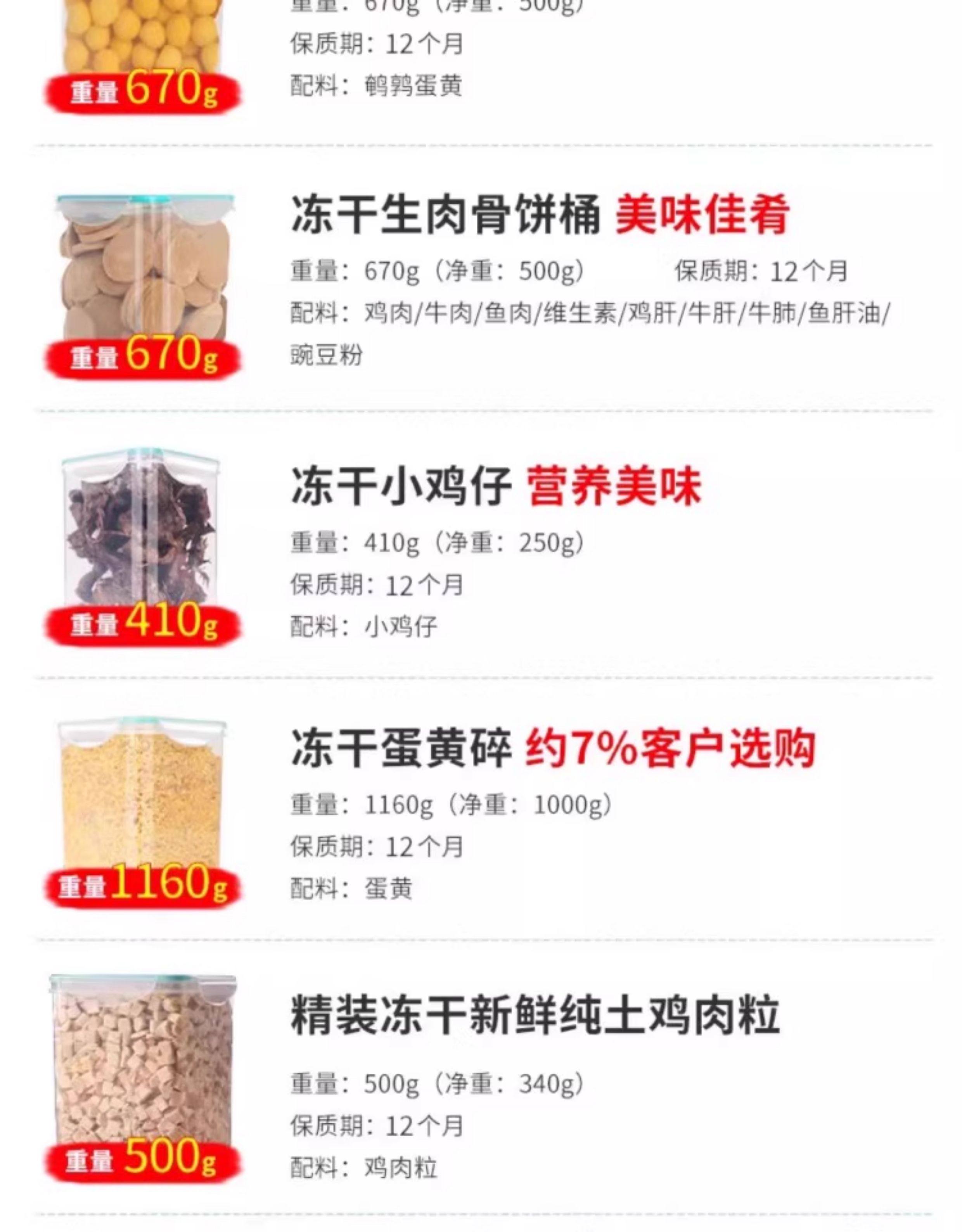 | Food Taste | Premium Freeze-Dried Chicken, Egg Yolk, and Beef Liver Bites 670g (High-End Ingredients),【Super Value Twin Pack】Premium Freeze-Dried Chicken, Egg Yolk, and Beef Liver Bites 670g - High-End Ingredients,[Three Large Barrels] Hardcover Freeze-Dried Chicken Cubes + Egg Yolk Cubes + Beef Liver Cubes 670g (High-End Ingredients),Pet Freeze-Dried Chicken Cubes + Chicken Liver Cubes + Beef Liver Cubes [670g] (Satisfies Picky Eaters),[Two Large Barrels] Pet Freeze-Dried Chicken Cubes + Chicken Liver Cubes + Beef Liver Cubes [670g] (Satisfies Picky Eaters),[Three Large Barrels] Pet Freeze-Dried Chicken Cubes + Chicken Liver Cubes + Beef Liver Cubes [670g] (Satisfies Picky Eaters),Upgraded Chicken Breast Freeze-Dried Bucket 500g [Whole Chicken Breast],Upgraded Luxury Freeze-Dried 3 Pieces 500g,Upgraded Chicken Nugget Freeze-Dried Bucket 500g [Free-Range Chicken Quality, Pure Meat Without Additives],Upgraded Luxury Freeze-Dried 5-Piece Family Bucket 500g,Premium 5-Flavor Mixed Freeze-Dried Cat Food Bucket, 670g (More Love from Your Feline Overlord),[Hardcover Large Chicken Cubes + Native Egg Yolk 670g Irradiated and Sterilized],Premium 11-Flavor Freeze-Dried Mix Bucket, 670g (More Loved by Your Furry Friend),Premium Freeze-Dried Fresh Free-Range Chicken Bites 500g (Vacuum Flash Frozen, Multi-Radiation Sterilized),Hardcover Double-Frozen Freeze-Dried Bucket with Net Weight 500g (Chicken Cubes + Duck Liver),Freeze-Dried Pure Chicken Mince 670g (Good for Mixing with Food, Refusing to Be Picky),【Bulk Pack】Freeze-Dried Pure Chicken Shreds 670g (Great for Mixing with Kibble, Encourages Healthy Eating),【Bulk Pack】Freeze-Dried Pure Chicken Shreds 670g (Great for Mixing with Kibble, Encourages Healthy Eating),Large Portion of Meaty Freeze-Dried 810g Extra Bucket of Chicken Cubes + Egg Yolk (Nutritious and Delicious),【Super Value Twin Pack】Large-Sized, Extra Meaty Freeze-Dried 810g Value Pack: Chicken Bites + Egg Yolk,[Three Large Barrels] Large Portion of Meat Freeze-Dried 810g Plus Chicken Cubes + Egg Yolk (Stock up),Hardcover Luxury 13 Pieces 670g Including Salmon + Cod Pellets (Hair Beauty and Skin Care),Premium Freeze-Dried Chicken Breast Strips (570g Large, Pure Meat Pieces),Premium Quality Freeze-Dried Chicken Bites 670g (Enhanced Appetite) - Free-Range Chicken,Premium Luxury 13-Piece Set, 670g [Pure Meat, No Offal] (Indulge Your Palate),Premium Freeze-Dried Chicken Chicks 410g (Teeth Cleaning & Grinding),Premium Freeze-Dried Chicken Bites 570g (Five-Stage Irradiation Sterilized),Freeze-Dried Chicken Neck 200g (about 50 Pieces) [Hot Sale Pack]⭐One Stick a Day to Gnaw Out White Teeth],Hardcover Freeze-Dried Raw Meat and Bone Small Round Cake 670g (Strong Bones),Hardcover Freeze-Dried Chicken Liver Shreds 670g (Blood Replenishing and Skin Care),Premium Mixed Freeze-Dried Treats 100g (Sample Size),Hardcover Pet Freeze-Dried Bucket 1170g Egg Yolk Crumbs [Free-Range Chicken Quality],Premium Upgrade: 12-Piece Variety Pack, 670g, Featuring Chicken & Beef Liver (Premium Selection),Premium Freeze-Dried Quail 400g (Chewable & Teeth-Cleaning),Hardcover Raw Bone Chicken Strips 660g (One Bucket of Fat 2kg),Hardcover Freeze-Dried Duck Meat Cubes (Relieve Tear Stains) 660g,Freeze-Dried Raw Meat and Bone Patties 670g, One Bucket of Fat 2kg,Premium Fresh Chicken Breast Freeze-Dried Bites 670g - Sealed Bucket. Picky Eaters Welcome!,Premium Freeze-Dried Duck Breast (Cooling & Detoxifying) 510g,[Hardcover Freeze-Dried 10 Pieces Including Shrimp + Raw Meat and Bones] 670g (Upgraded New Model),[12 Kinds of Fresh Meat Without Liver] 670g (Upgraded New Model),❤️Deluxe 5-Piece [Chicken + Raw Bone Meatloaf + Egg Yolk + Beef Liver + Chick] 670g + Pet Nutritional Paste,❤️Ordinary Process [Freeze-Dried Chicken Cubes] 670g + Pet Nutritional Paste,Luxurious Three-Piece [Chicken Cubes + Chicken Liver Cubes + Beef Liver Cubes] 670g (Five-Fold Irradiation Sterilization) + Pet Nutritional Paste,Freeze-Dried Cat Paw Cake Mixed Flavor 3 Packs 90g [18 Pieces],100g Chicken Breast Jerky (Whole Cut, Dried, Pure Meat, No Additives),Duck Breast Jerky 100g (100% Original Cut, Hypoallergenic and Non-Irritating),[Chicken + Goat Milk Powder] Goat Milk Bars 60g*2 Packs [No Refund if Not Eaten],【Upgraded Bucket Packaging, Better Value! Freeze-Dried Spring Fish】500G/Bucket,[Beautiful Hair] Freeze-Dried Cod Fish [100% Pure Cod Fish] Net Content 210g,[Lower Blood Lipids] Salmon Freeze-Dried Granules Net Content 420g,[Lower Blood Lipids] Salmon Freeze-Dried Granules Net Content 630g,【Freeze-Dried Whole Fish, Healthy & Additive-Free】Freeze-Dried Spring Fish, Net Weight 320g,[Cat Ginseng Teeth Grinding and Cleaning] Quail Frozen Clean Content 240g,【Heat-Clearing, Fire-Reducing, and Tear Stain Reduction】Duck Meat Bites Freeze-Dried, Net Weight 420g,[Pure Chicken 0 Added] Freeze-Dried Chicken Cubes Net Content 460g,Mixed Random Flavors 6 Packs 180g [36 Pieces in Total],【The King of Vegetables: Boost Your Immunity】Freeze-Dried Sporulated Kale, 70g Net Weight,Tasting Pack★Chicken and Pumpkin 30g [High Meat Content up to 95%, High Protein and Low Fat] [Pack of 6],Duck Meat (about 33cm Long Per Piece)*3 Pieces/Bag |
