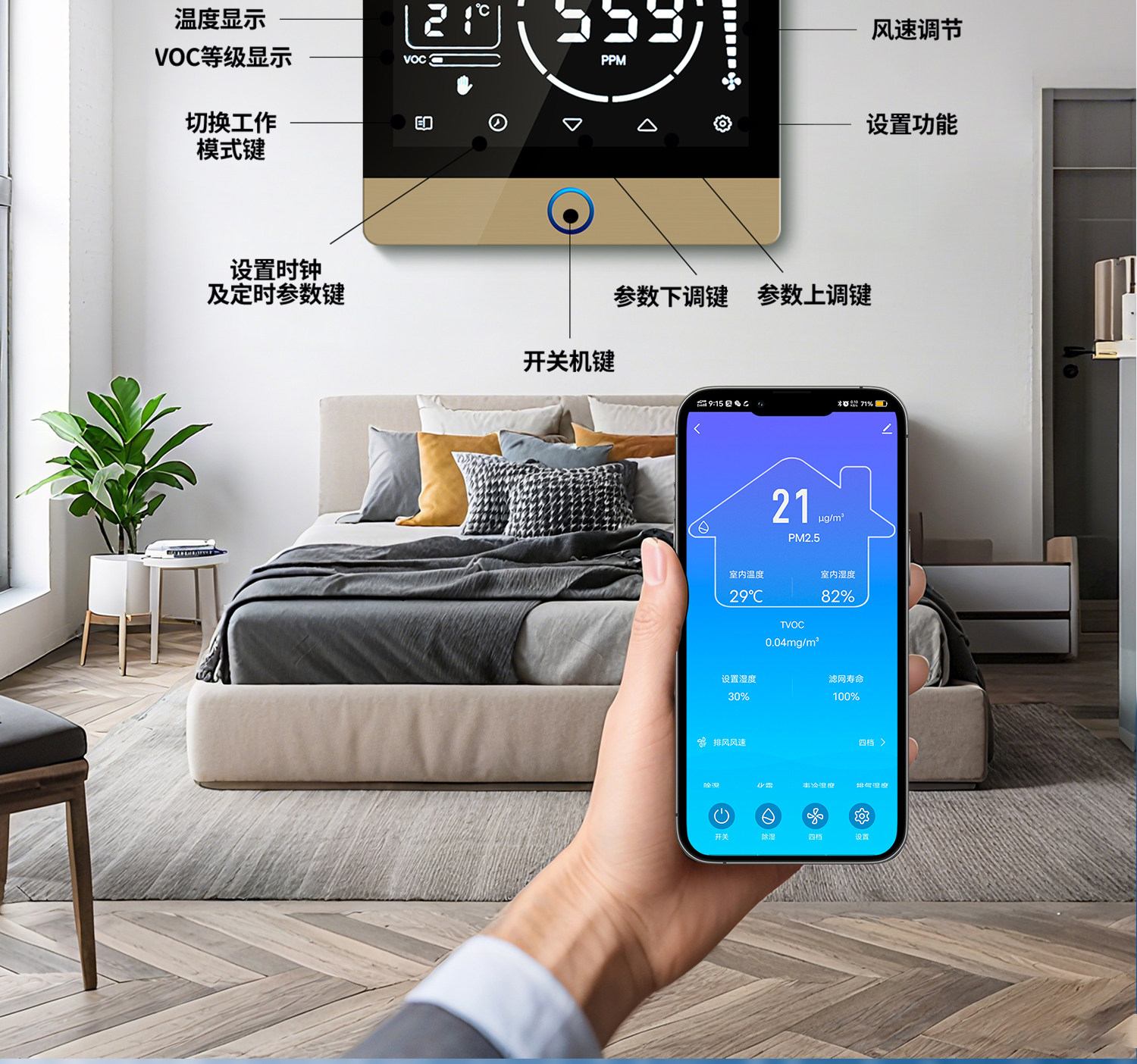 Function Remove Particulate Matter,Purify the Air,Smoke and Dust Removal,Eliminate Odor,Timing,App Control,Remove Formaldehyde