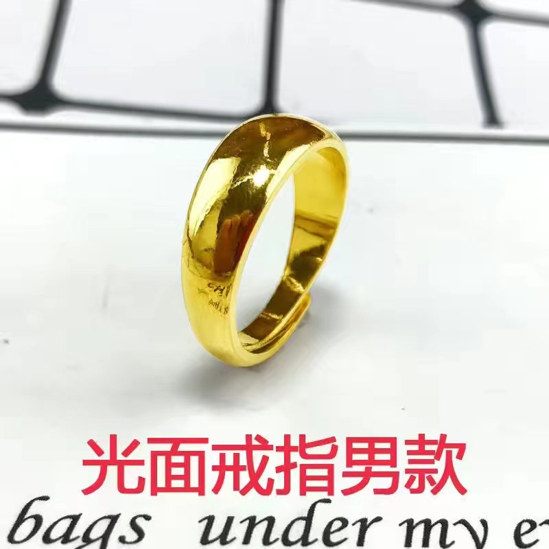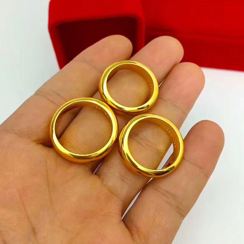 Vietnamese Sand Gold Ring with Steel Stamp for Men and Women, Wedding Ring, Smooth Surface, Simple, Long-Lasting and Does Not Fade