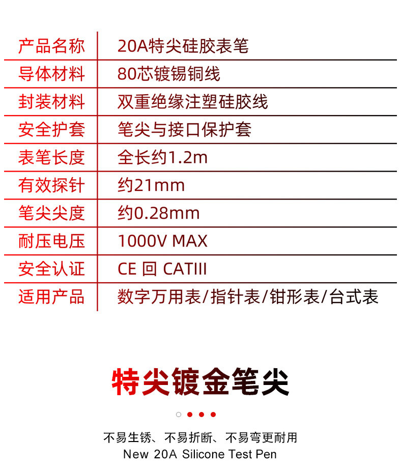 Universal Multimeter Test Leads with Special Tip Silicone Wire, Anti-Freeze Test Leads, Pointer Meter Testing Leads, Universal Meter Test Pens