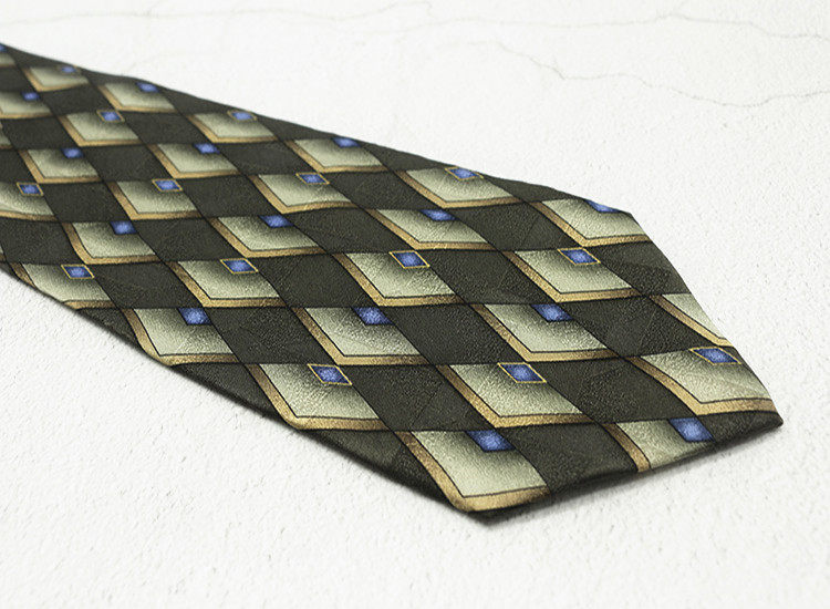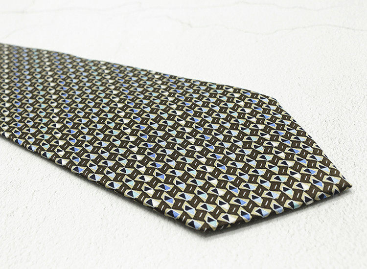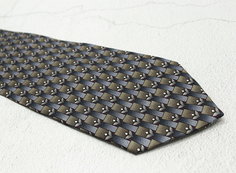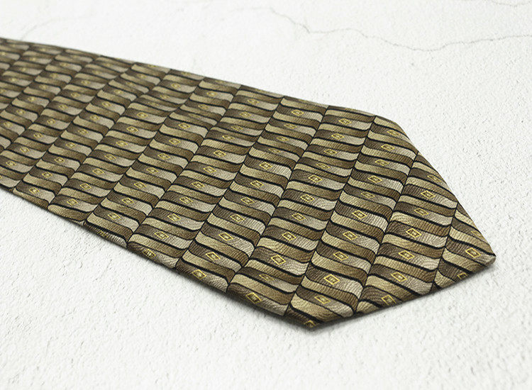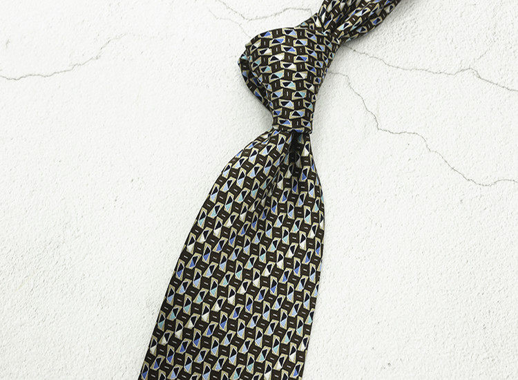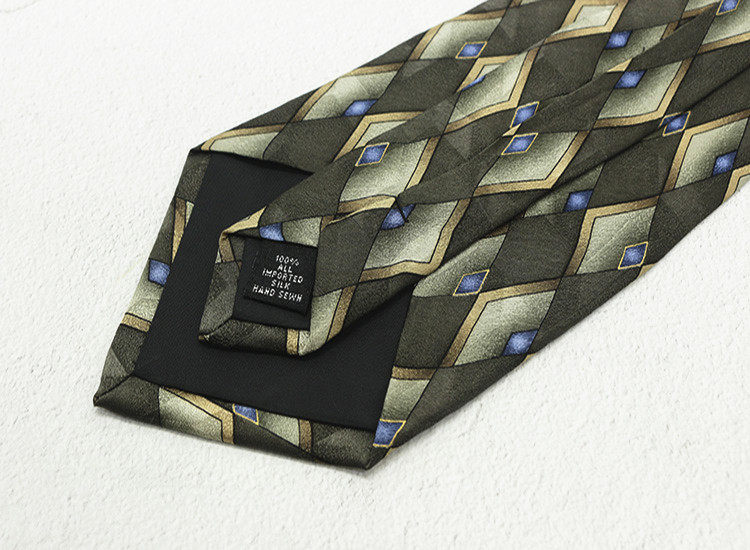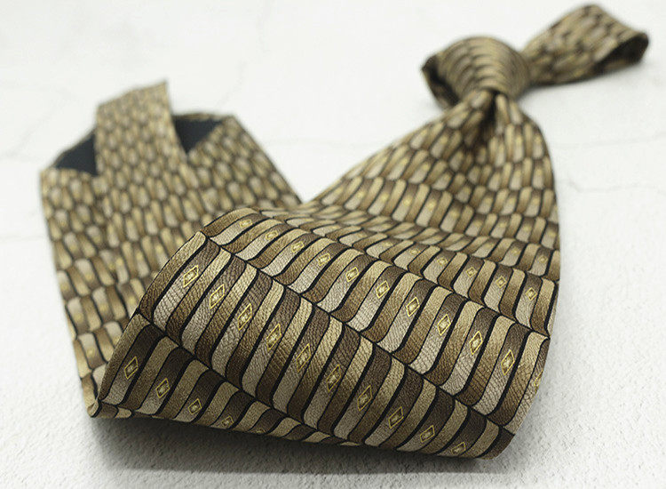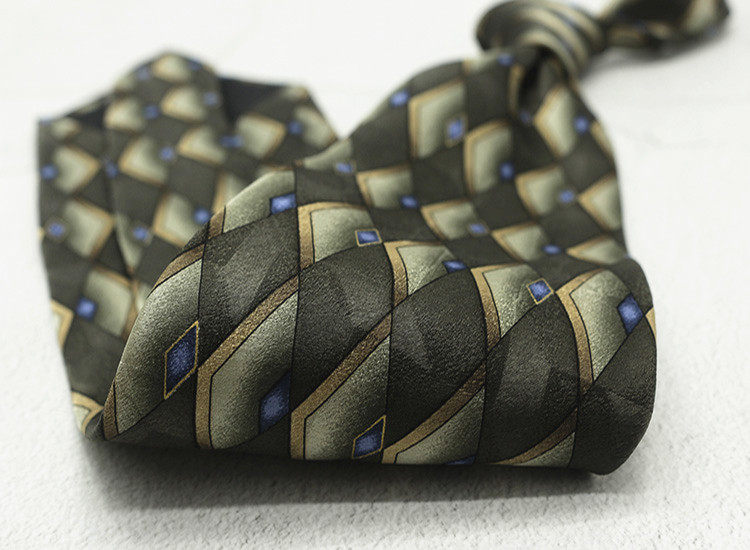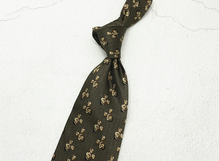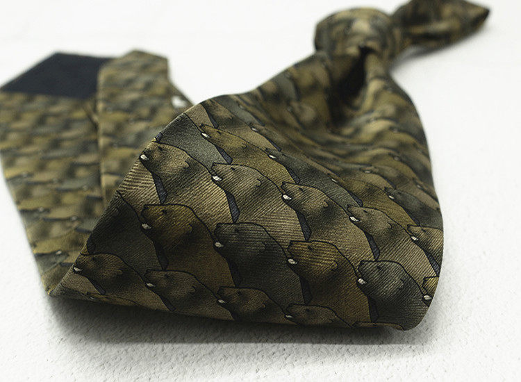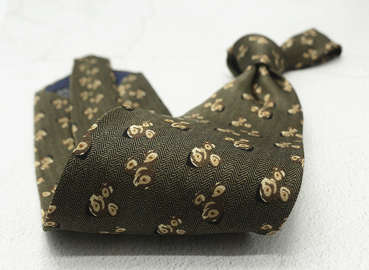 10cm Silk Printed Tie Mulberry Silk Vintage British Style Silk Tie Italian Coffee Color Green Pattern