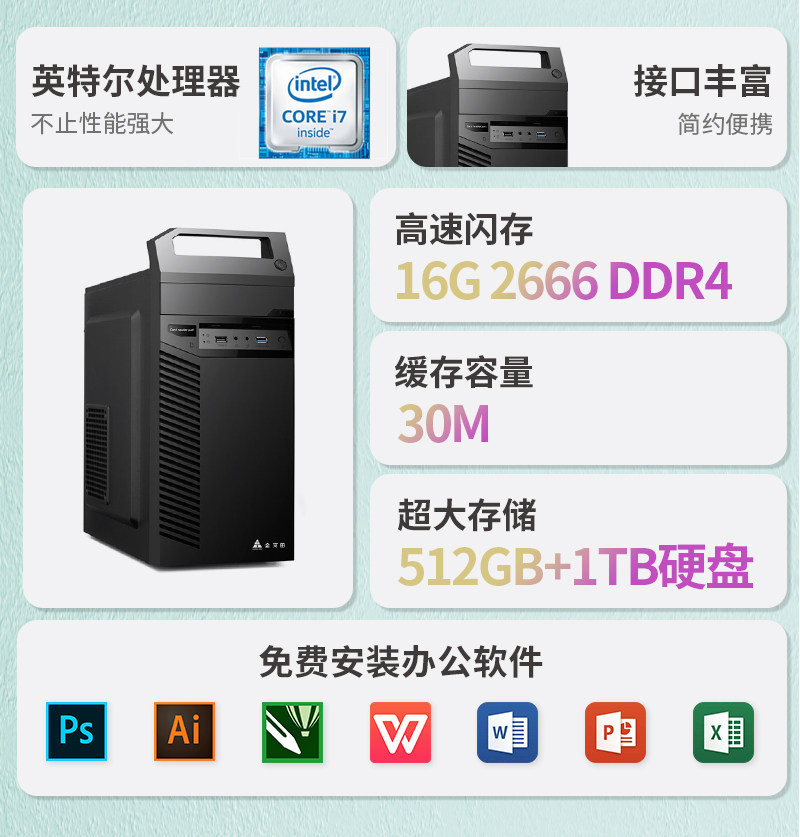 High-End I7 Desktop Computer Complete Set I5 Office Home Gaming DIY Gaming Assembly Desktop Full Set