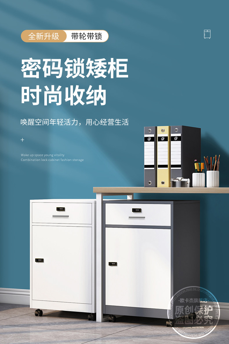 Steel Password Cabinet, Low Cabinet with Lock, Office Safe, Under-Desk Drawer Storage Cabinet, File Cabinet, Mobile Storage Cabinet